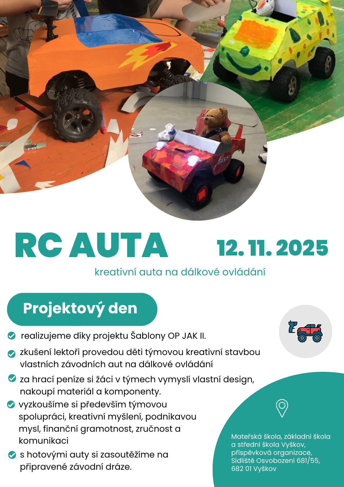 Žáci si vyzkouší především týmovou spolupráci, kreativní myšlení, podnikavou mysl, finanční gramotnost, zručnost a komunikaci. S hotovými auty si zasoutěžíme na připravené dráze.