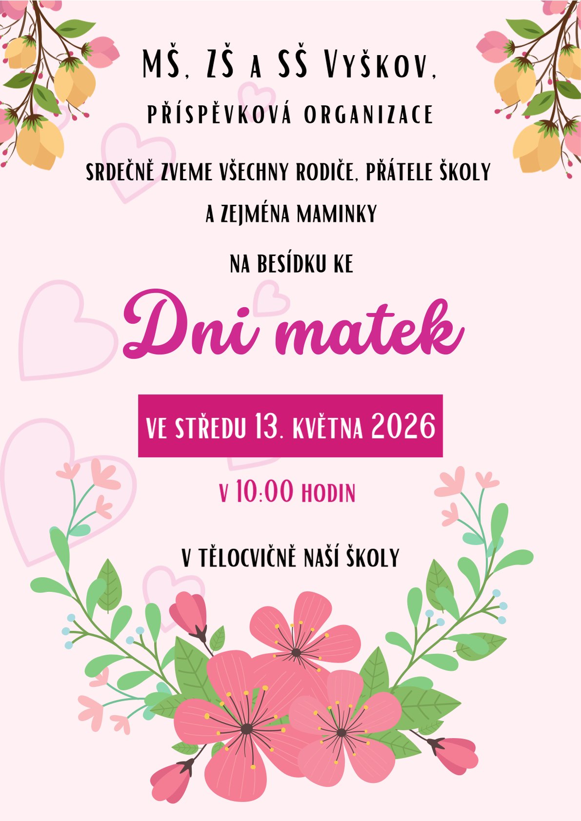 Pozvánka na besídku u příležitosti Dne matek