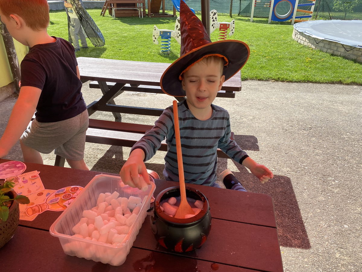 Dne 30. 4. 2025 nám celou školkou prostoupily čáry. Děti měly možnost si například připravit kouzelný lektvar, zdolávaly stezku mezi košťaty, házely míčky do kouzelné pavučiny a vytvořili si svoji vlastní čarodějnici. Za splnění všech čarovných disciplín je čekala medaile i sladká odměna.
