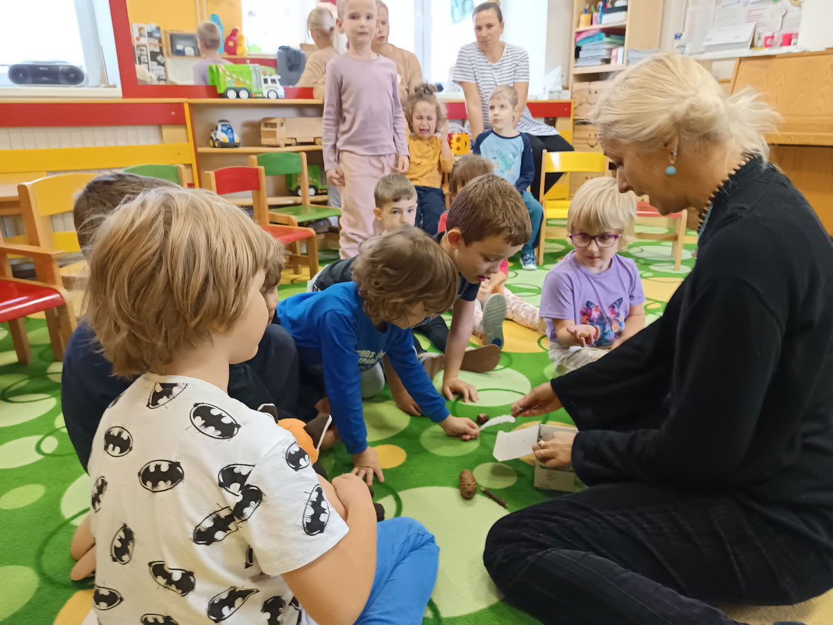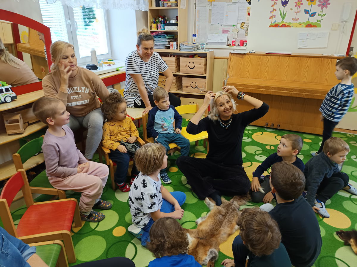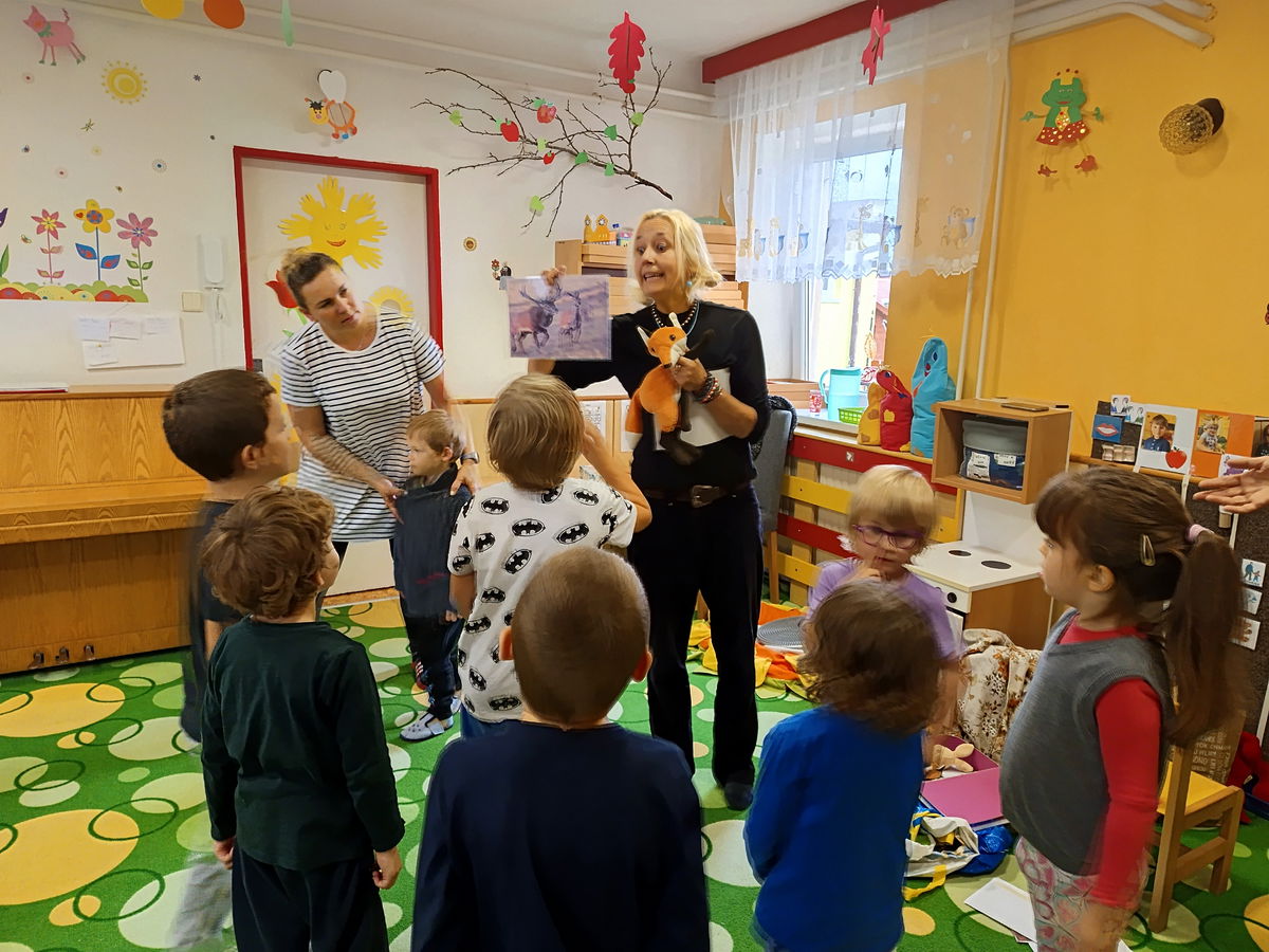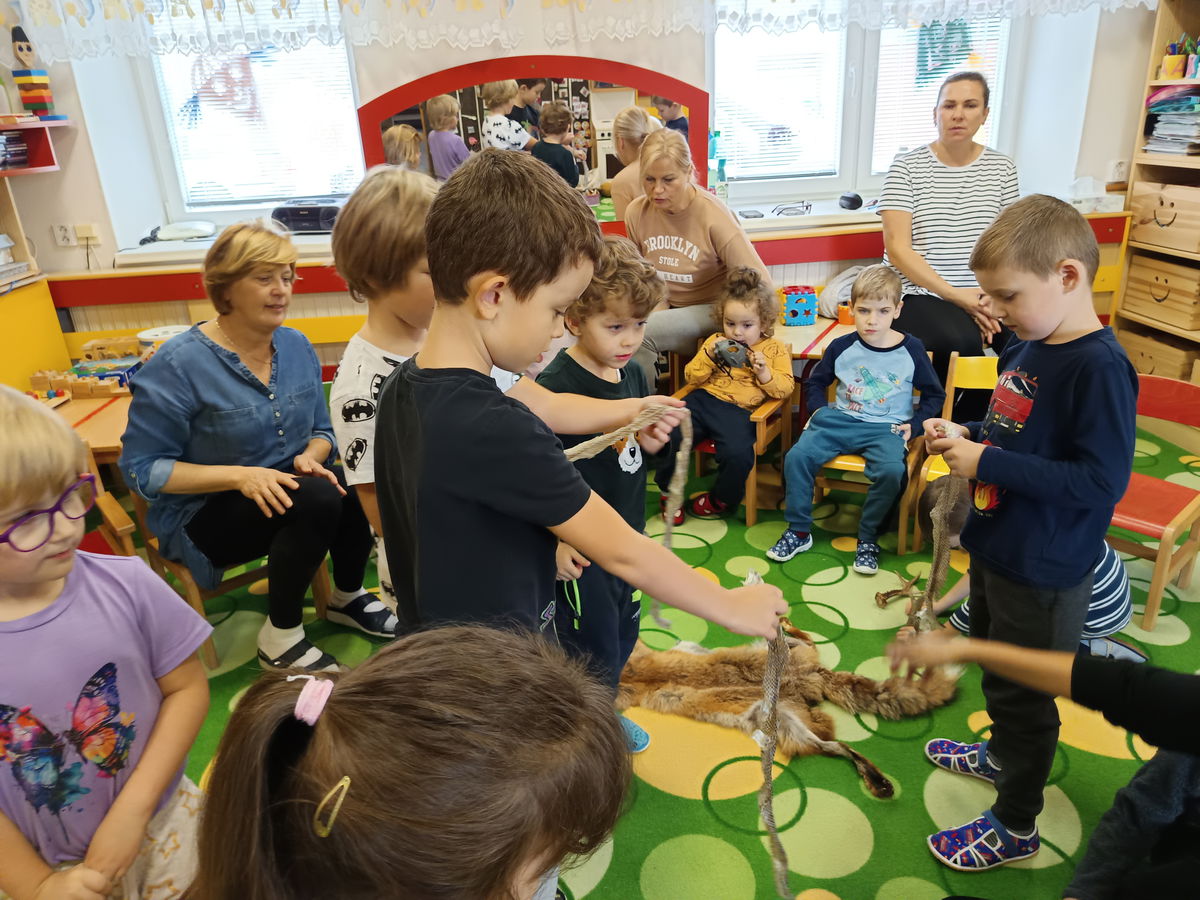 Dne 30. 10. nás ve školce navštívila paní Vymazalová ze ZOO Parku Vyškov a spolu s ní i zvířátka z lesa. Zábavnou a interaktivní formou prováděla děti příběhem Lišáka Emila a děti se spolu s ním učily o lesních zvířátcích, lesním ekosystému, potravě pro zvířata i zimním spánku. Děti měly možnost osahat si svléklou kůži hada, kožešiny a také shozené parůžky. Dětem se celý program líbil a velice si jej užily.