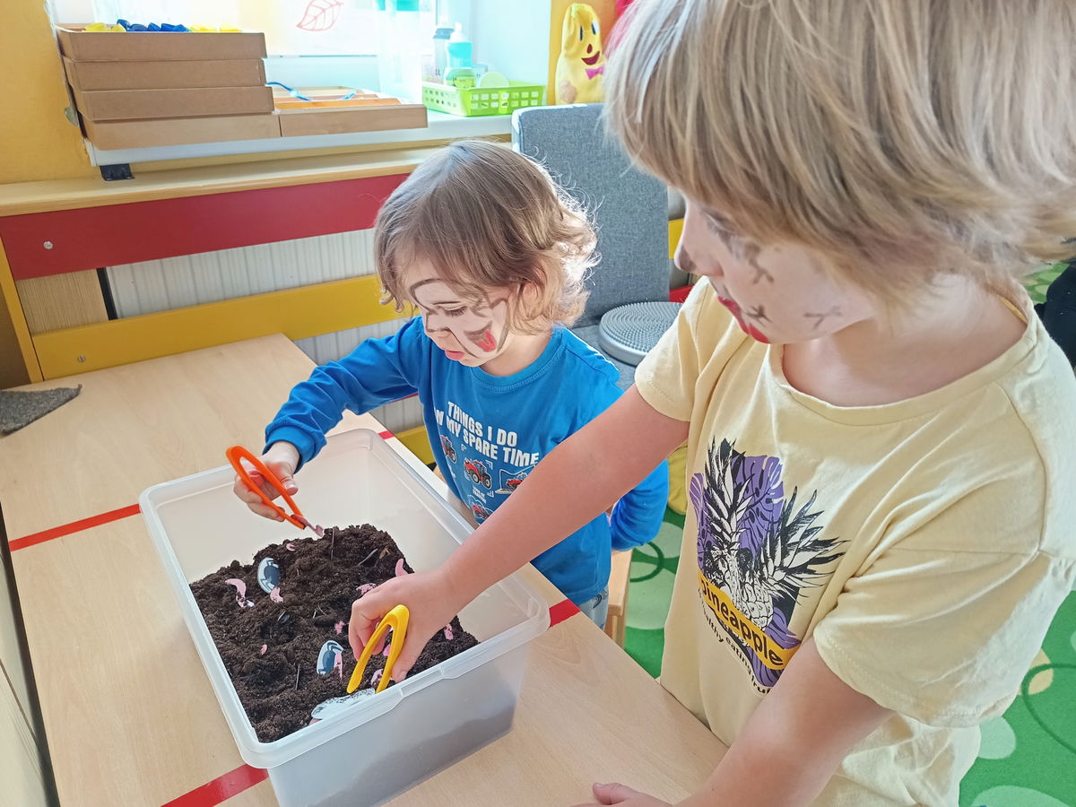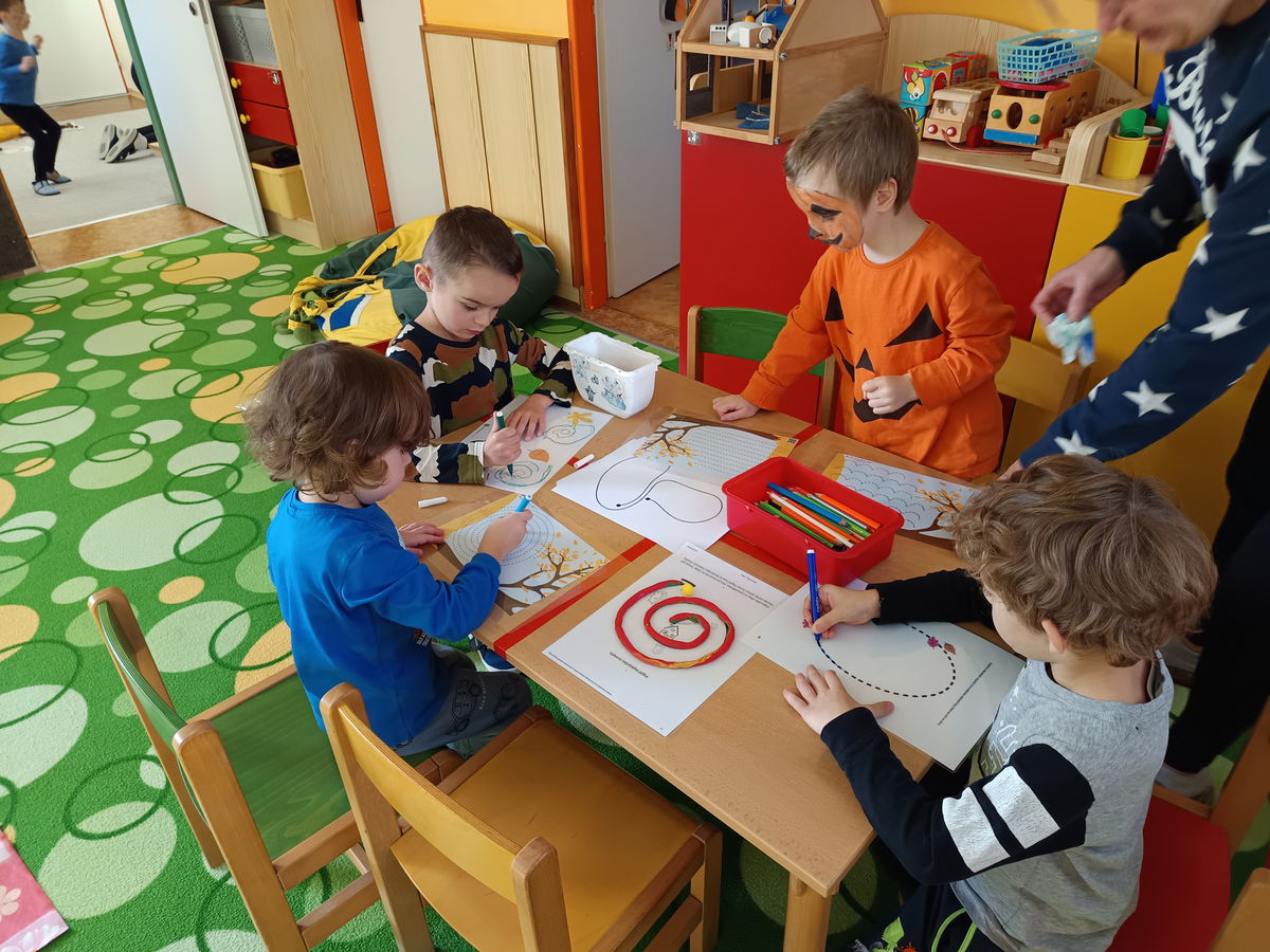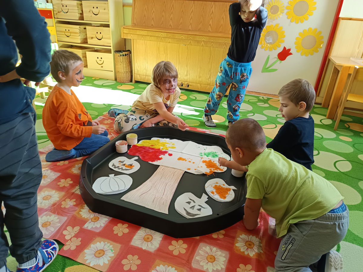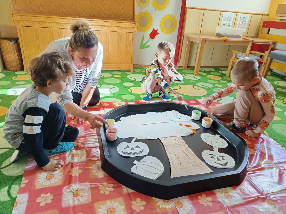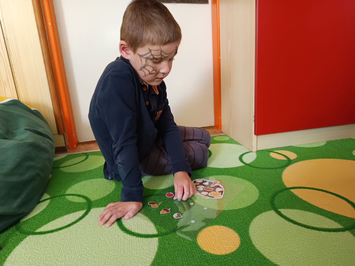 V pátek 31. 10. jsme pro děti připravily dopoledne plné her a aktivit s přírodninami. Děti hledaly žížaly v hlíně pinzetou, vytvářely barevný strom za pomoci barvy a pipet, skládaly obrázky dle předlohy, a spoustu dalších aktivit. Na závěr si děti na vycházce vytvořily podzimní koruny z listí.