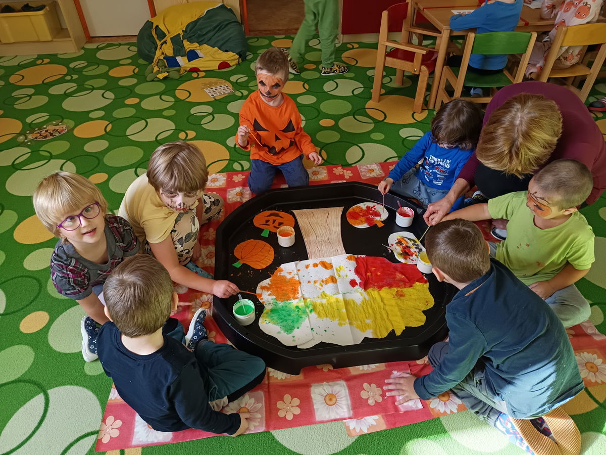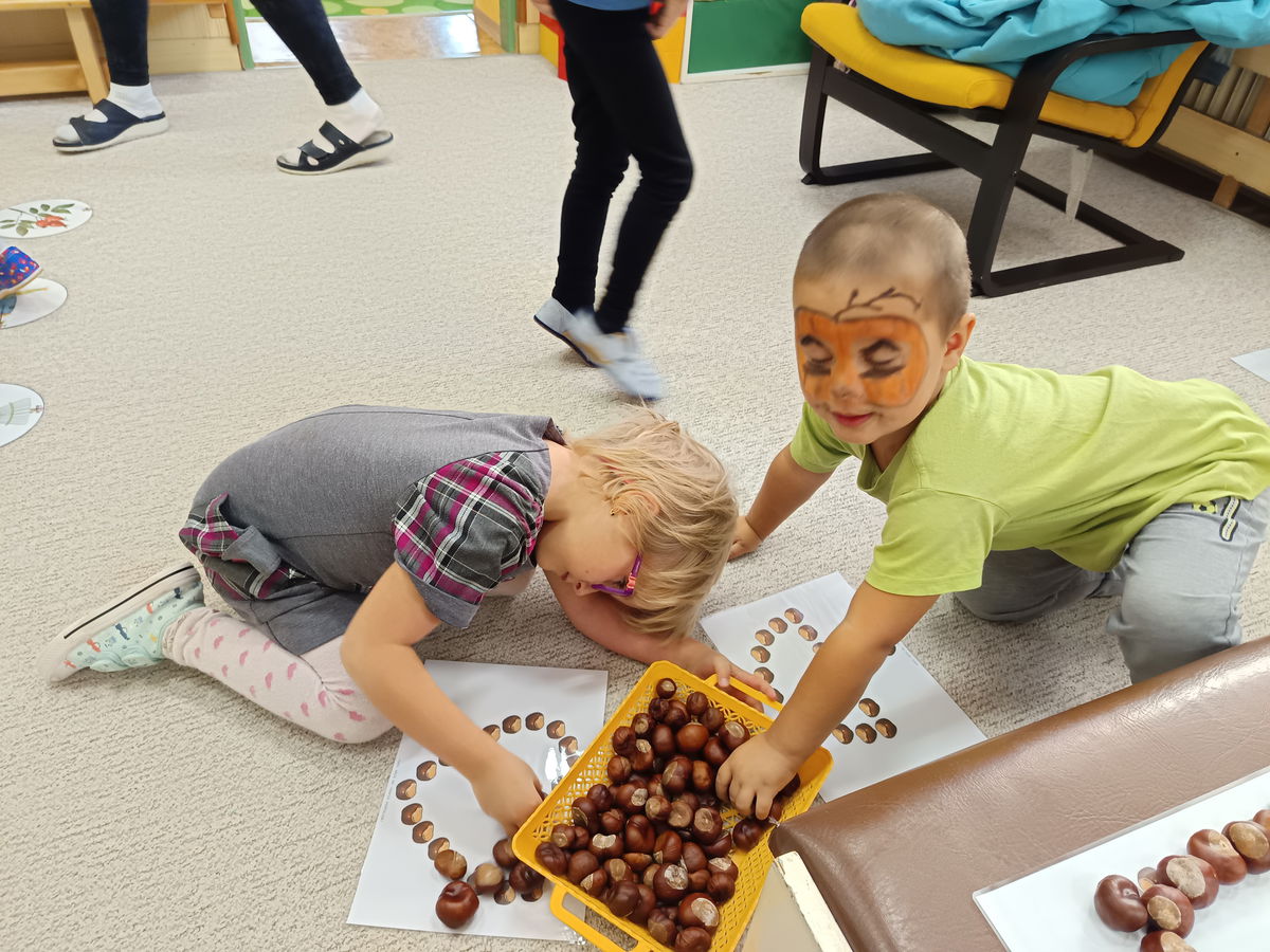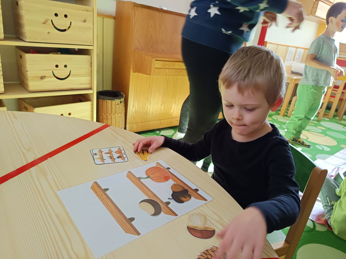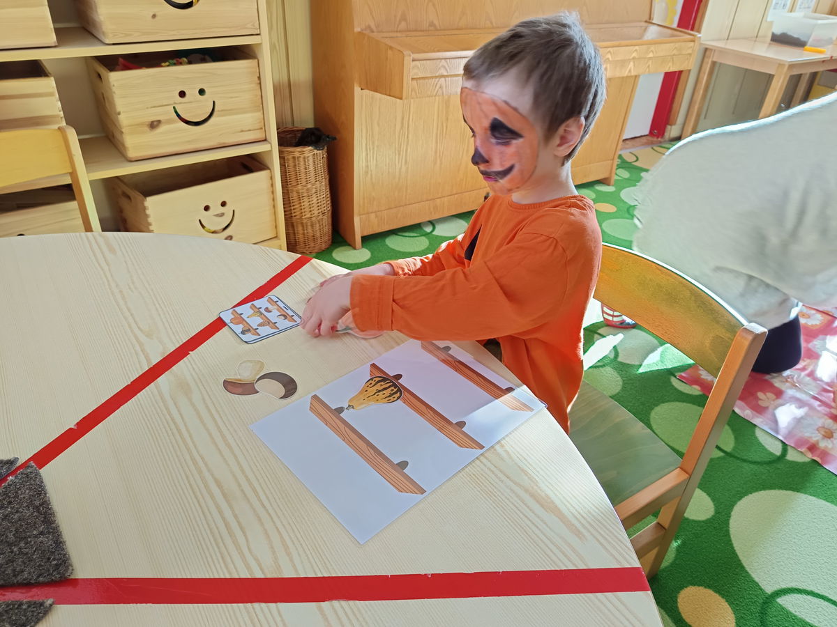 V pátek 31. 10. jsme pro děti připravily dopoledne plné her a aktivit s přírodninami. Děti hledaly žížaly v hlíně pinzetou, vytvářely barevný strom za pomoci barvy a pipet, skládaly obrázky dle předlohy, a spoustu dalších aktivit. Na závěr si děti na vycházce vytvořily podzimní koruny z listí.