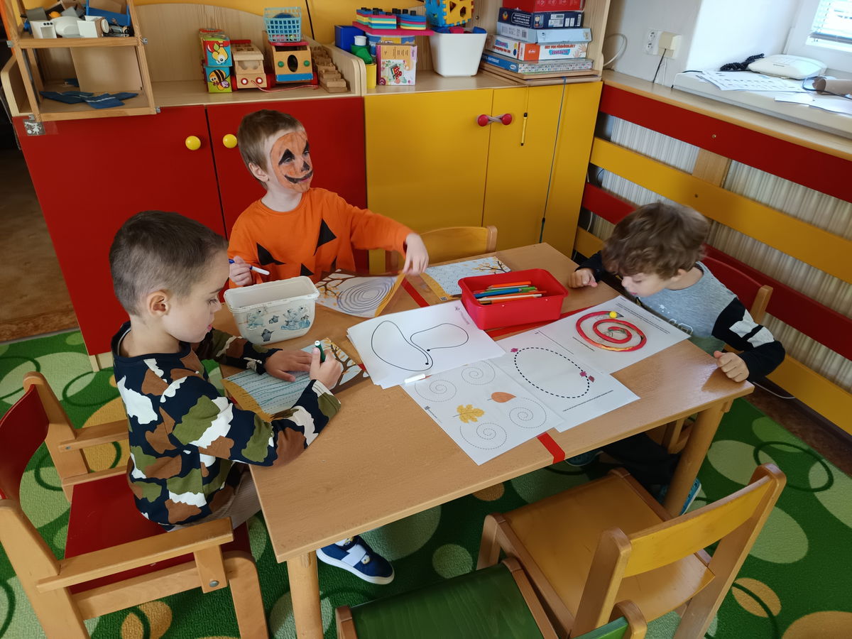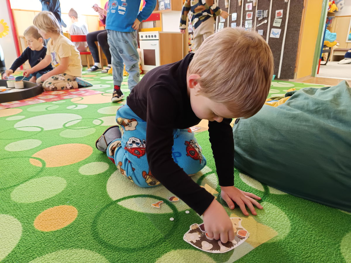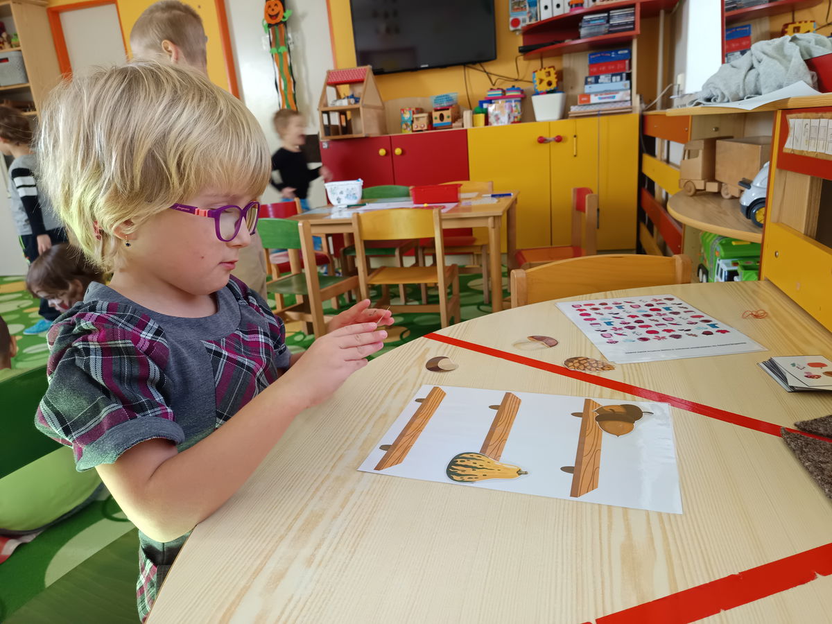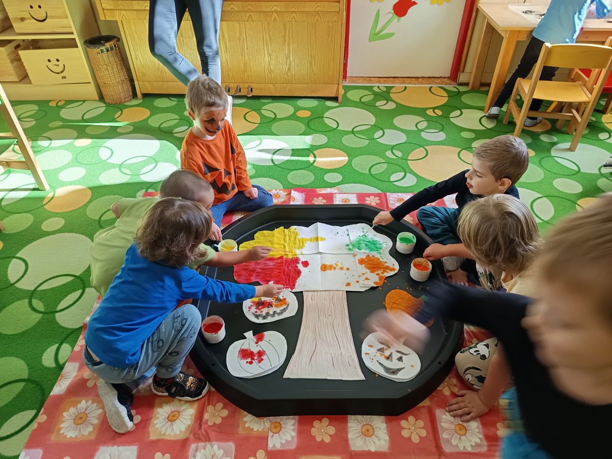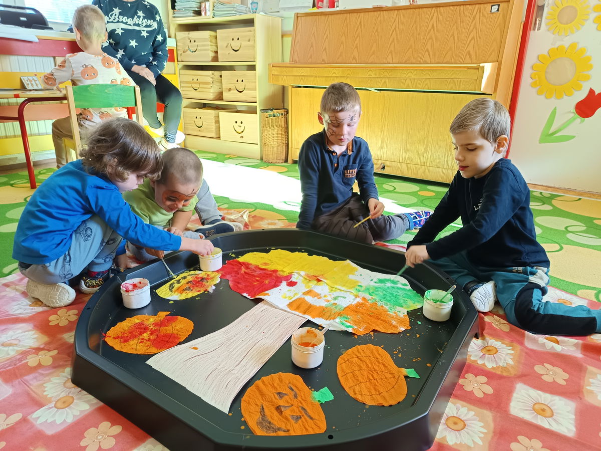 V pátek 31. 10. jsme pro děti připravily dopoledne plné her a aktivit s přírodninami. Děti hledaly žížaly v hlíně pinzetou, vytvářely barevný strom za pomoci barvy a pipet, skládaly obrázky dle předlohy, a spoustu dalších aktivit. Na závěr si děti na vycházce vytvořily podzimní koruny z listí.