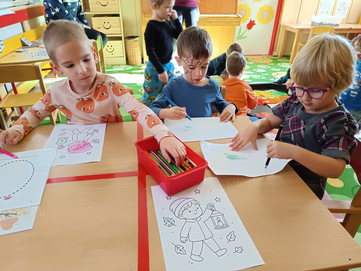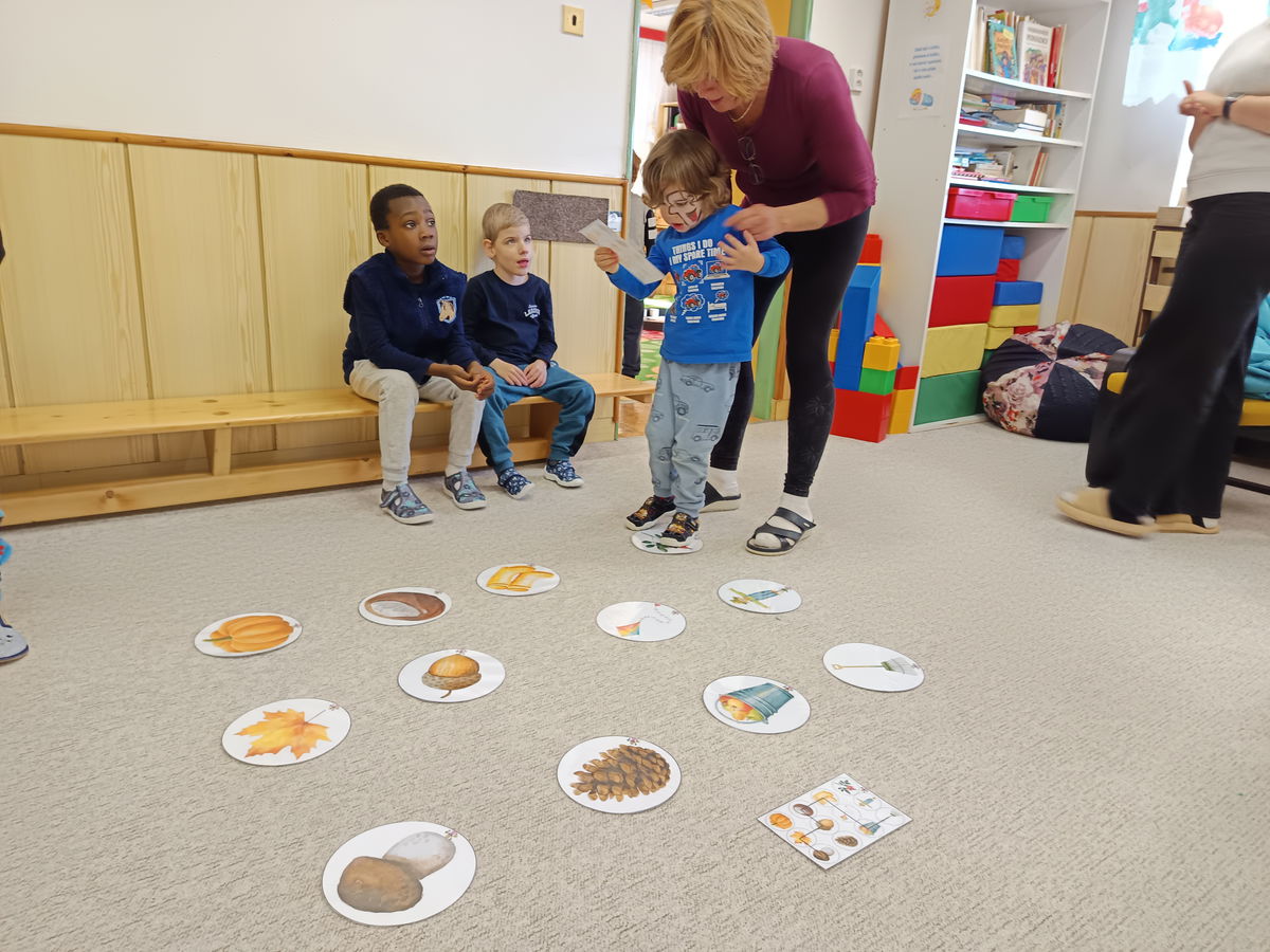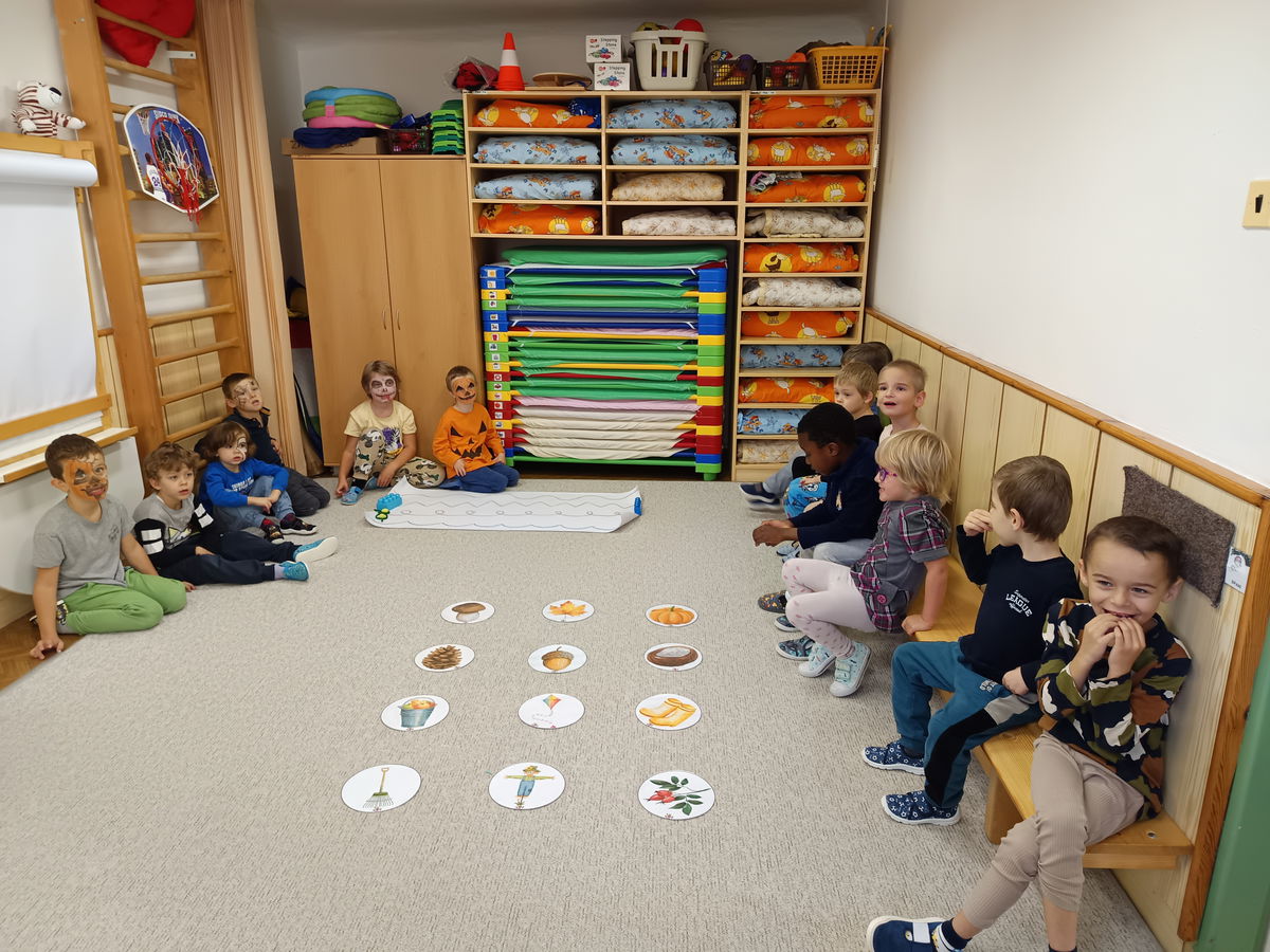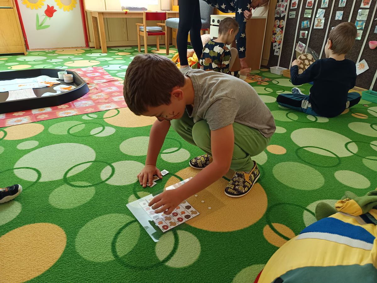 V pátek 31. 10. jsme pro děti připravily dopoledne plné her a aktivit s přírodninami. Děti hledaly žížaly v hlíně pinzetou, vytvářely barevný strom za pomoci barvy a pipet, skládaly obrázky dle předlohy, a spoustu dalších aktivit. Na závěr si děti na vycházce vytvořily podzimní koruny z listí.