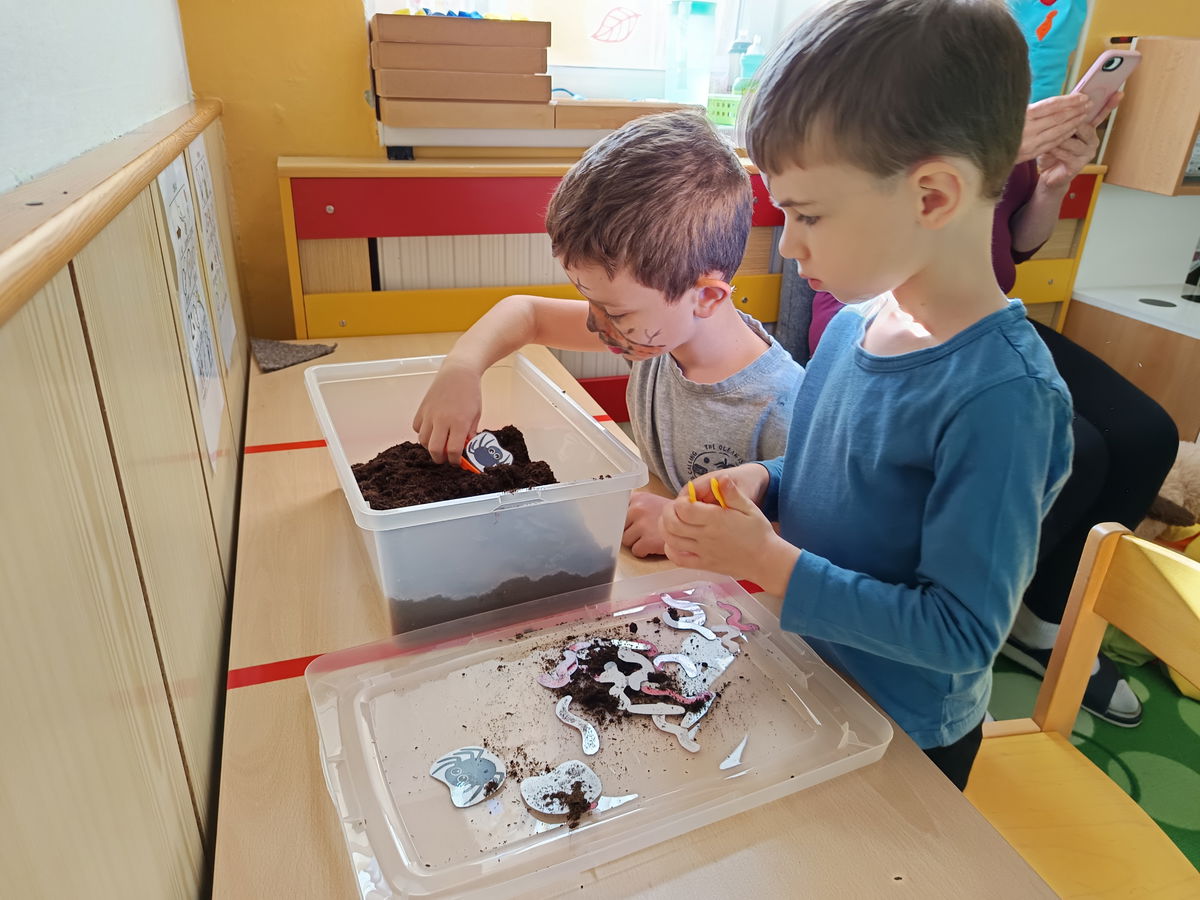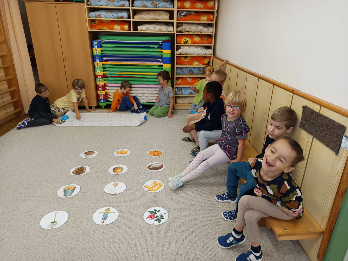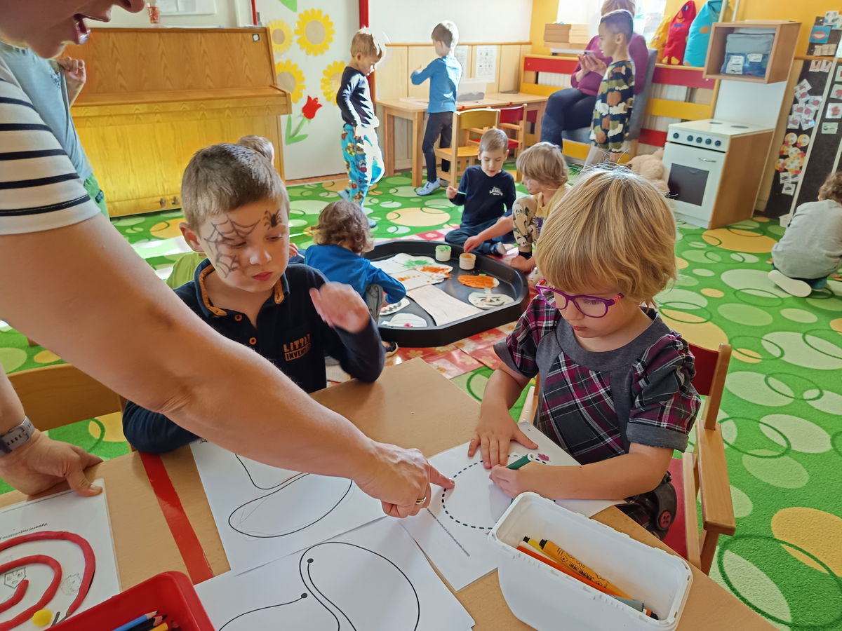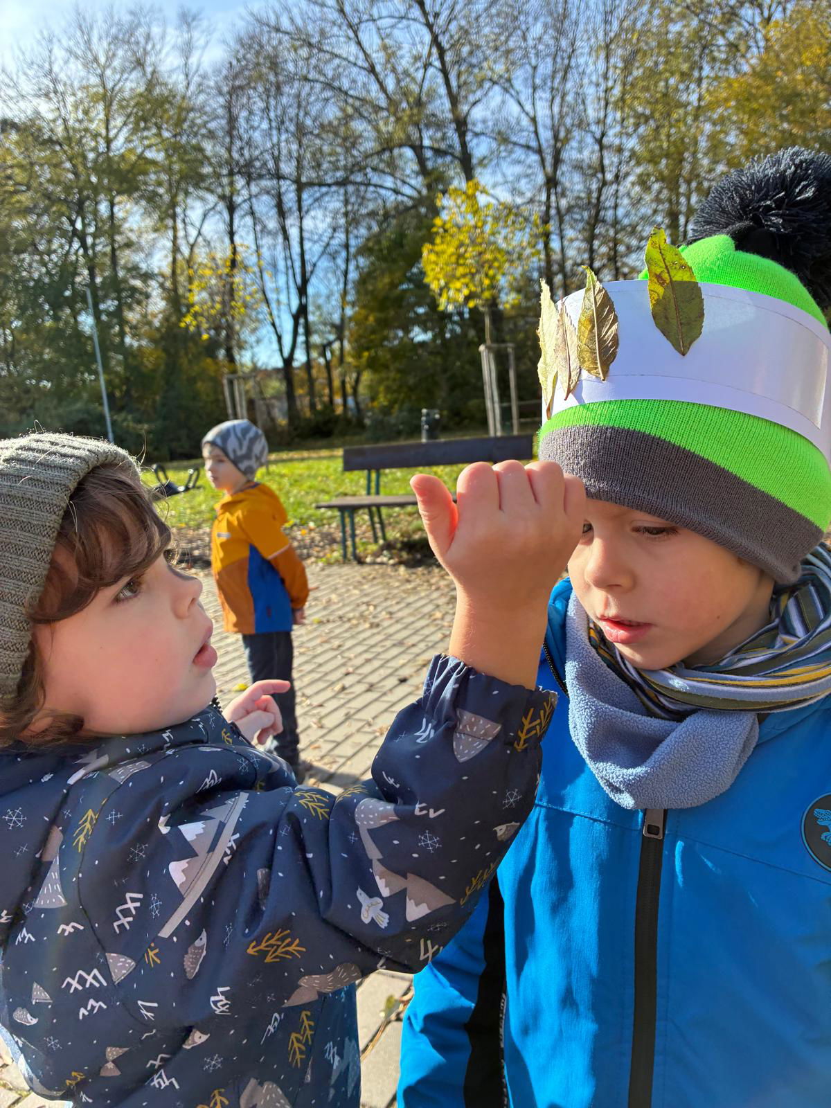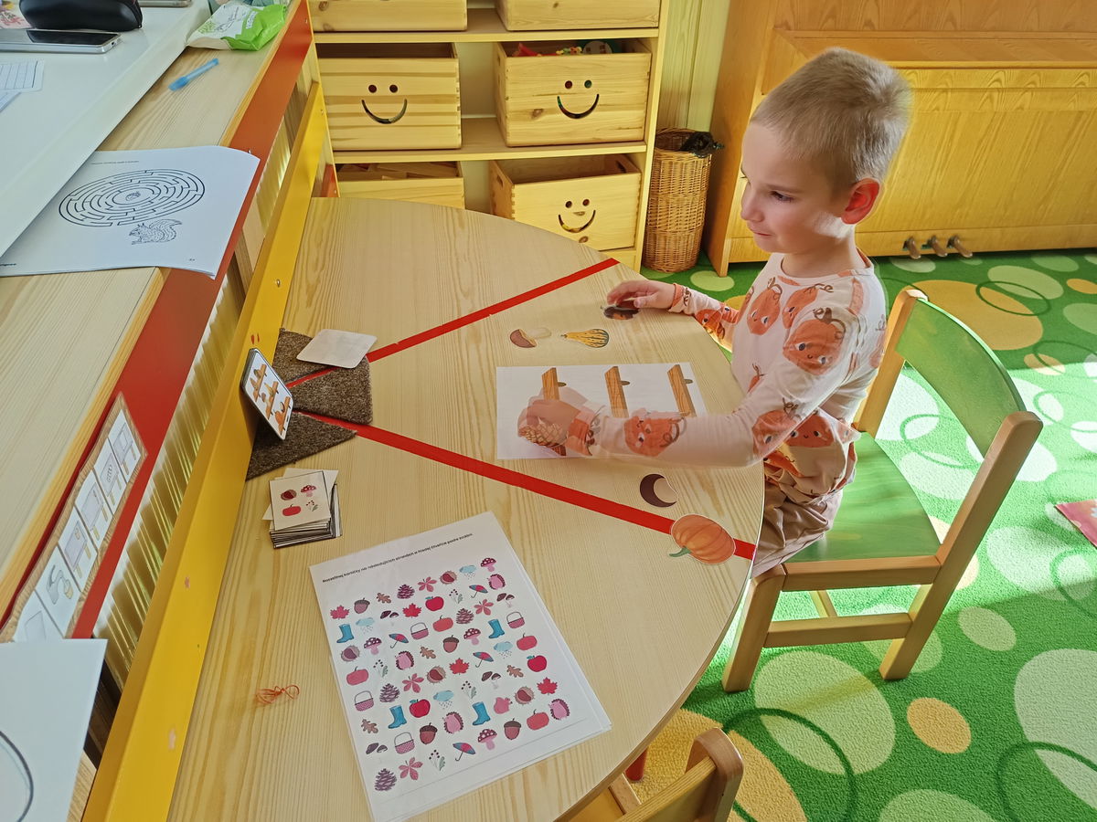 V pátek 31. 10. jsme pro děti připravily dopoledne plné her a aktivit s přírodninami. Děti hledaly žížaly v hlíně pinzetou, vytvářely barevný strom za pomoci barvy a pipet, skládaly obrázky dle předlohy, a spoustu dalších aktivit. Na závěr si děti na vycházce vytvořily podzimní koruny z listí.