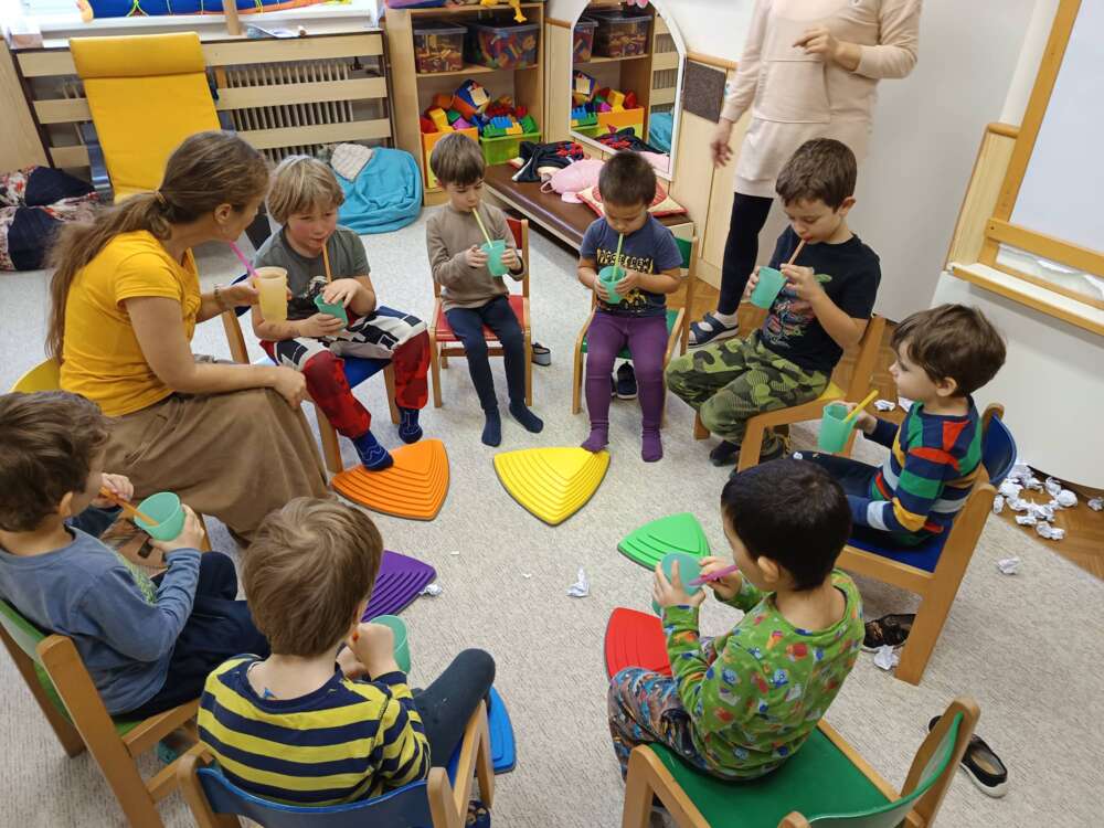 Děti zažívaly příběh ve Sněhovém království, byly hravou a interaktivní formou účastníci děje, ve kterém bylo vše cíleno na potřebné logopedické dovednosti.