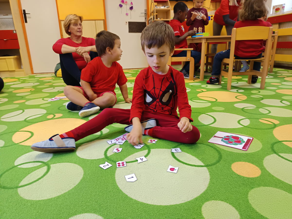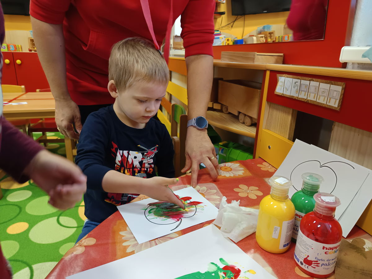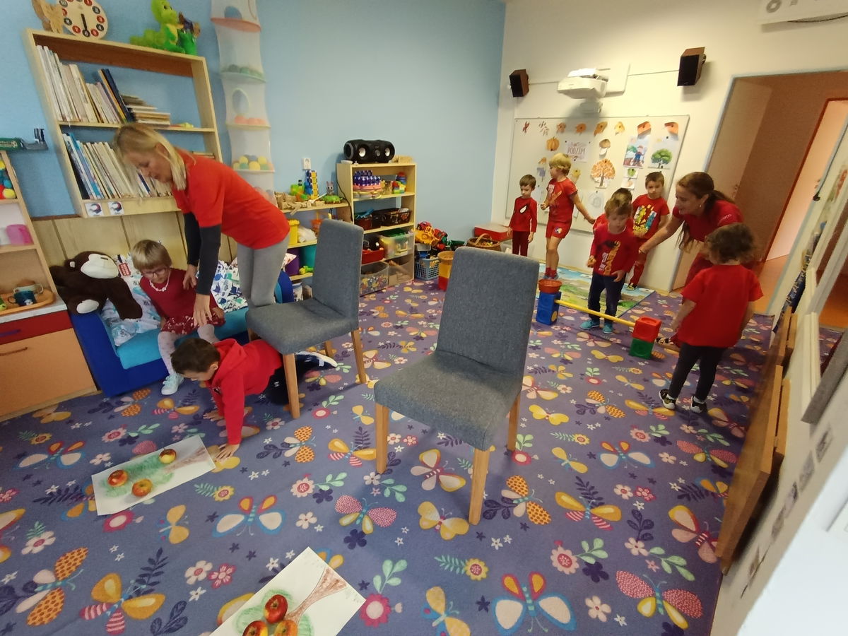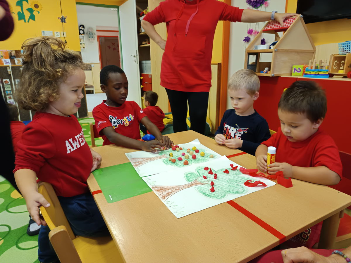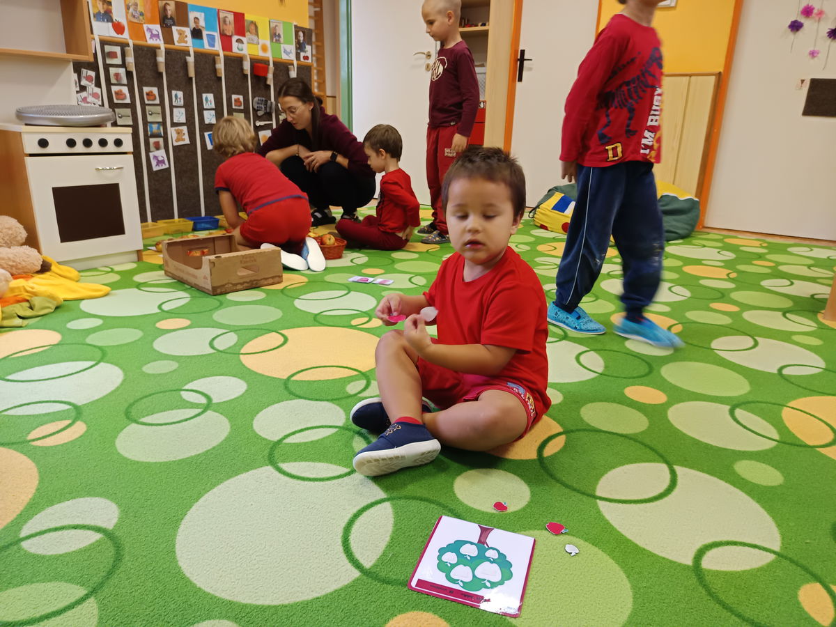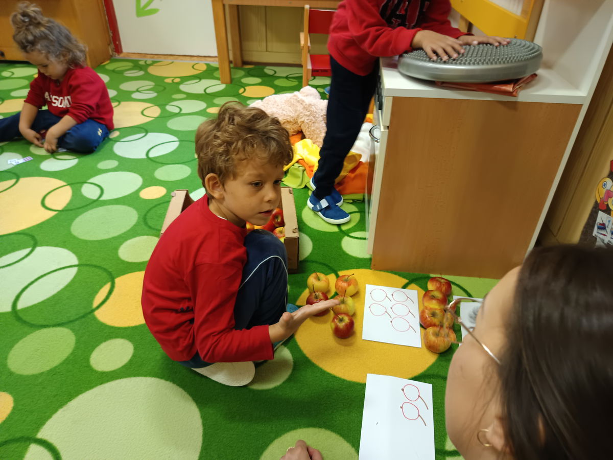 Ve středu 24. 9. 2025 proběhl ve školce červený jablíčkový, který jsme zahájili tanečkem na písničku "Měla babka". Děti také přemisťovaly jablíčka ze stromu do košíku a válely u toho sudy, zdolávaly překážkovou dráhu. Čekala je také výtvarná aktivita, kdy otiskovaly jablíčka na šablonu, nebo barvily jablíčko prsty. Třídily také jablíčka dle barev, velikostí a další. Dětem se aktivity líbily a s chutí se do všeho zapojily.