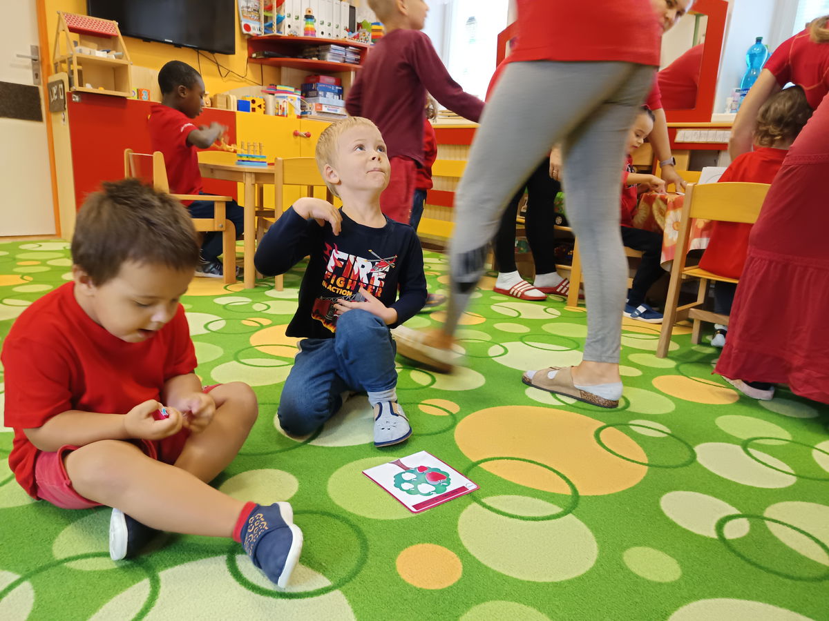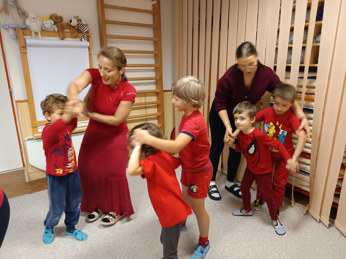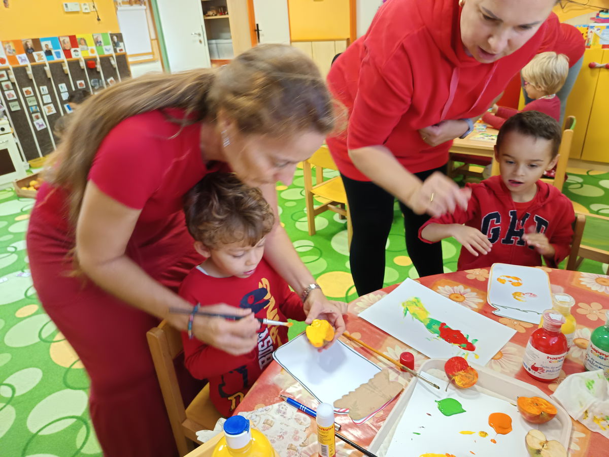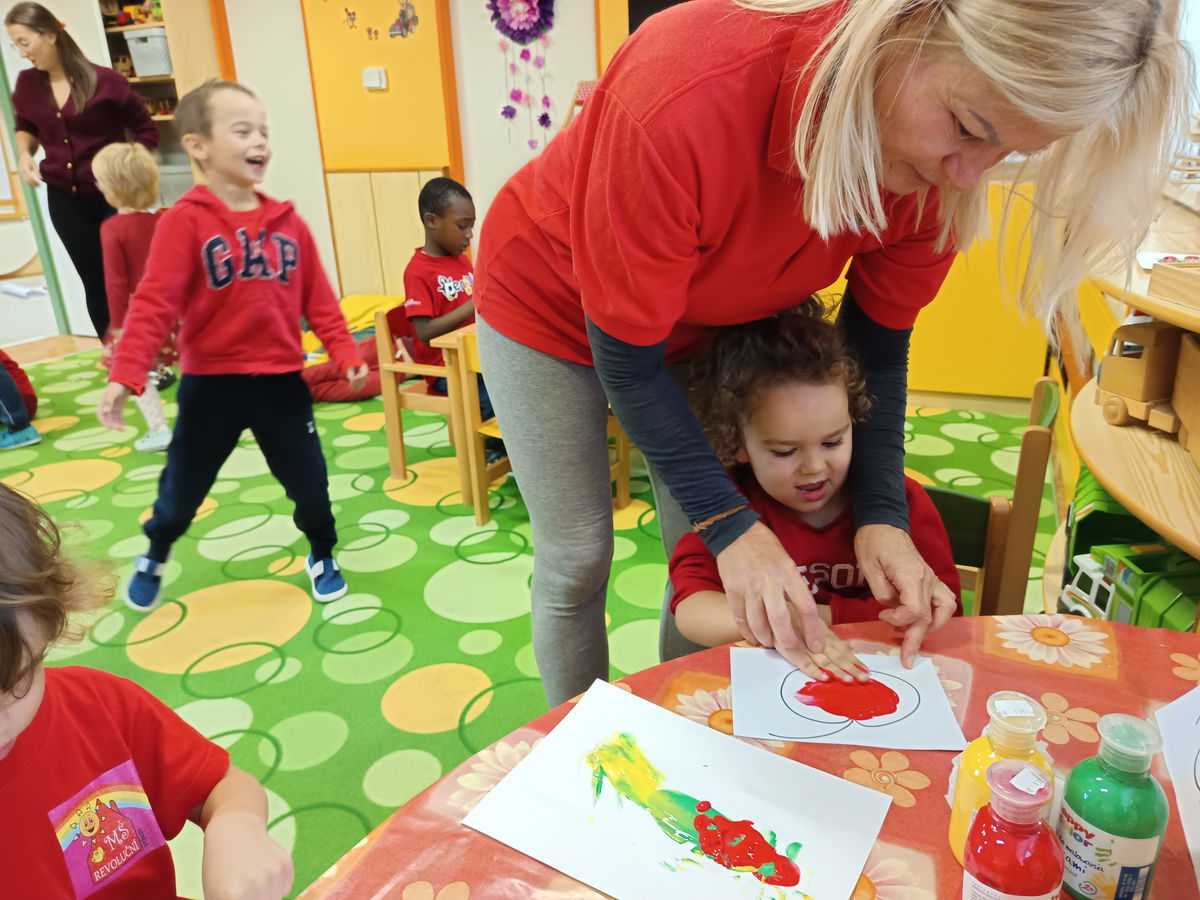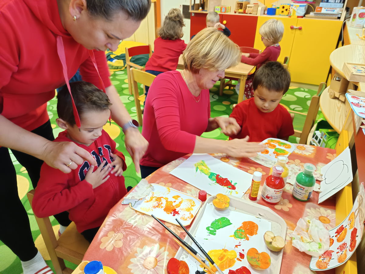 Ve středu 24. 9. 2025 proběhl ve školce červený jablíčkový, který jsme zahájili tanečkem na písničku "Měla babka". Děti také přemisťovaly jablíčka ze stromu do košíku a válely u toho sudy, zdolávaly překážkovou dráhu. Čekala je také výtvarná aktivita, kdy otiskovaly jablíčka na šablonu, nebo barvily jablíčko prsty. Třídily také jablíčka dle barev, velikostí a další. Dětem se aktivity líbily a s chutí se do všeho zapojily.