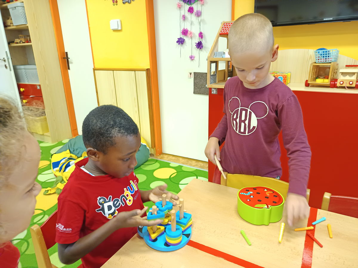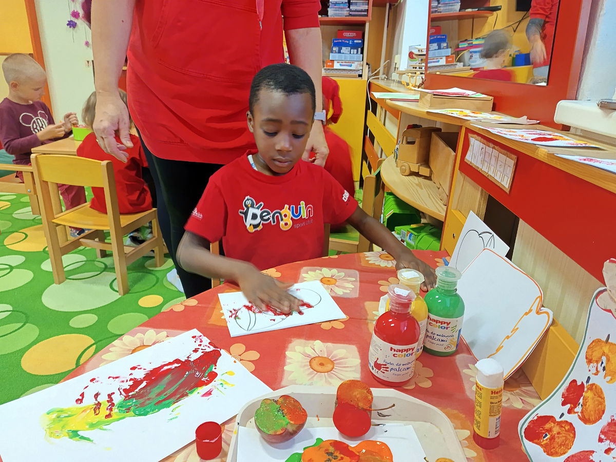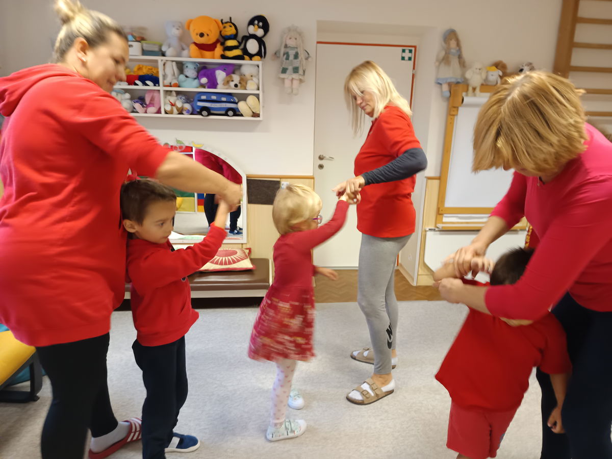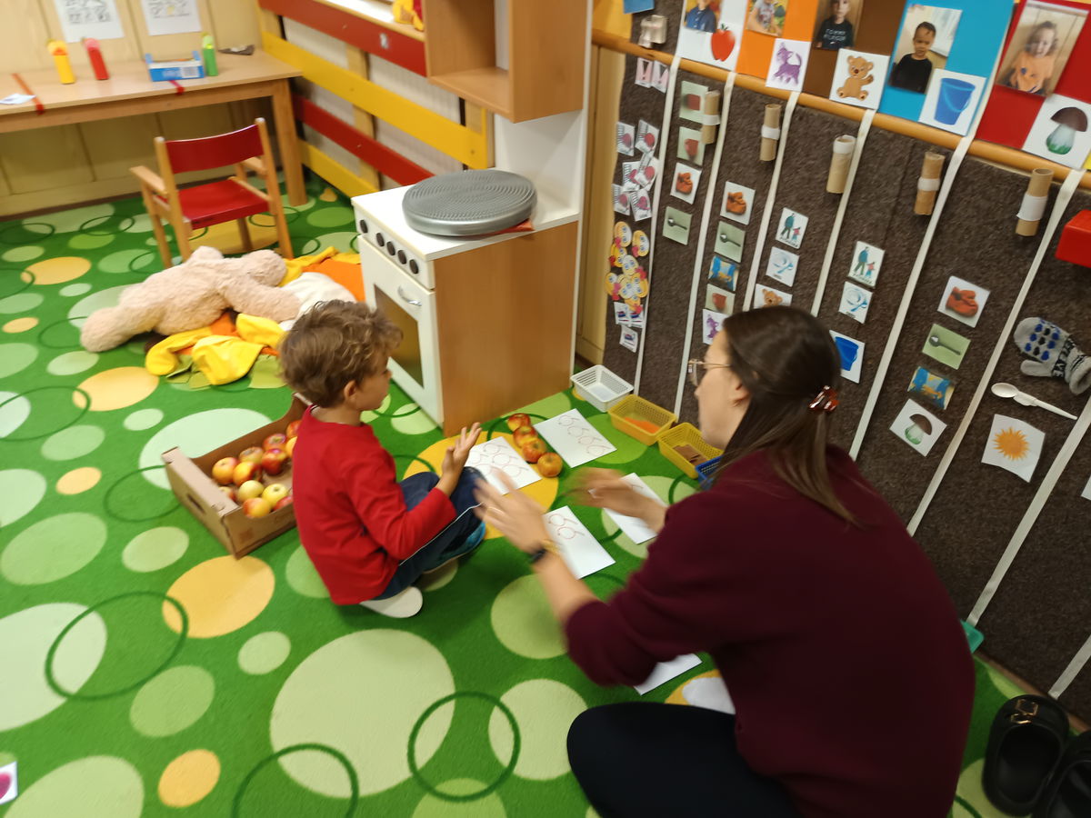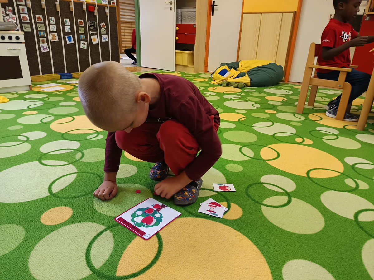 Ve středu 24. 9. 2025 proběhl ve školce červený jablíčkový, který jsme zahájili tanečkem na písničku "Měla babka". Děti také přemisťovaly jablíčka ze stromu do košíku a válely u toho sudy, zdolávaly překážkovou dráhu. Čekala je také výtvarná aktivita, kdy otiskovaly jablíčka na šablonu, nebo barvily jablíčko prsty. Třídily také jablíčka dle barev, velikostí a další. Dětem se aktivity líbily a s chutí se do všeho zapojily.