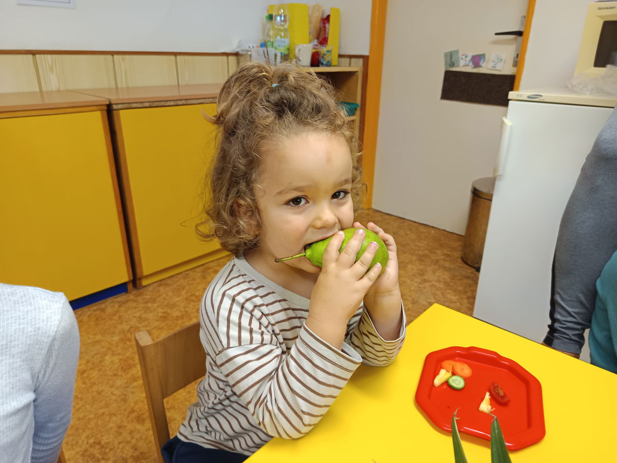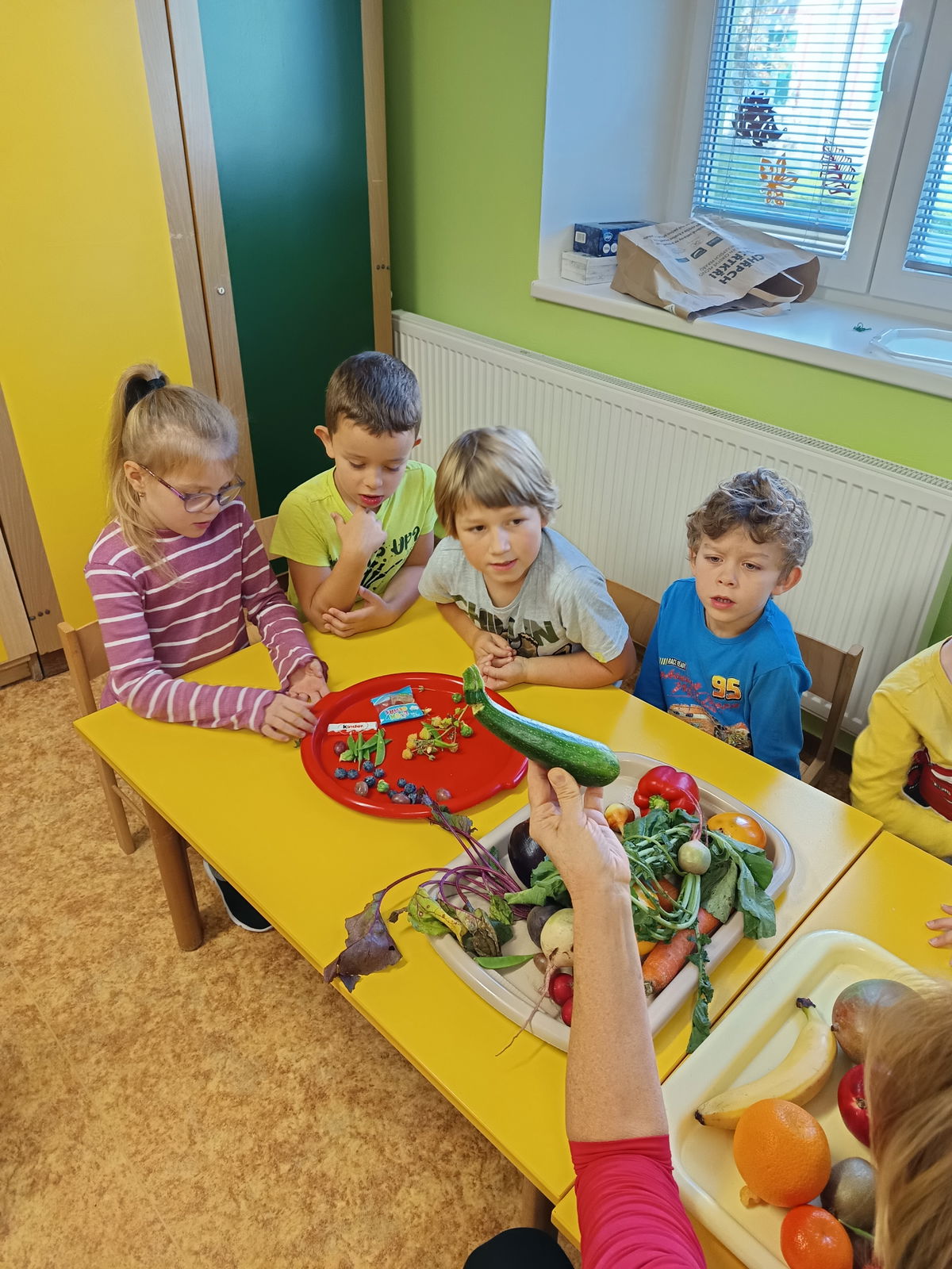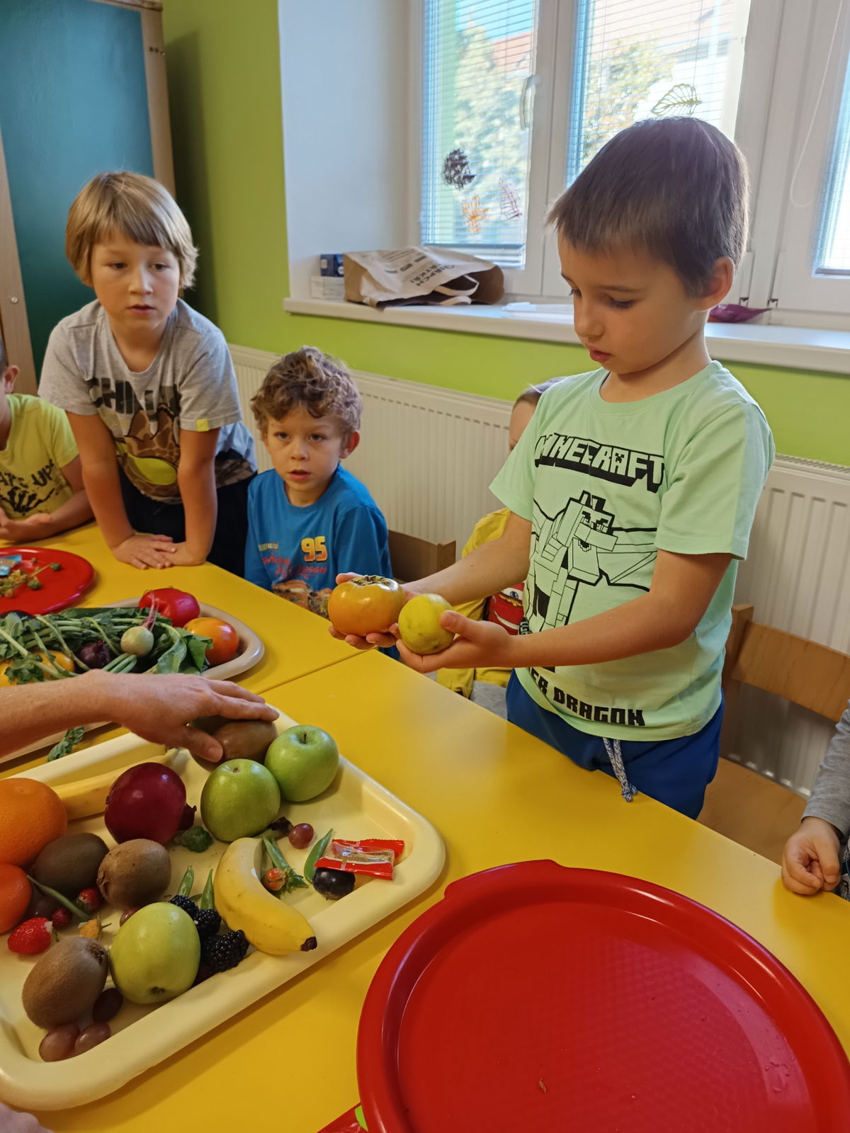 Ve středu 8. 10. 20025 proběhla ve školce akce “Ovoce a zelenina - to je zdraví, to je síla” kdy děti mají možnost si prohlédnout, osahat, ovonět, napíchnout a také ochutnat nejrůznější druhy ovoce a zeleniny. Dětem se aktivita líbila.