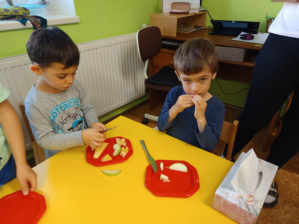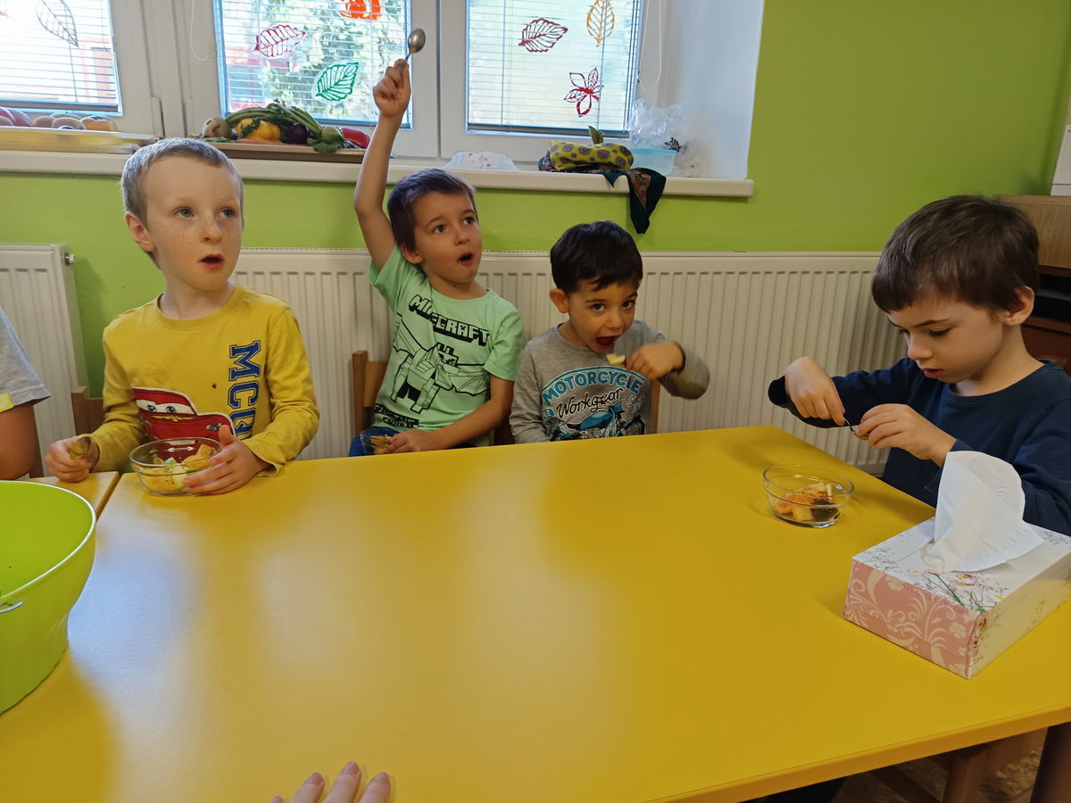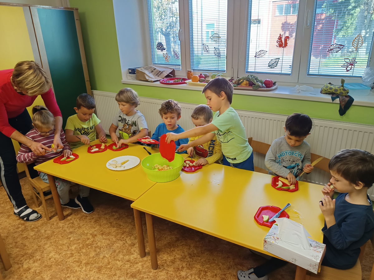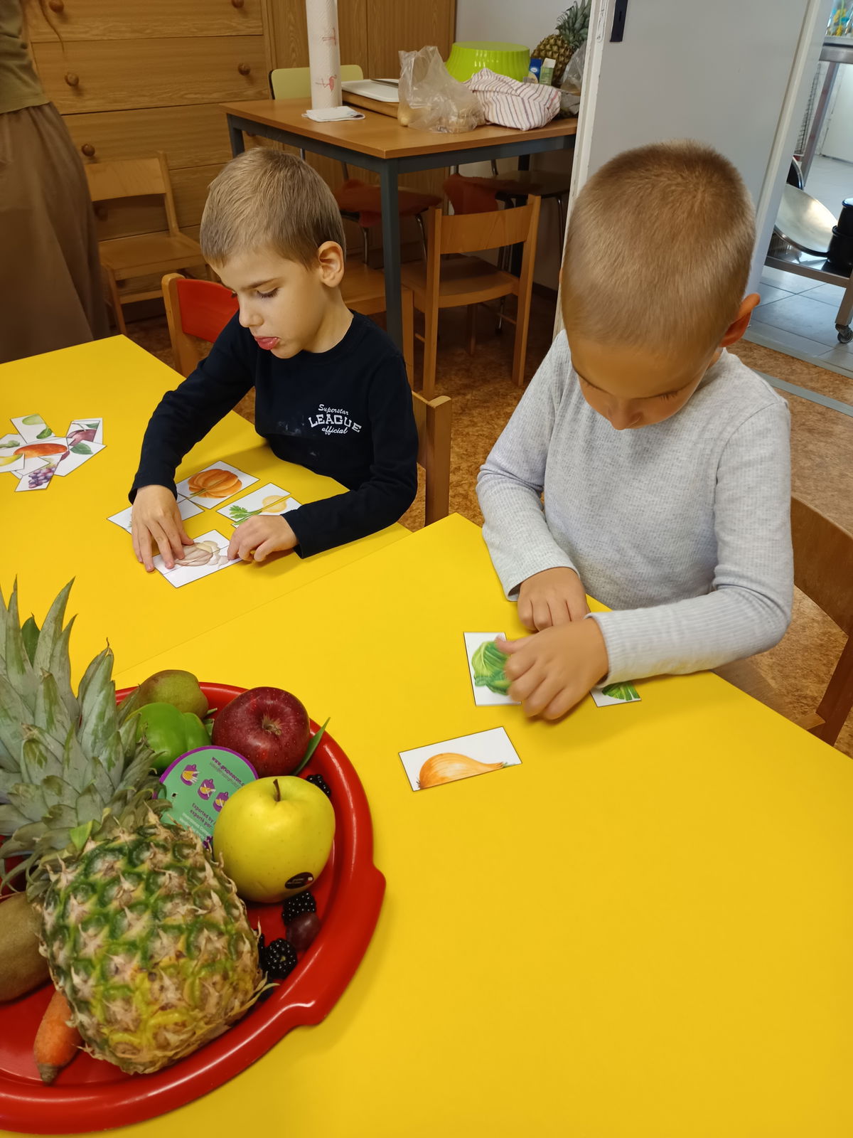 Ve středu 8. 10. 20025 proběhla ve školce akce “Ovoce a zelenina - to je zdraví, to je síla” kdy děti mají možnost si prohlédnout, osahat, ovonět, napíchnout a také ochutnat nejrůznější druhy ovoce a zeleniny. Dětem se aktivita líbila.