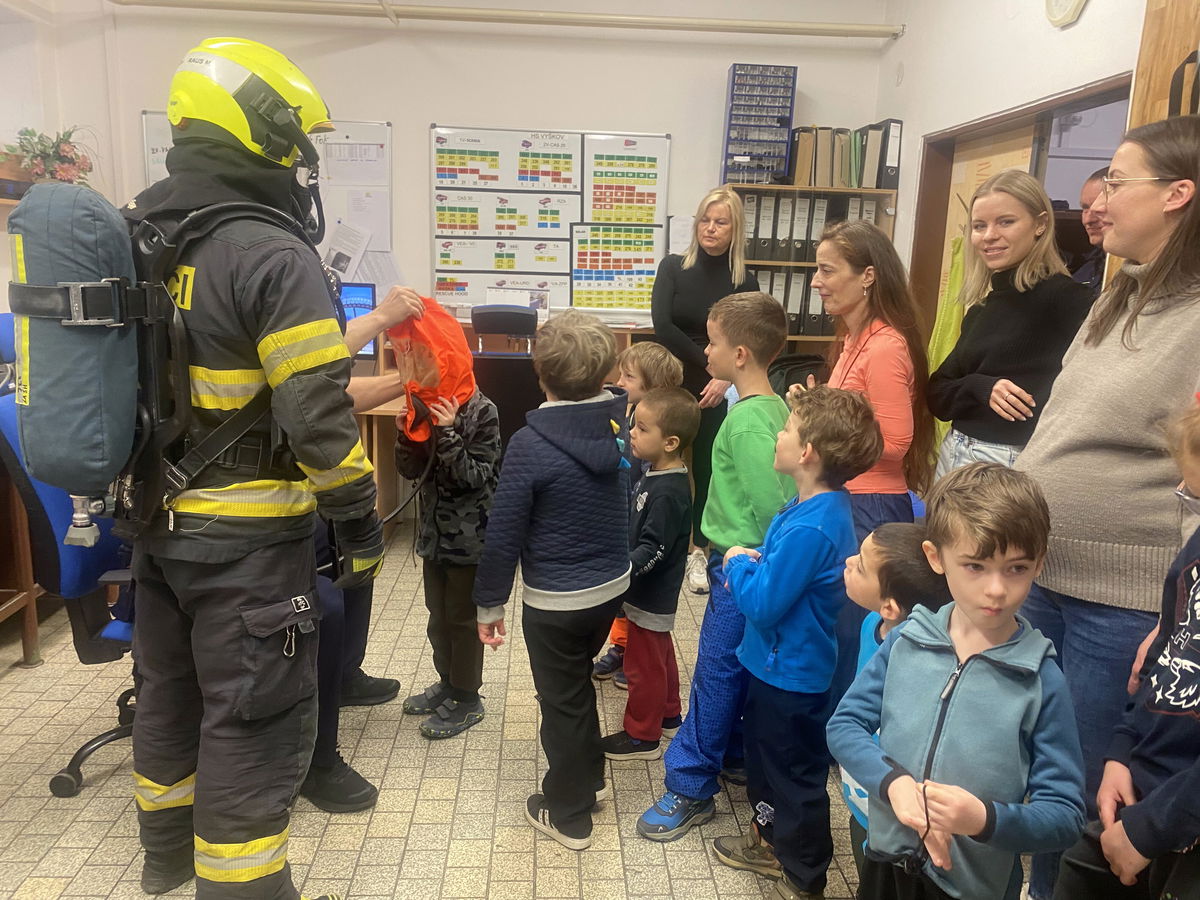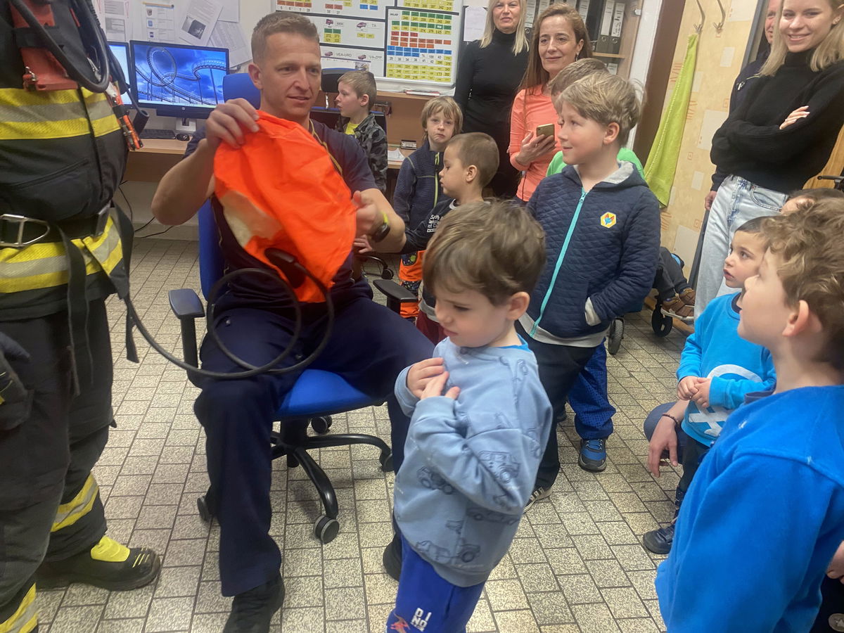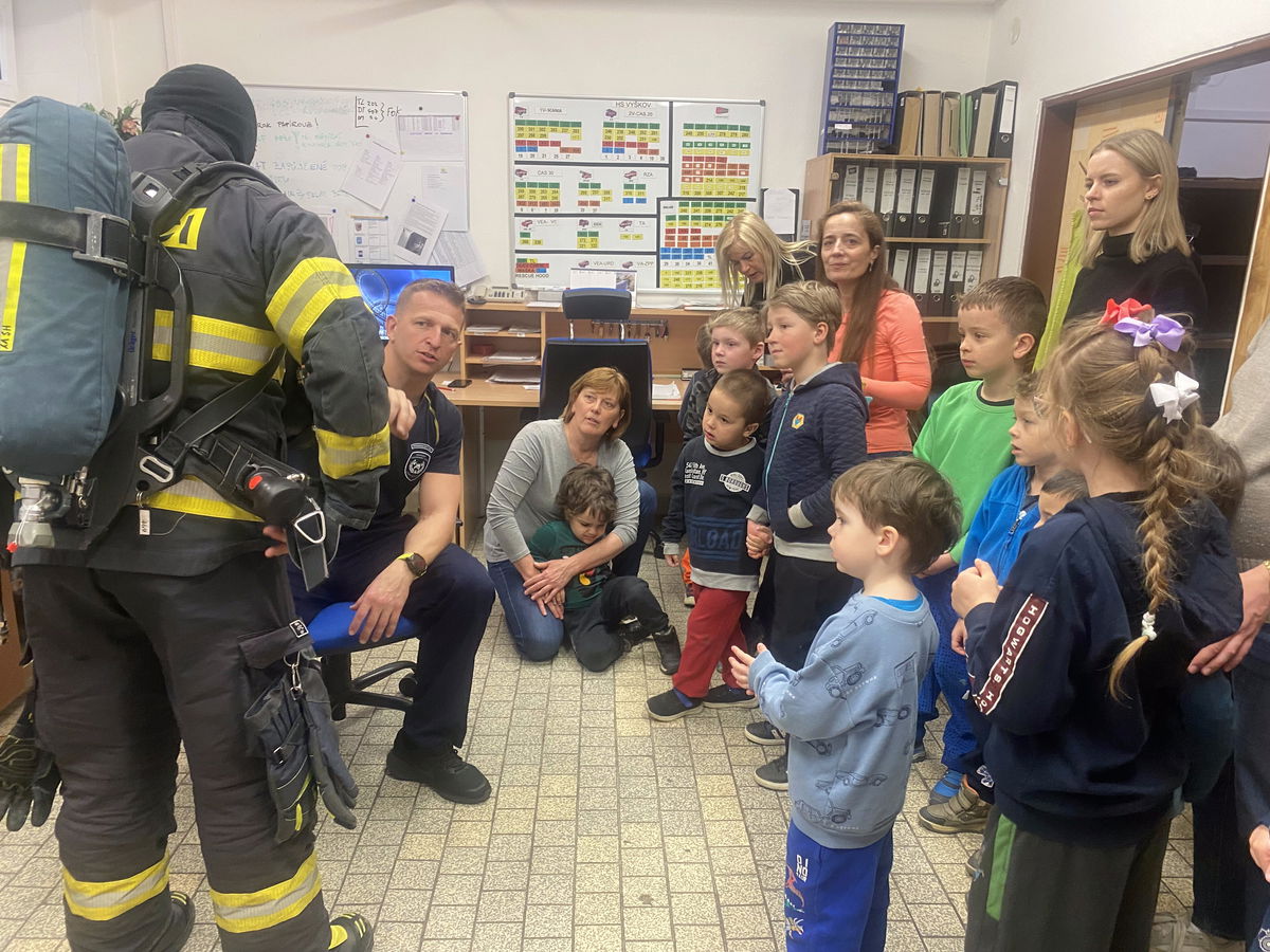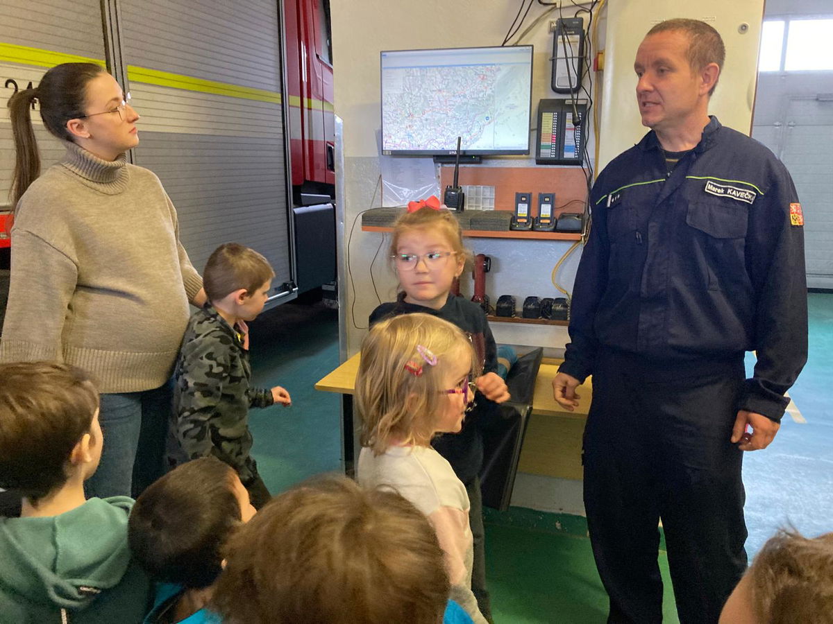 V úterý 14. 4. jsme s dětmi navštívili centrální hasičskou stanici Vyškov, kde nás čekala i exkurze. Nahlédly jsme do všech prostorů, děti měly možnost vidět hasičské vybavení, prohlédnout si různá vozidla, byly poučeny jak se chovat v různých situacích. Měly také možnost nahlédnou jak se pracuje s termokamerou a na závěr nás páni hasiči vyfotili i dronem. Exkurze se všem velice líbila, a děti dostali od hasičů i dárek na památku.