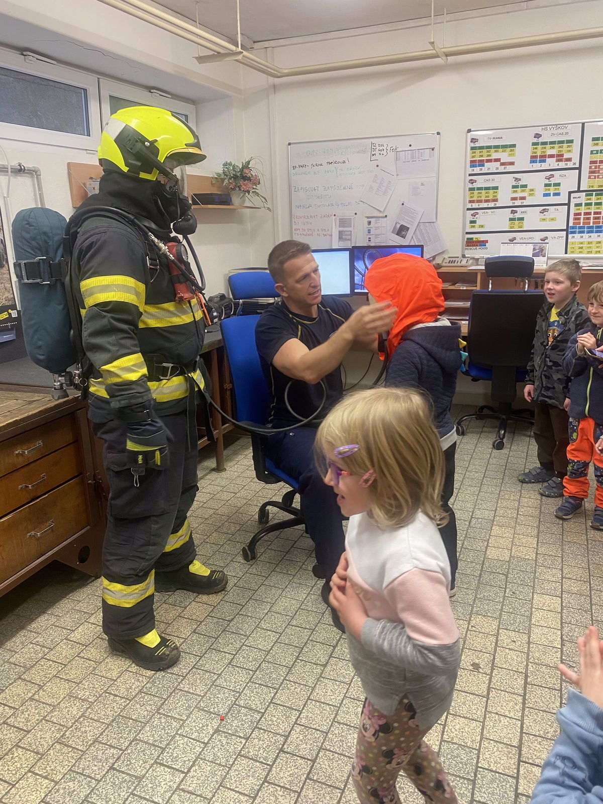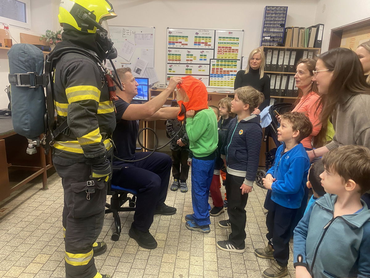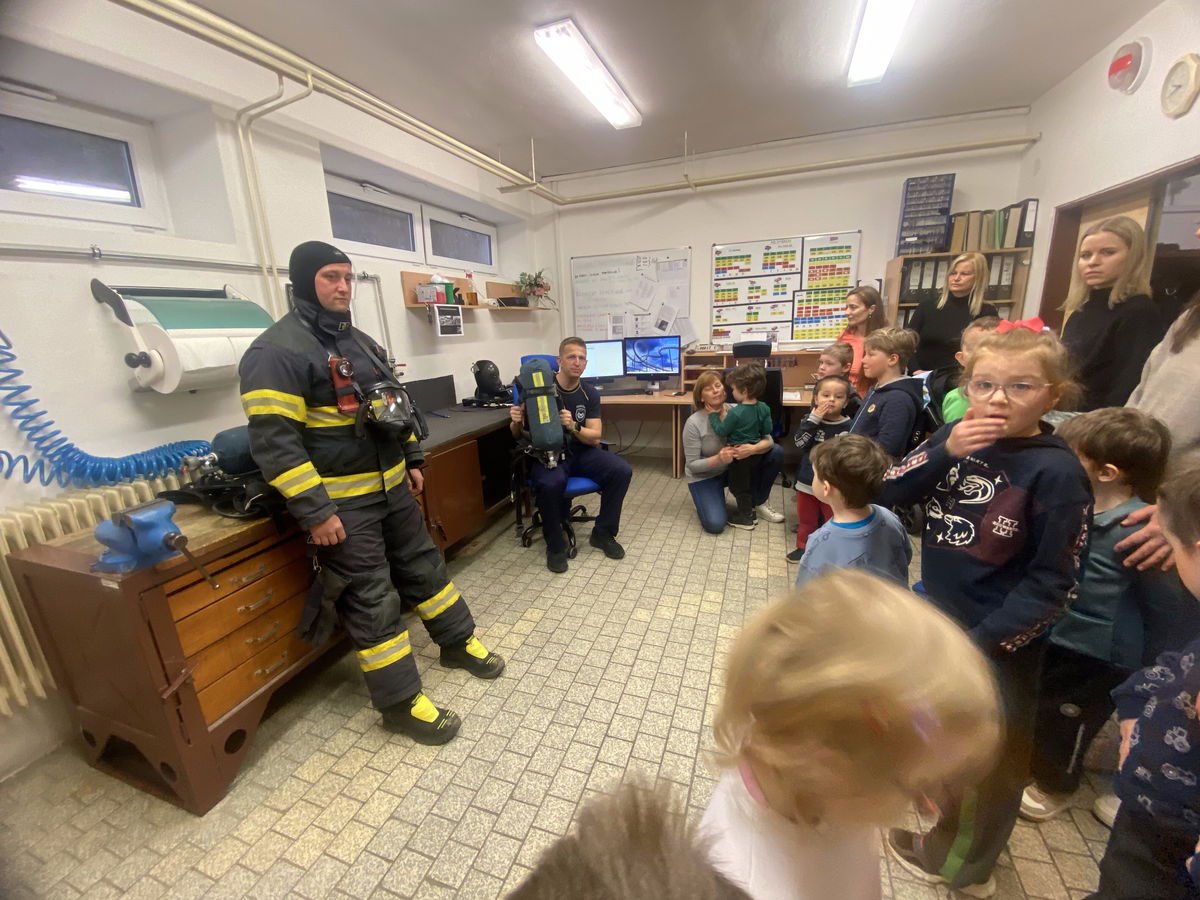 V úterý 14. 4. jsme s dětmi navštívili centrální hasičskou stanici Vyškov, kde nás čekala i exkurze. Nahlédly jsme do všech prostorů, děti měly možnost vidět hasičské vybavení, prohlédnout si různá vozidla, byly poučeny jak se chovat v různých situacích. Měly také možnost nahlédnou jak se pracuje s termokamerou a na závěr nás páni hasiči vyfotili i dronem. Exkurze se všem velice líbila, a děti dostali od hasičů i dárek na památku.