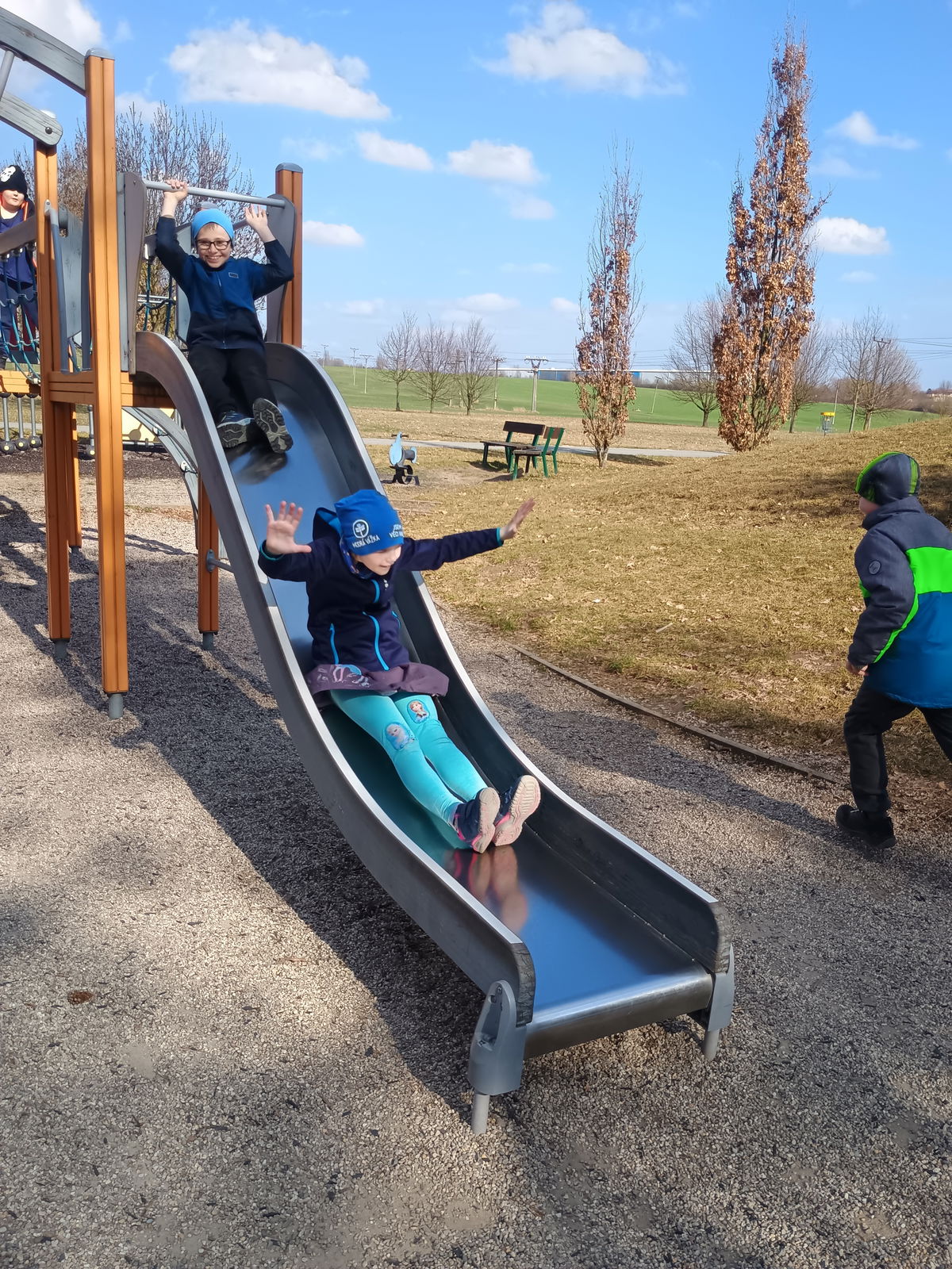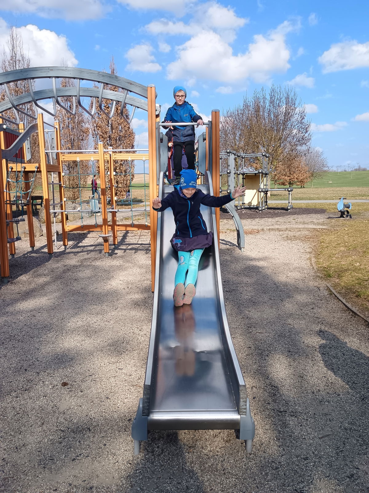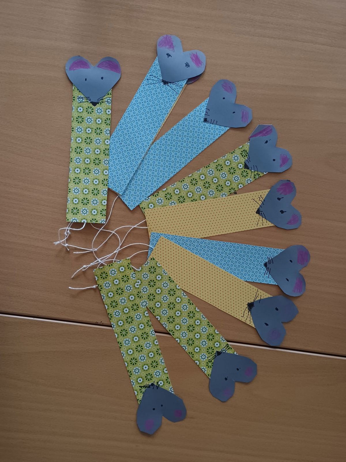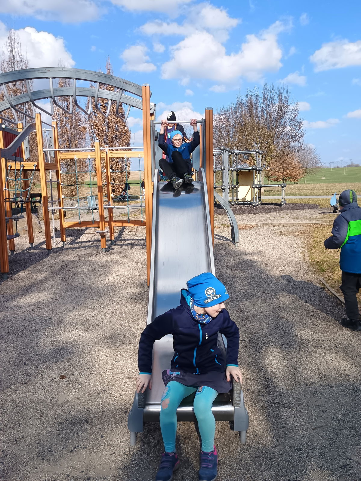 V březnu jsme za hezkého počasí trávili čas venku na hřištích. Také jsme si vyrobili záložku do knihy, protože březen je měsíc knihy.