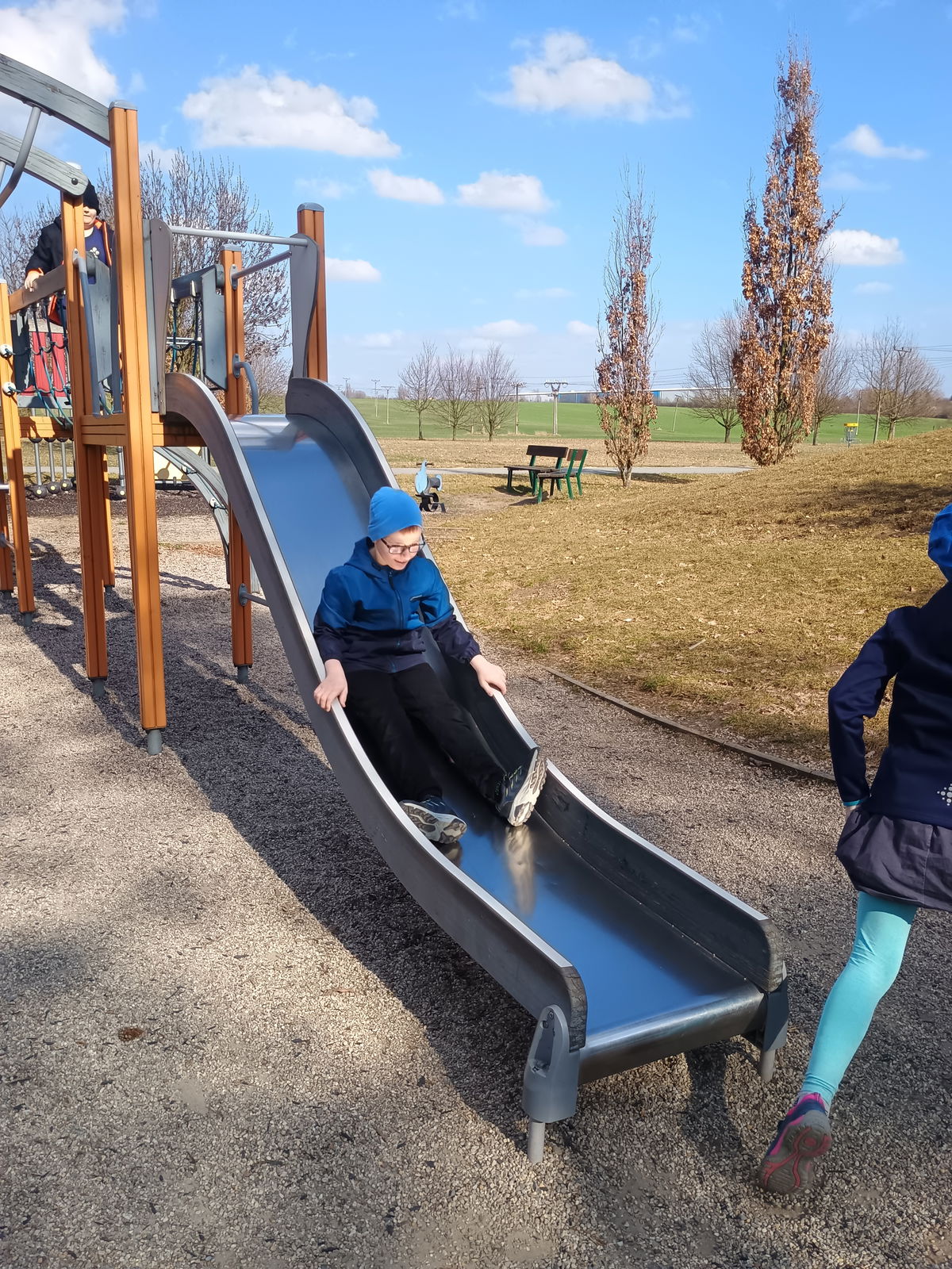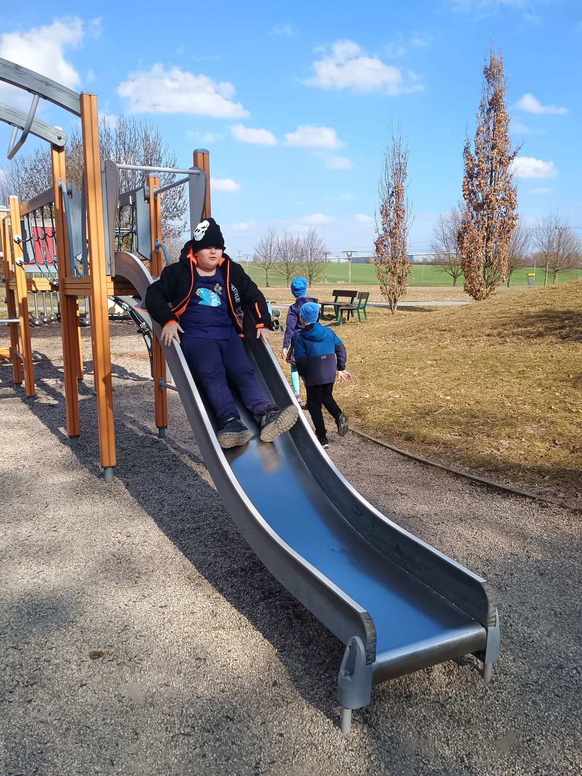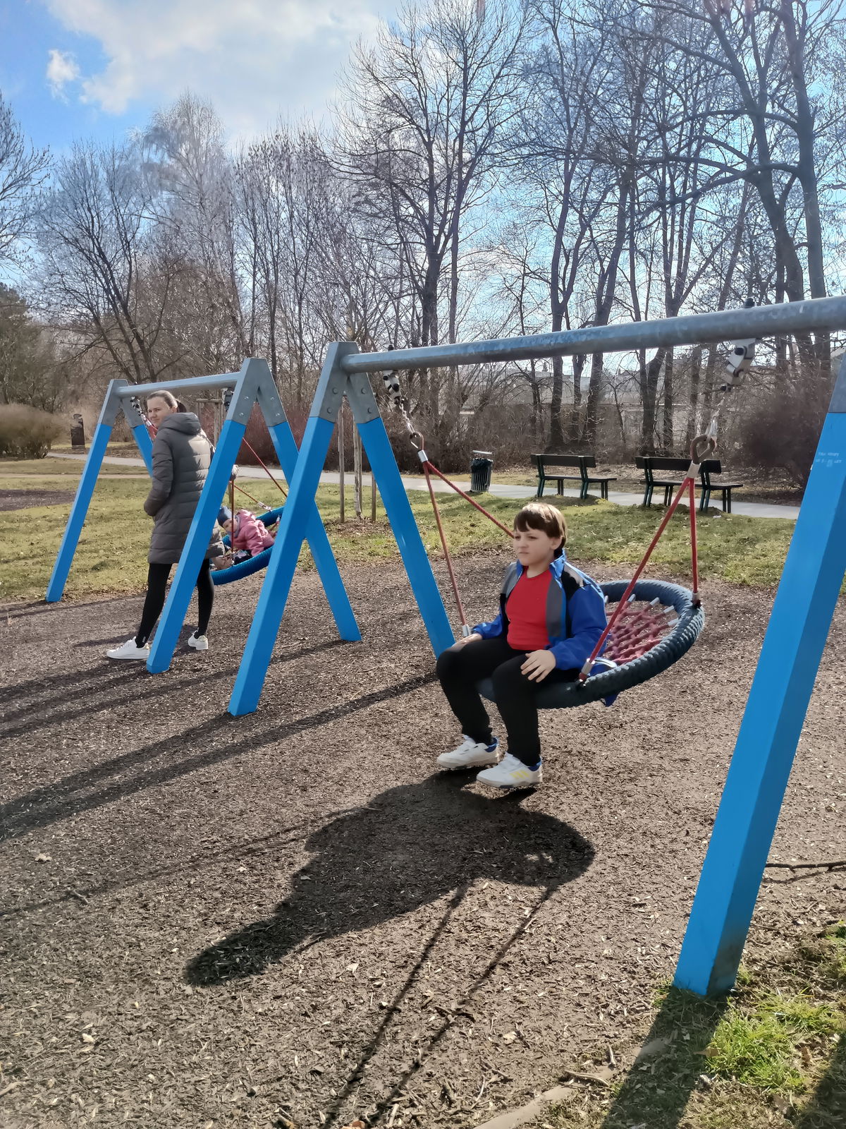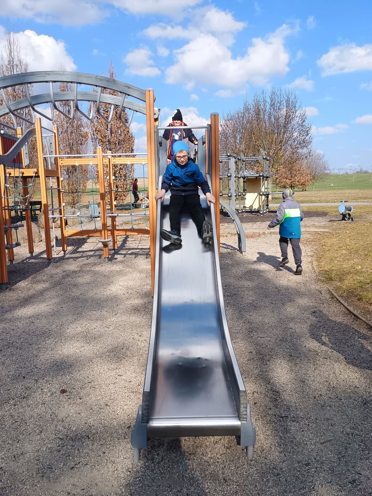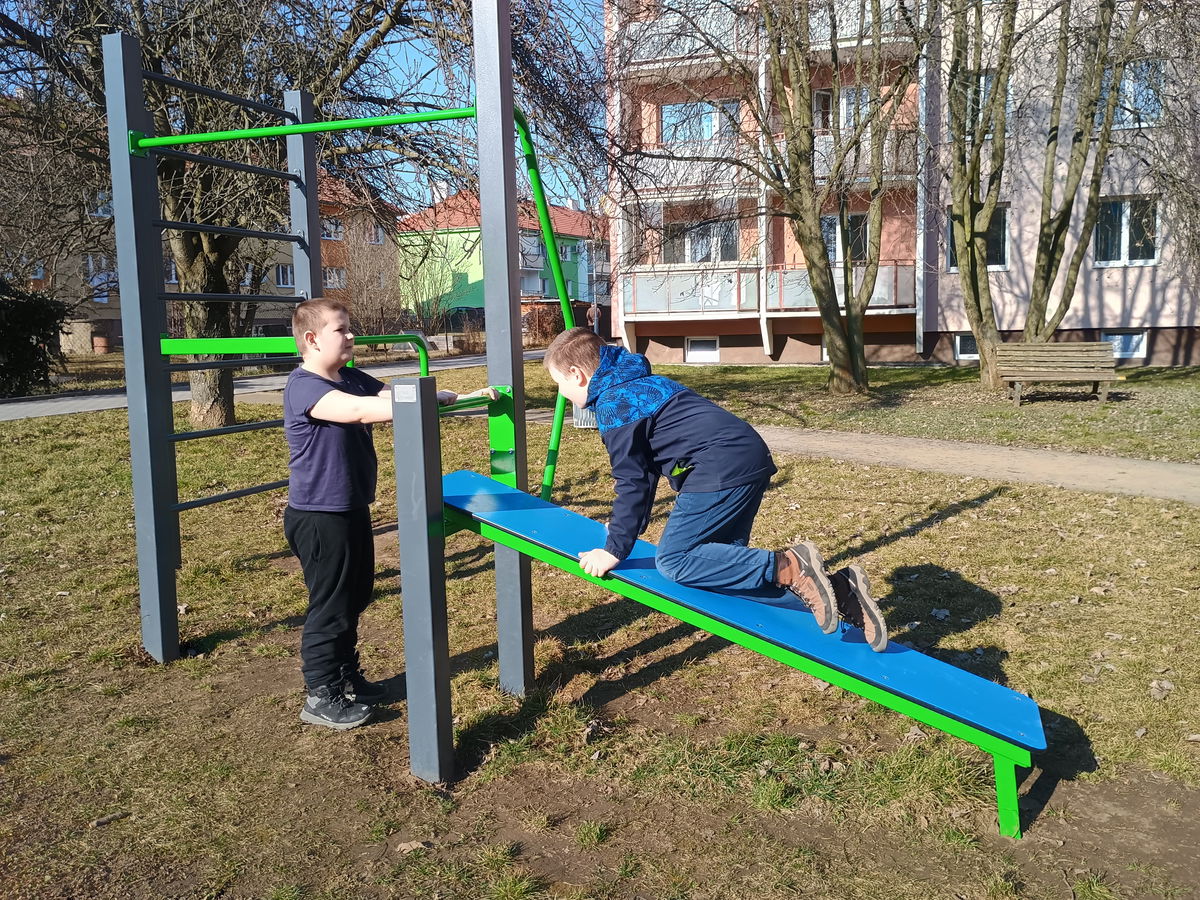 V březnu jsme za hezkého počasí trávili čas venku na hřištích. Také jsme si vyrobili záložku do knihy, protože březen je měsíc knihy.