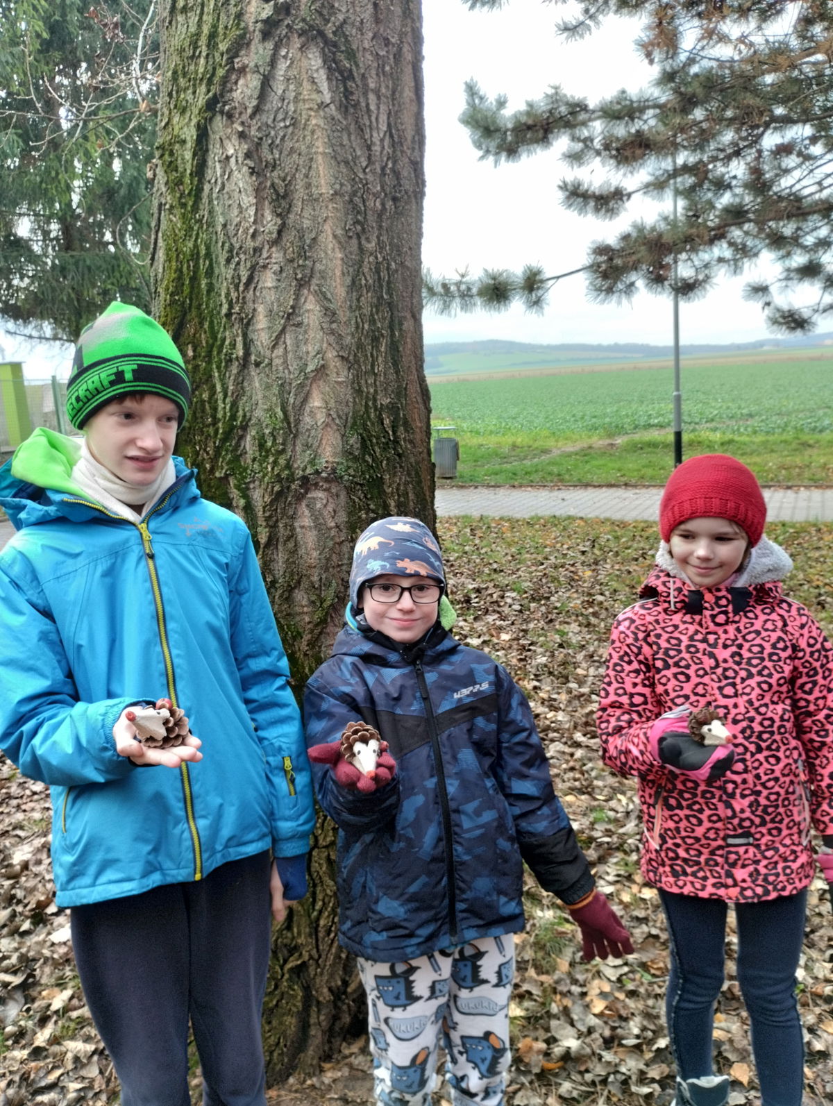V družinách jsme měli v týdnu od 24. 11. akci pelíšky pro zvířátka. V družině III. jsme vyráběli ježky a lišky. Ježkům jsme pak udělali pelíšek venku pod stromem, zatímco lišky jsou s námi vzhůru v družině :-)