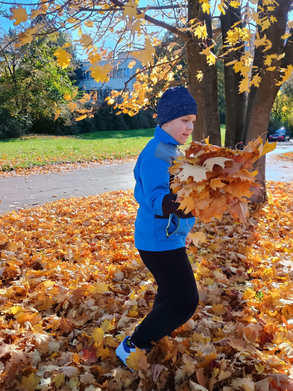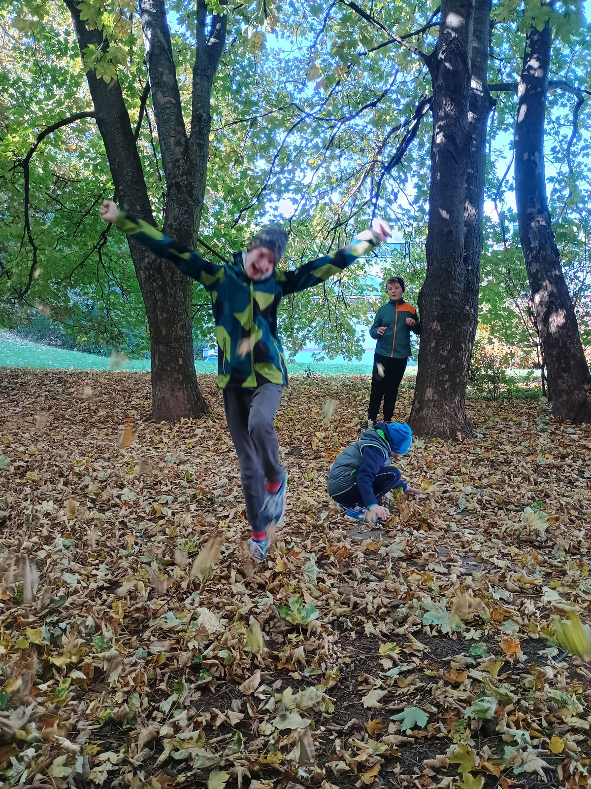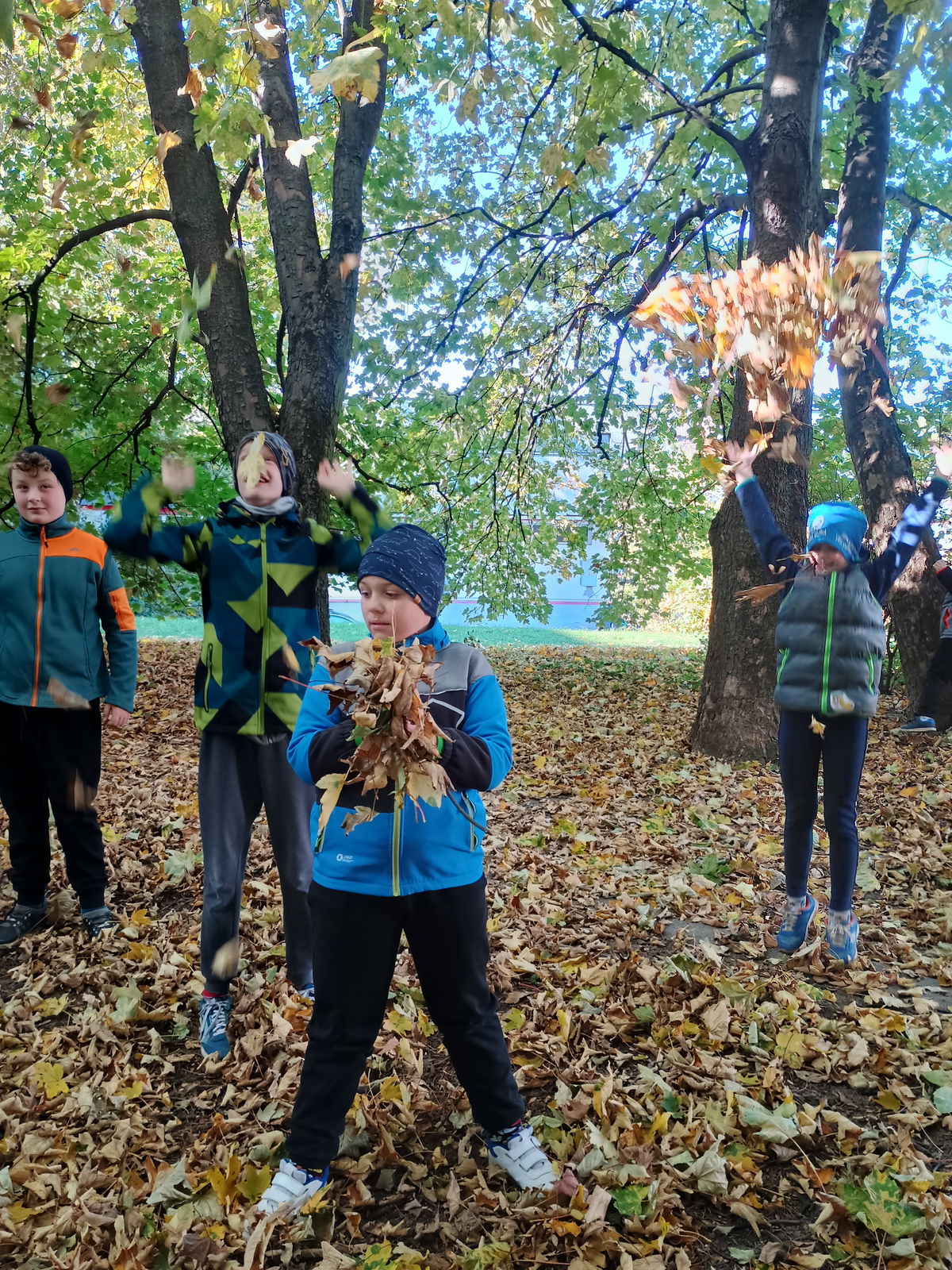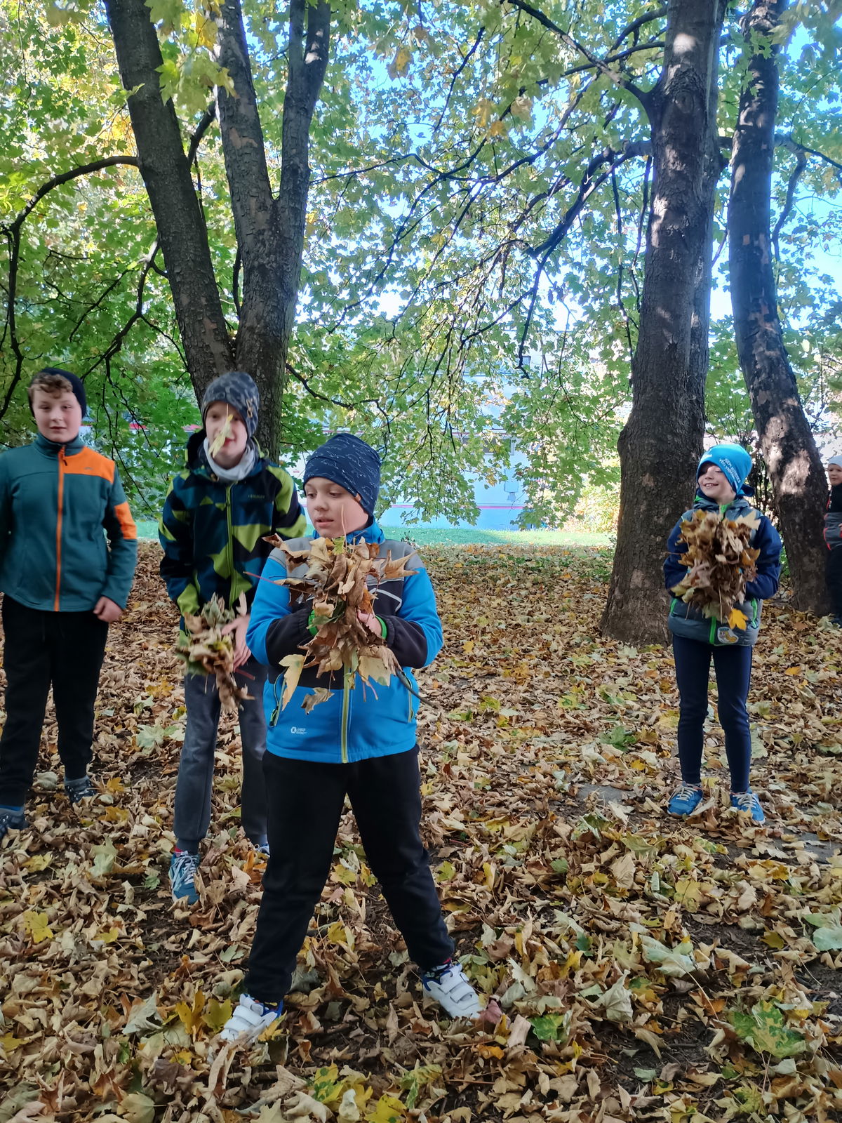 V říjnu jsme si užili pěkného počasí a protože už začaly padat listy ze stromů, pěkně jsme si s nimi pohráli.