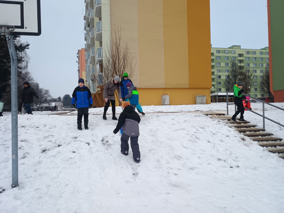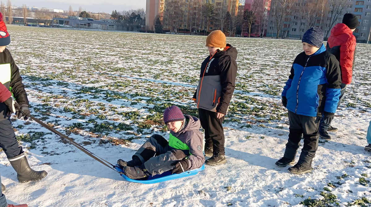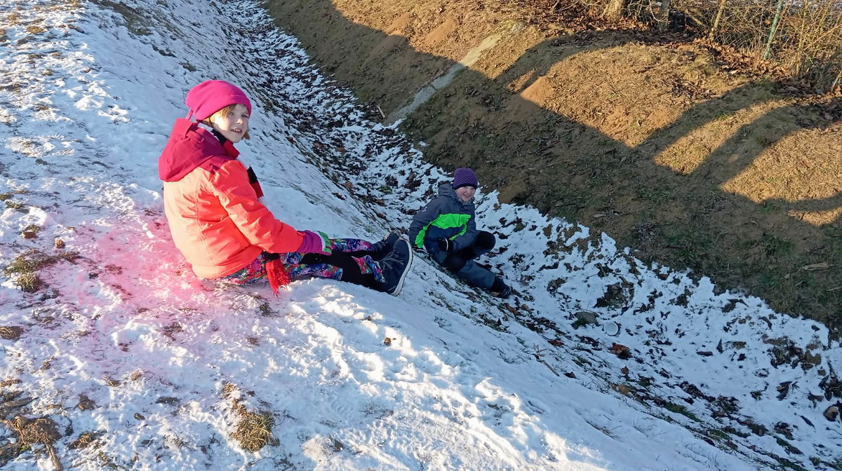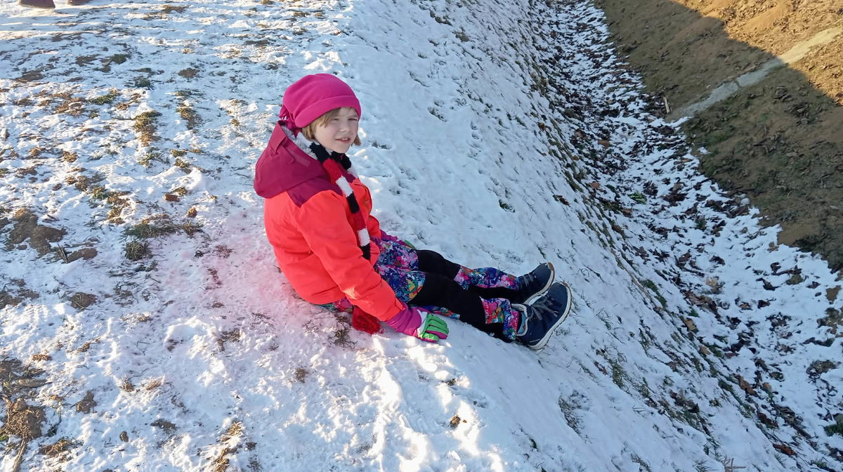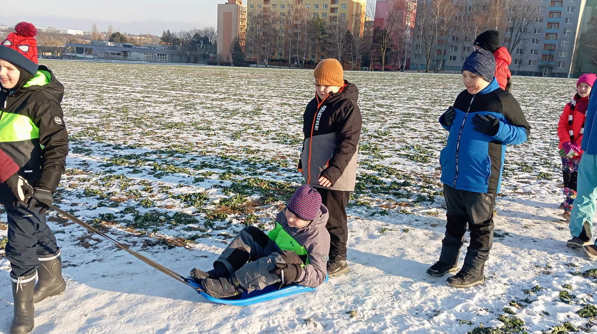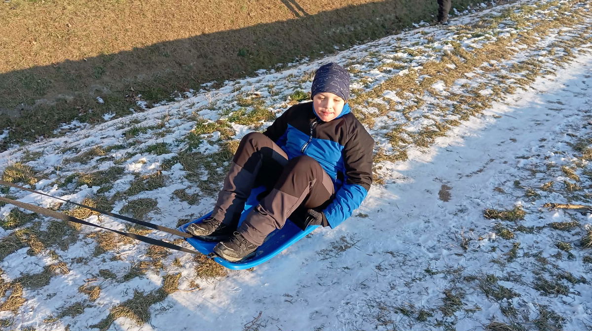 V lednu jsme využili toho, že trochu nasněžilo a svezli jsme se na bobech a pohráli si ve sněhu. Vyzkoušeli jsme různá místa a různé kopečky. Děti si to náramně užily.