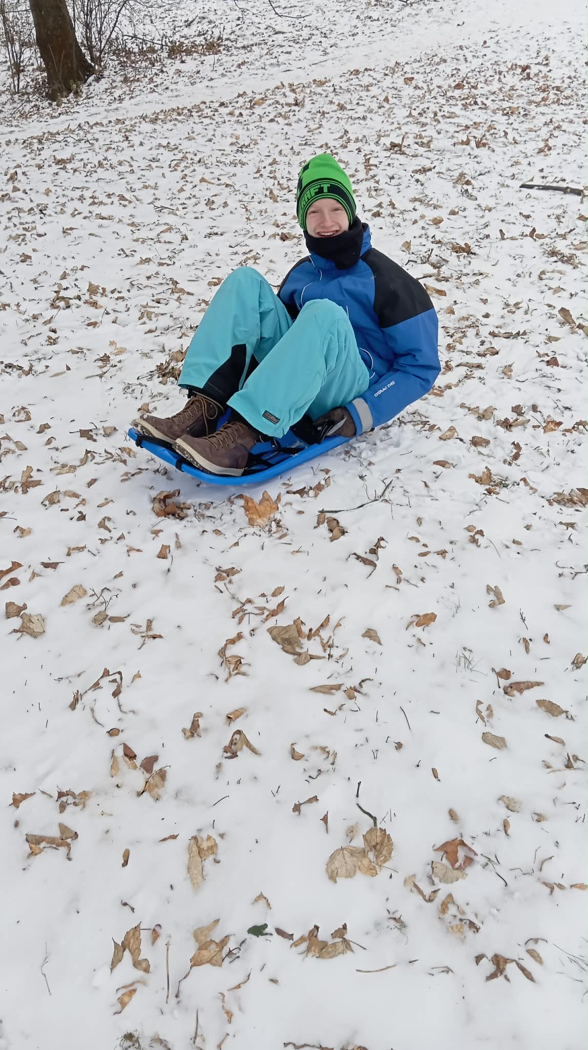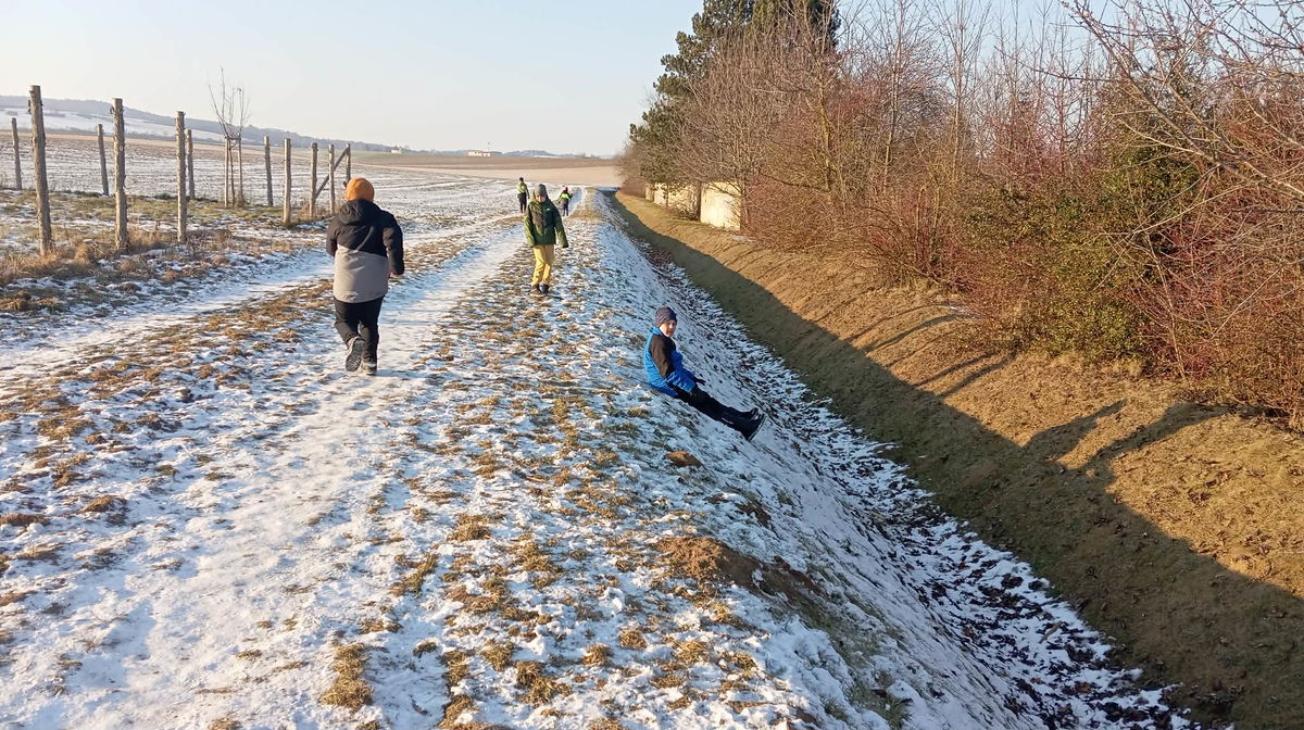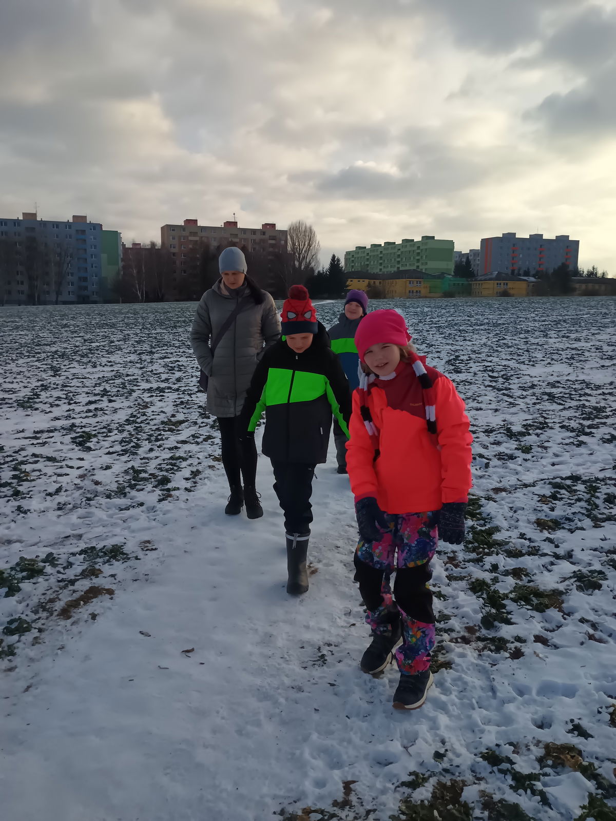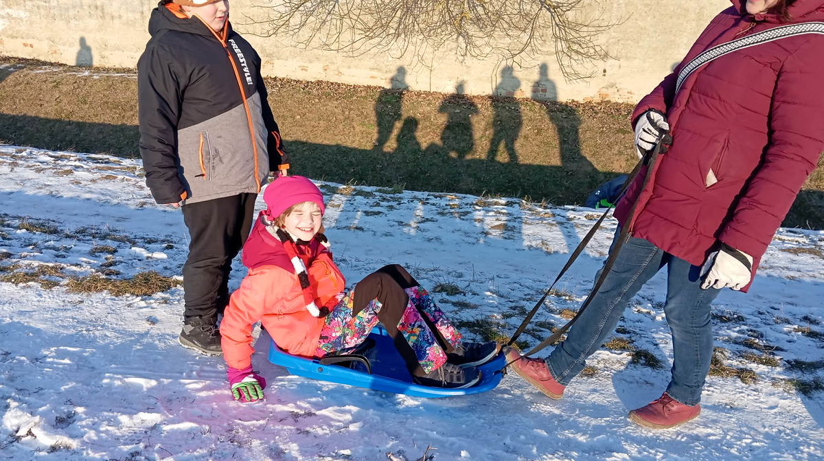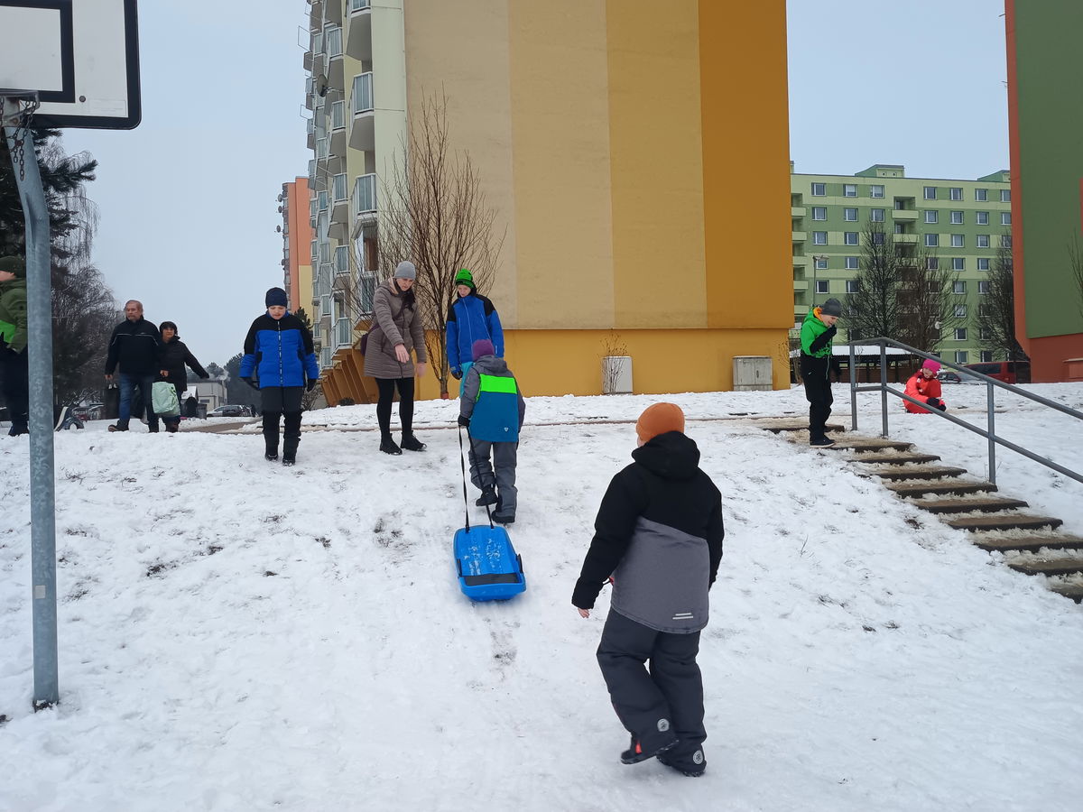 V lednu jsme využili toho, že trochu nasněžilo a svezli jsme se na bobech a pohráli si ve sněhu. Vyzkoušeli jsme různá místa a různé kopečky. Děti si to náramně užily.