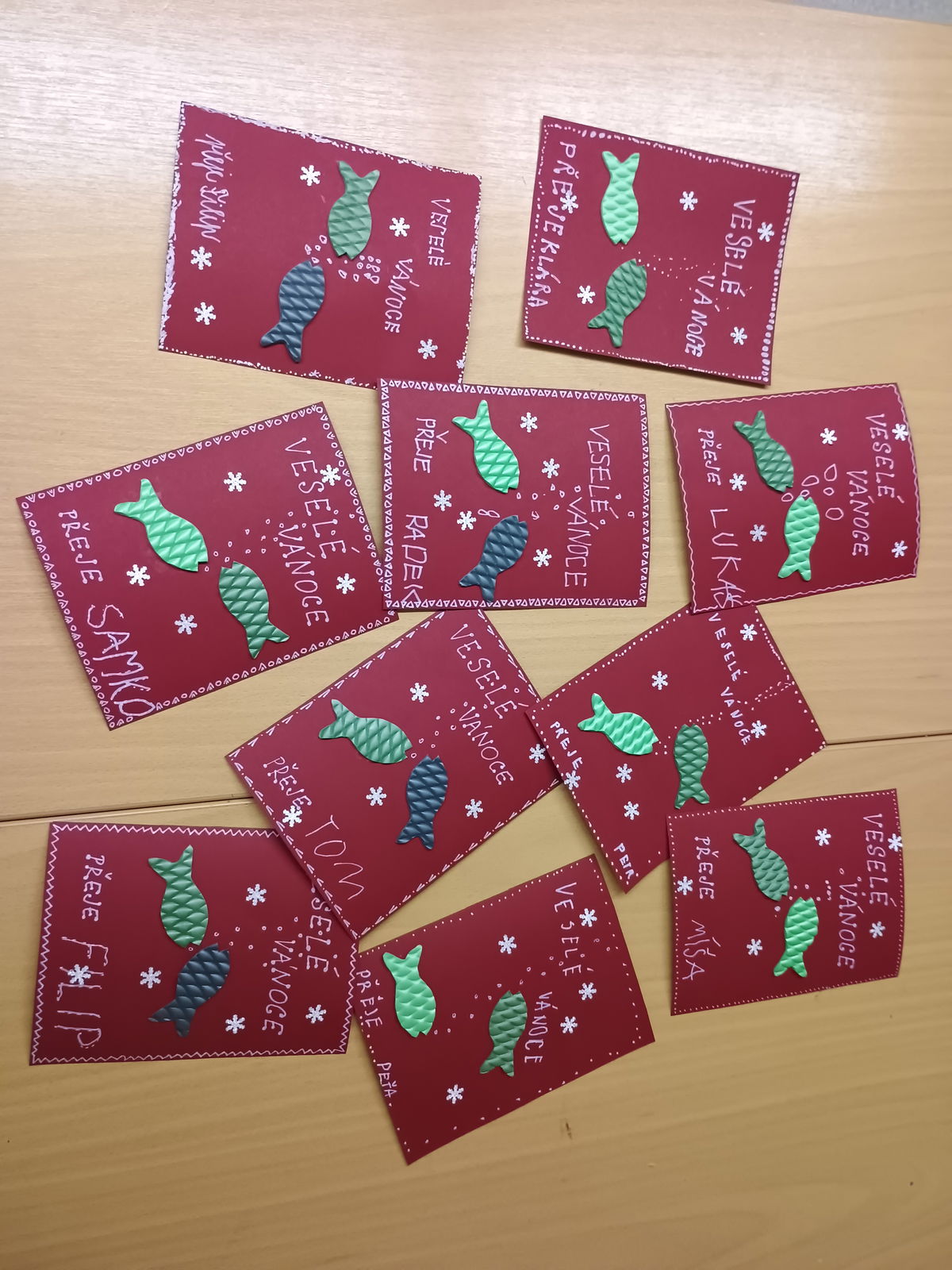 V posledním týdnu školy před Vánocemi jsme v družině tvořili kapříky, Vánoční přáníčka, rozkrojená jablíčka a také si děti pohrály s novými hračkami. Nechybělo ani vánoční posezení s cukrovím.