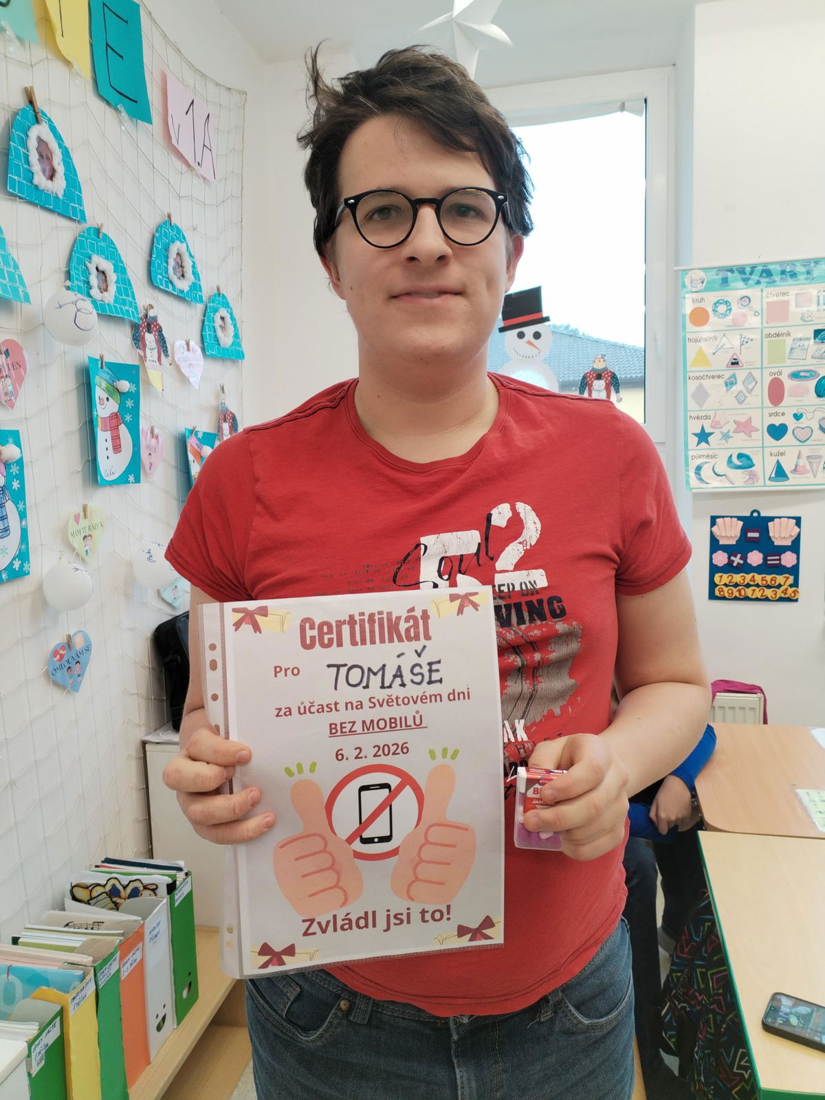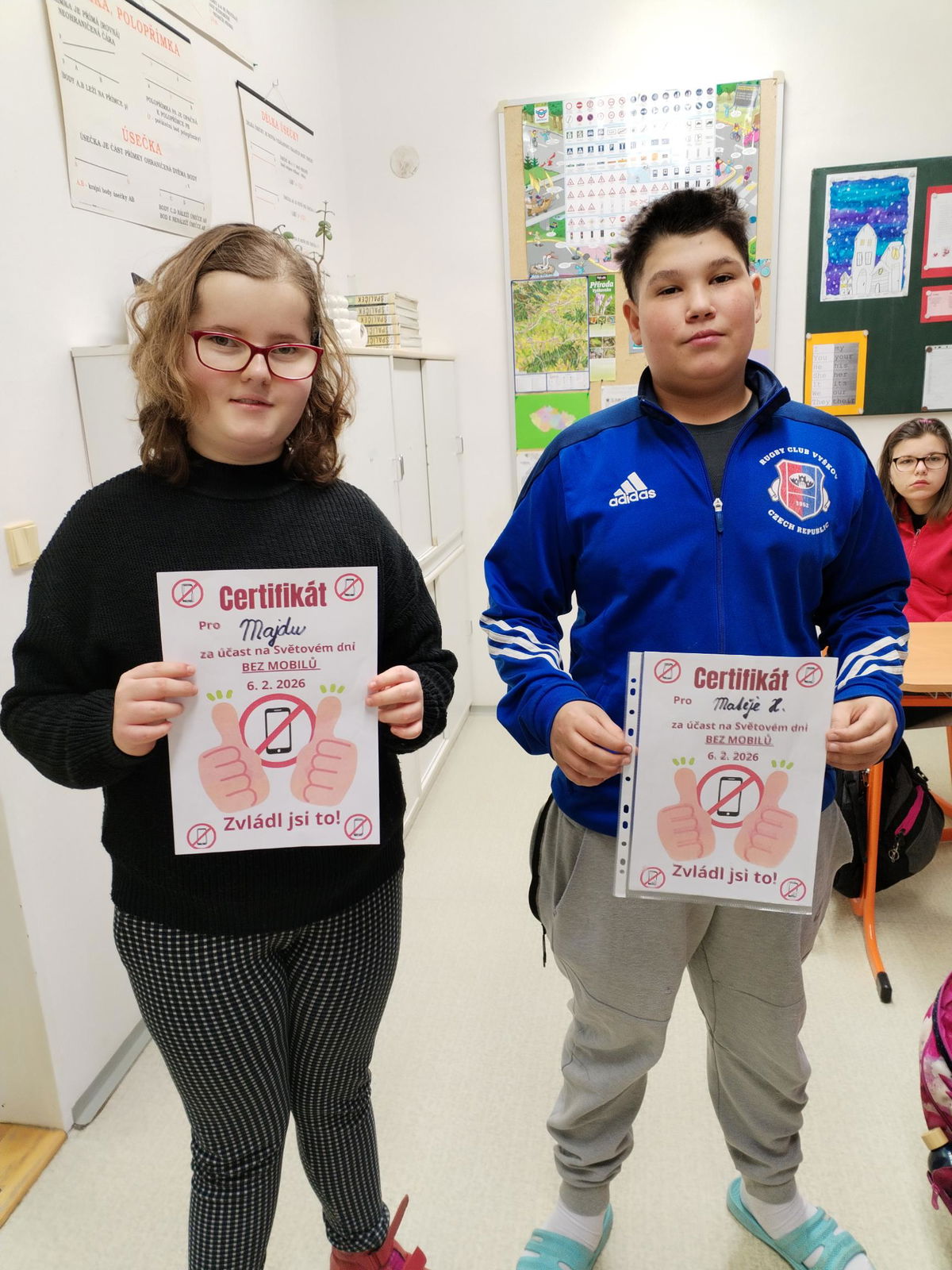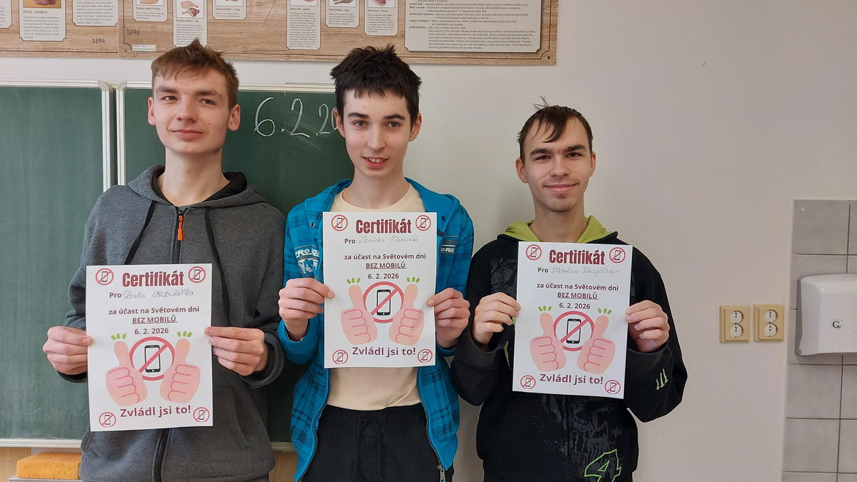 Dne 6. února se na naší škole uskutečnil 2. ročník akce s názvem „Den bez mobilu“, jejímž cílem bylo připomenout si, jak důležité je občas odložit mobilní telefon a věnovat se skutečnému světu kolem nás. Do této iniciativy se zapojilo celkem 19 žáků – 12 ze SŠ a 7 ze ZŠ.