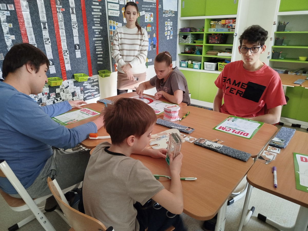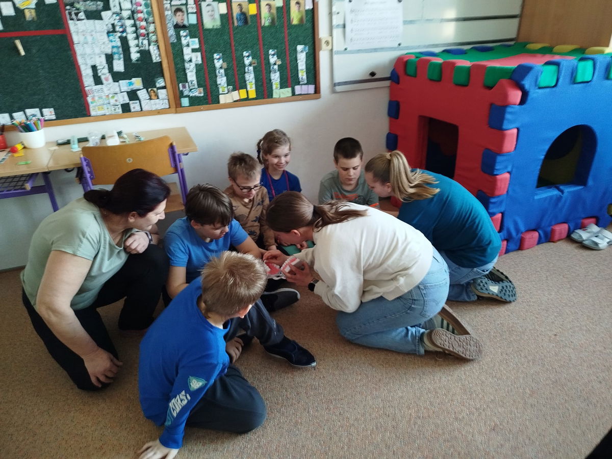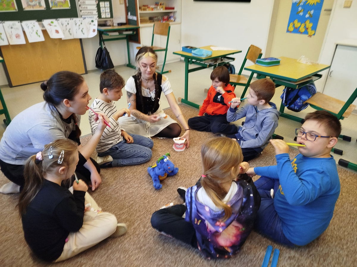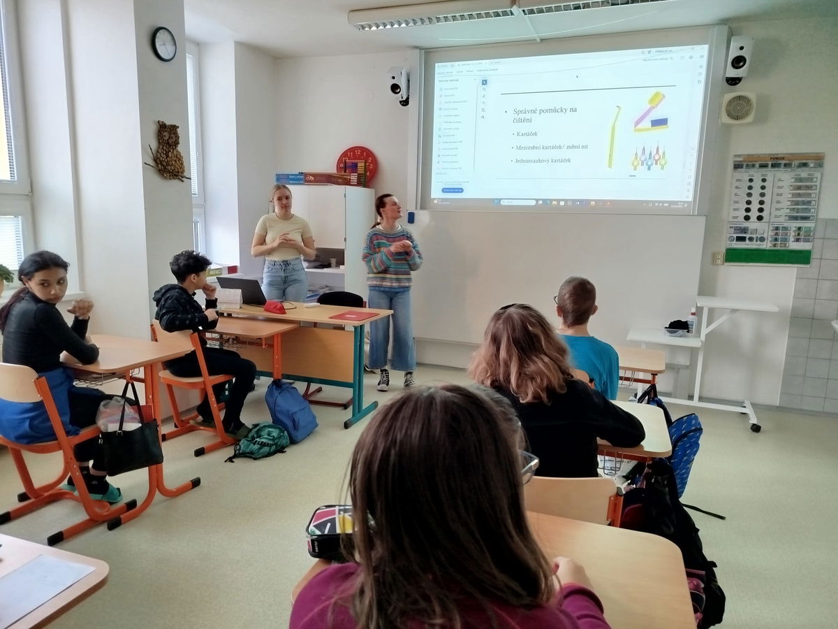 Dne 11. března se v rámci projektového dne „Den zdraví“ uskutečnila na ZŠ a ZŠS přednáška a praktická ukázka zaměřená na dentální hygienu. Program byl veden studentkami oboru dentální hygiena z VOŠ Charbulova v Brně.nStudentky dětem srozumitelnou a zábavnou formou představily zásady správné péče o zuby a ústní dutinu. Žáci se dozvěděli, proč je důležité si zuby pravidelně čistit, jak správně používat zubní kartáček nebo jaké potraviny mohou zubům prospívat a naopak uškodit.