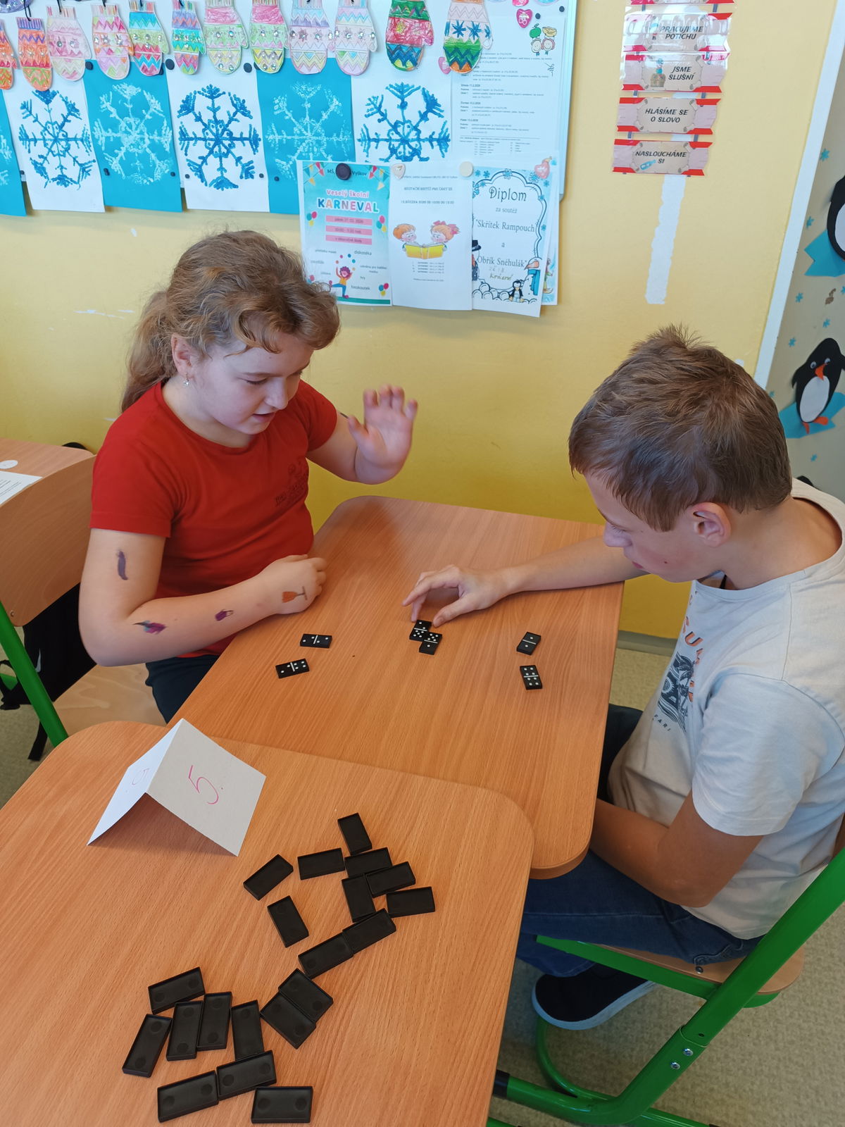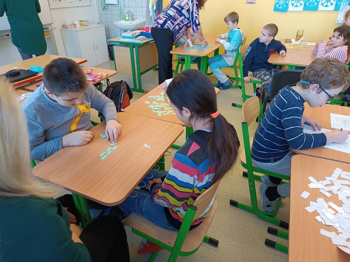 V pátek 13.února se uskutečnilo školní kolo hry Domino pro žáky 1.st. Děti hrály rády a s nadšením. Vládla kamarádská, vstřícná atmosféra po celou dobu hry. Na všechny zúčastněné čekala malá sladká odměna, pro vítěze byl připravený diplom s medailí.
