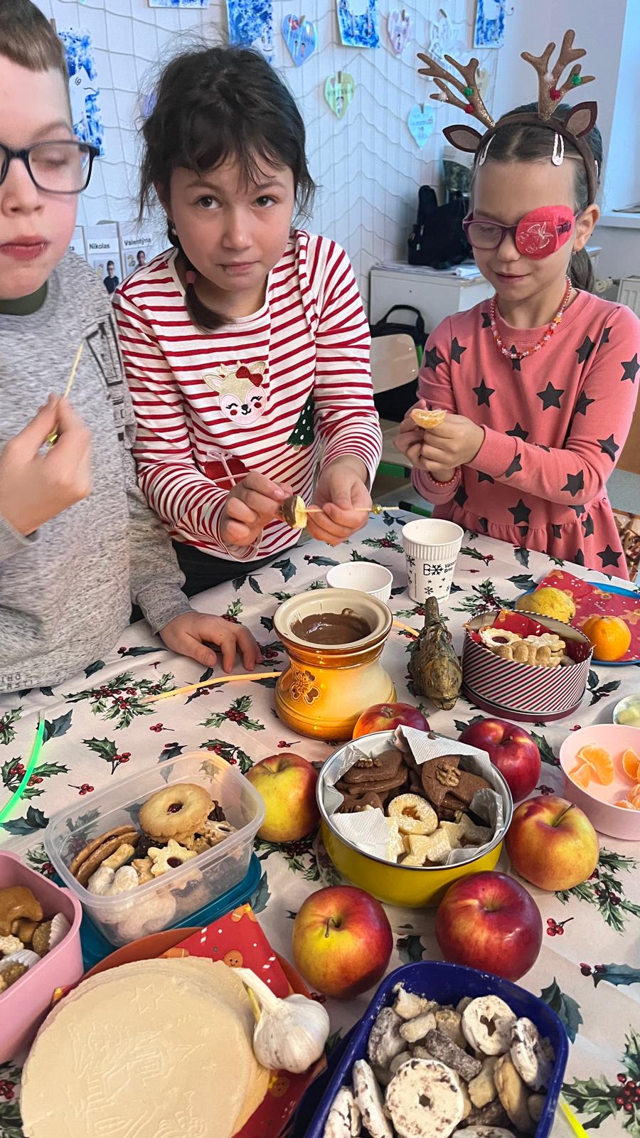 Žáci I.A si poslední měsíc v roce krásně užili. Nechyběl Mikuláš, příprava vánočního punče ani pečení perníčků. Děti potěšily rodiče svým vystoupením na vánoční besídce a s nadšením se zapojily do vánočních dílniček. Společná výprava za kapříky spojená s návštěvou vánočních trhů a cukrárny na náměstí ve Vyškově byla pro žáky plná zážitků. Třídní besídka s ochutnávkou cukroví s připomenutím vánočních tradic a zvyků se stala příjemným zakončením adventního času❄️🎄🐟.
