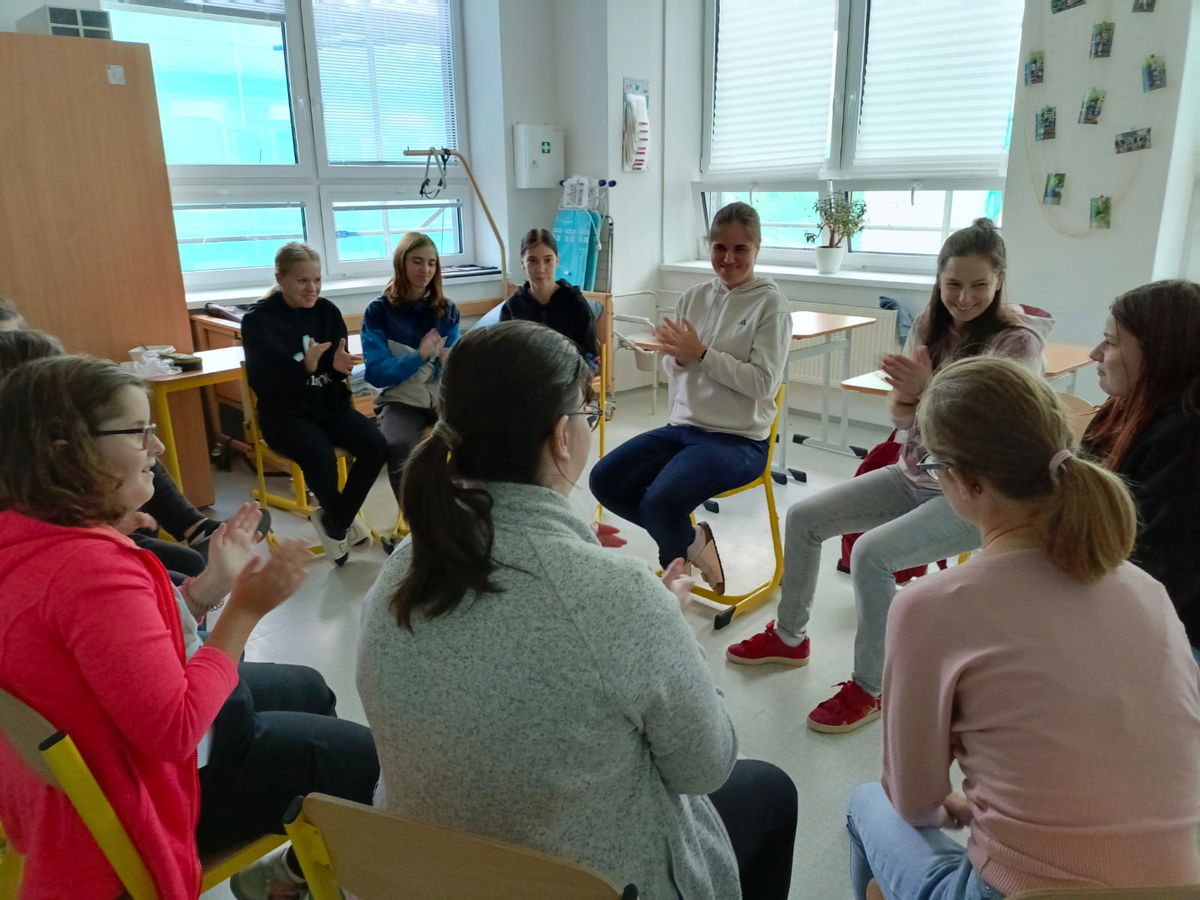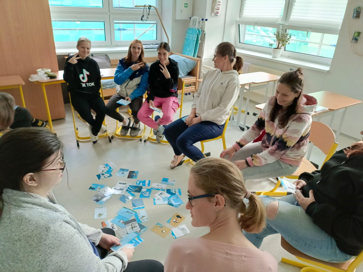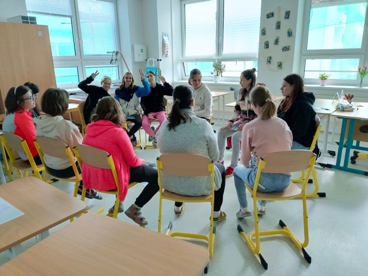 Přednáška nebyla pouze teoretická – žáci se aktivně zapojili do praktických činností, které je vedly k zamyšlení nad vlastním chováním. Vyzkoušeli si různé modelové situace a hledali vhodné reakce na nevhodné poznámky. Díky interaktivnímu pojetí se téma stalo pro mnohé přístupnější a lépe propojené s jejich osobními zkušenostmi.