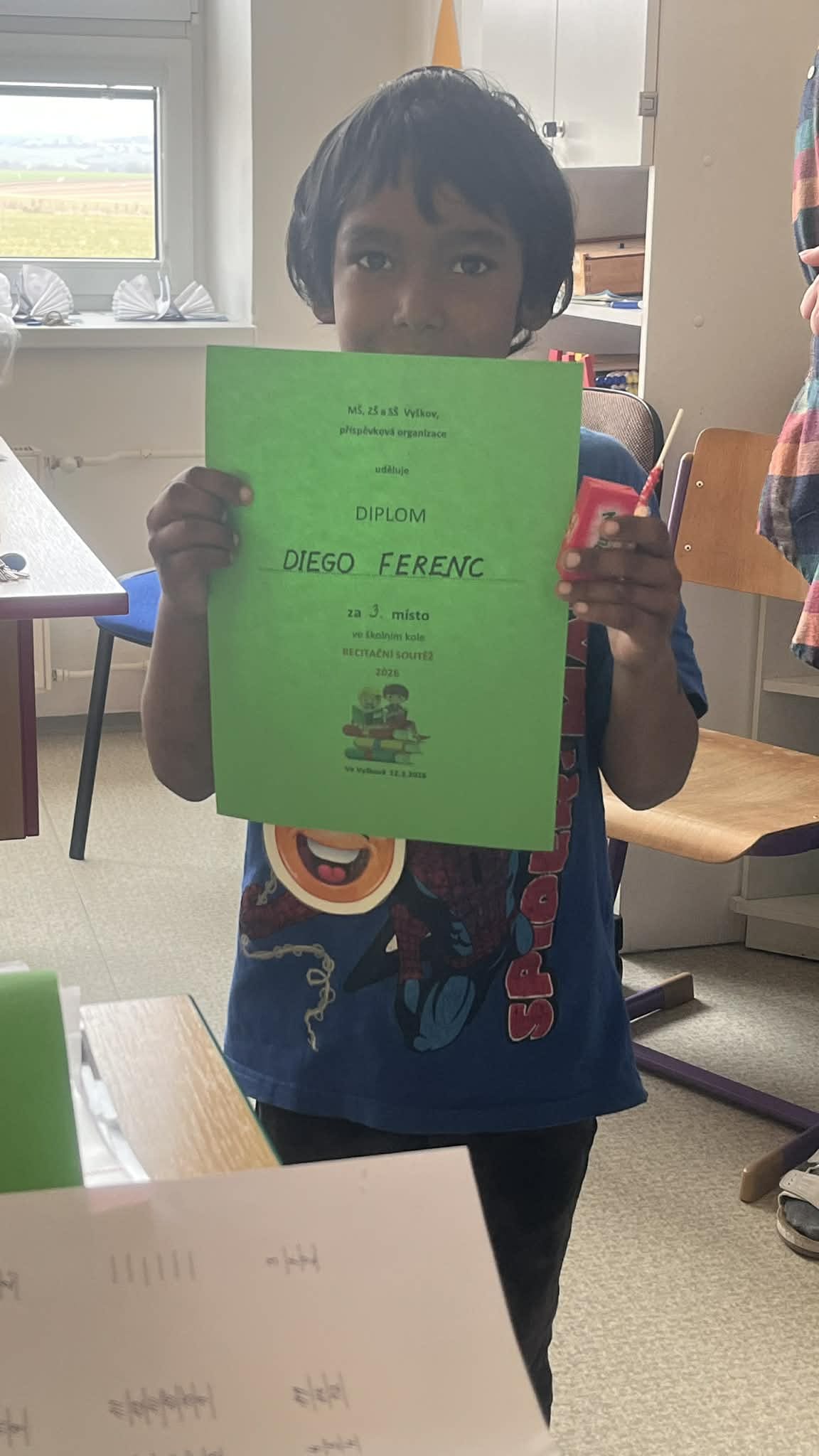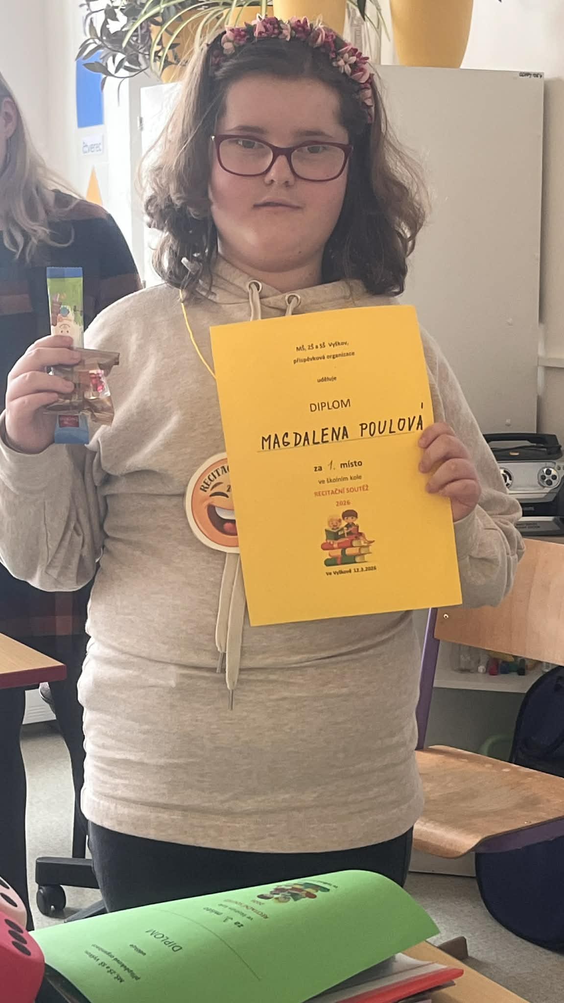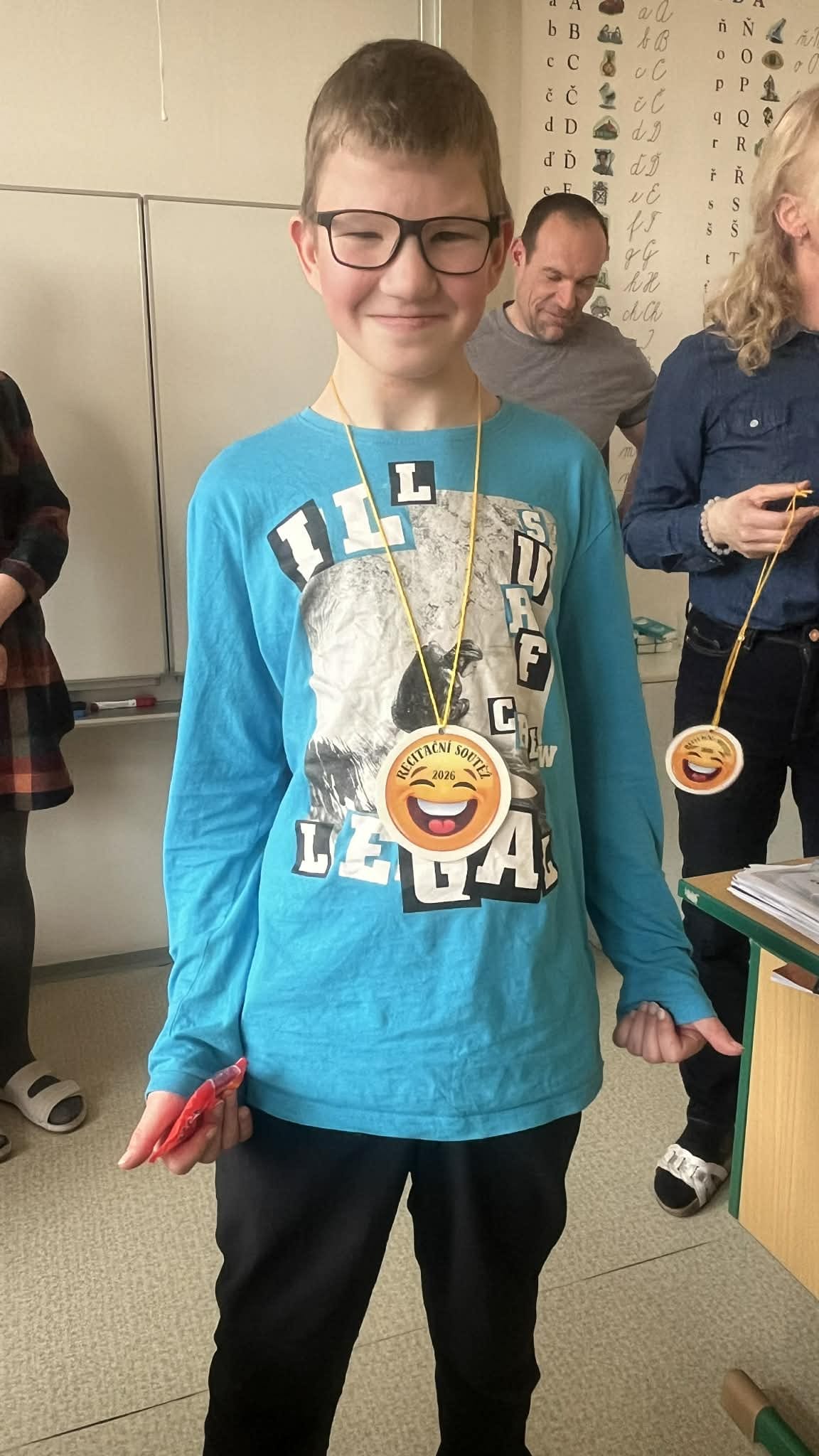 Žáci mile překvapili výběrem básní a recitačním projevem.  Za svou  snahu si odnesli sladké odměny, medaile a diplomy.