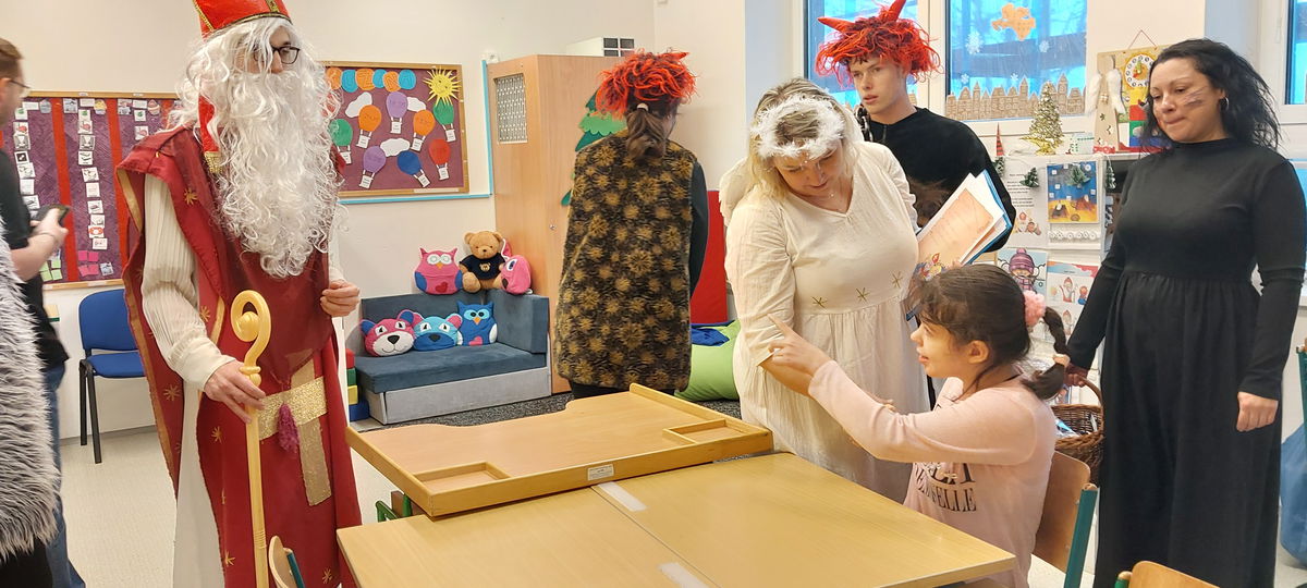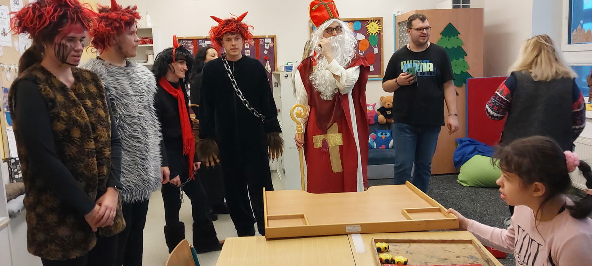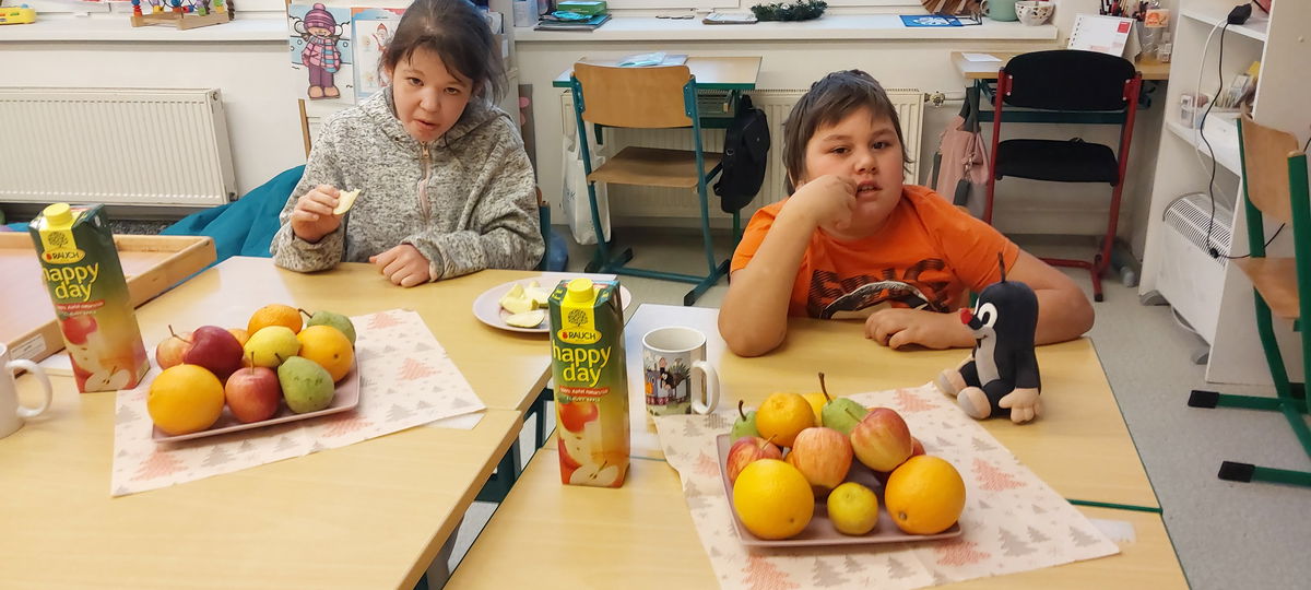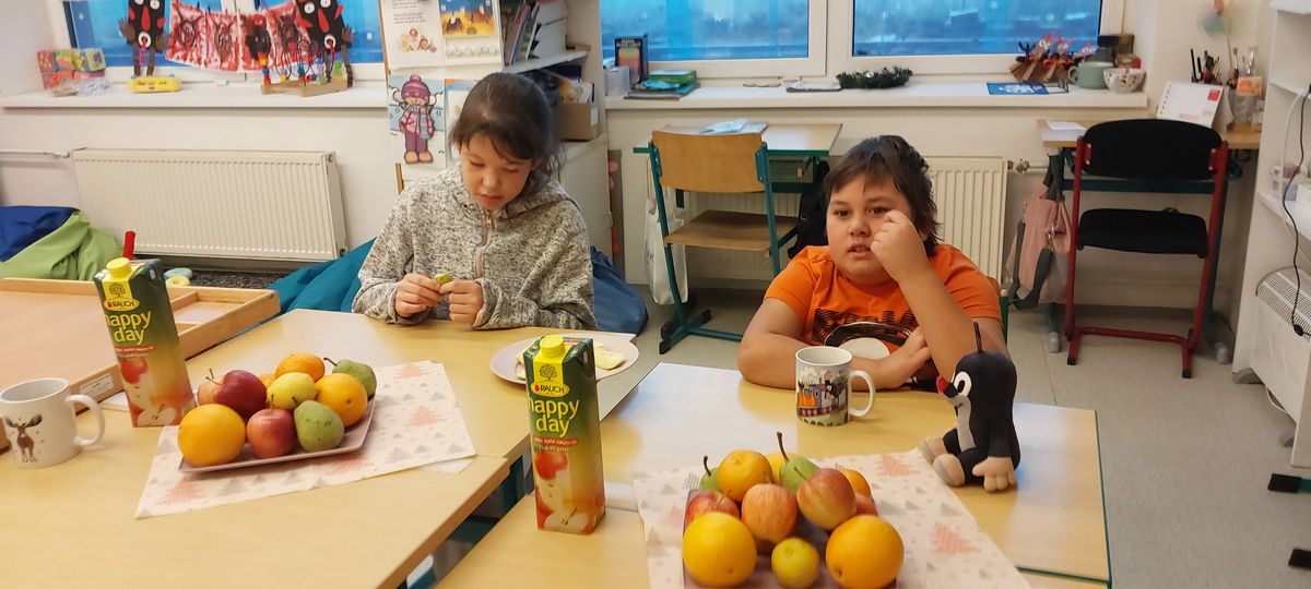 Na začátku prosince nastal čas, kdy tvoříme vánoční výzdobu ve třídě, děláme si ovocný punč a také nás navštívil Mikuláš.
