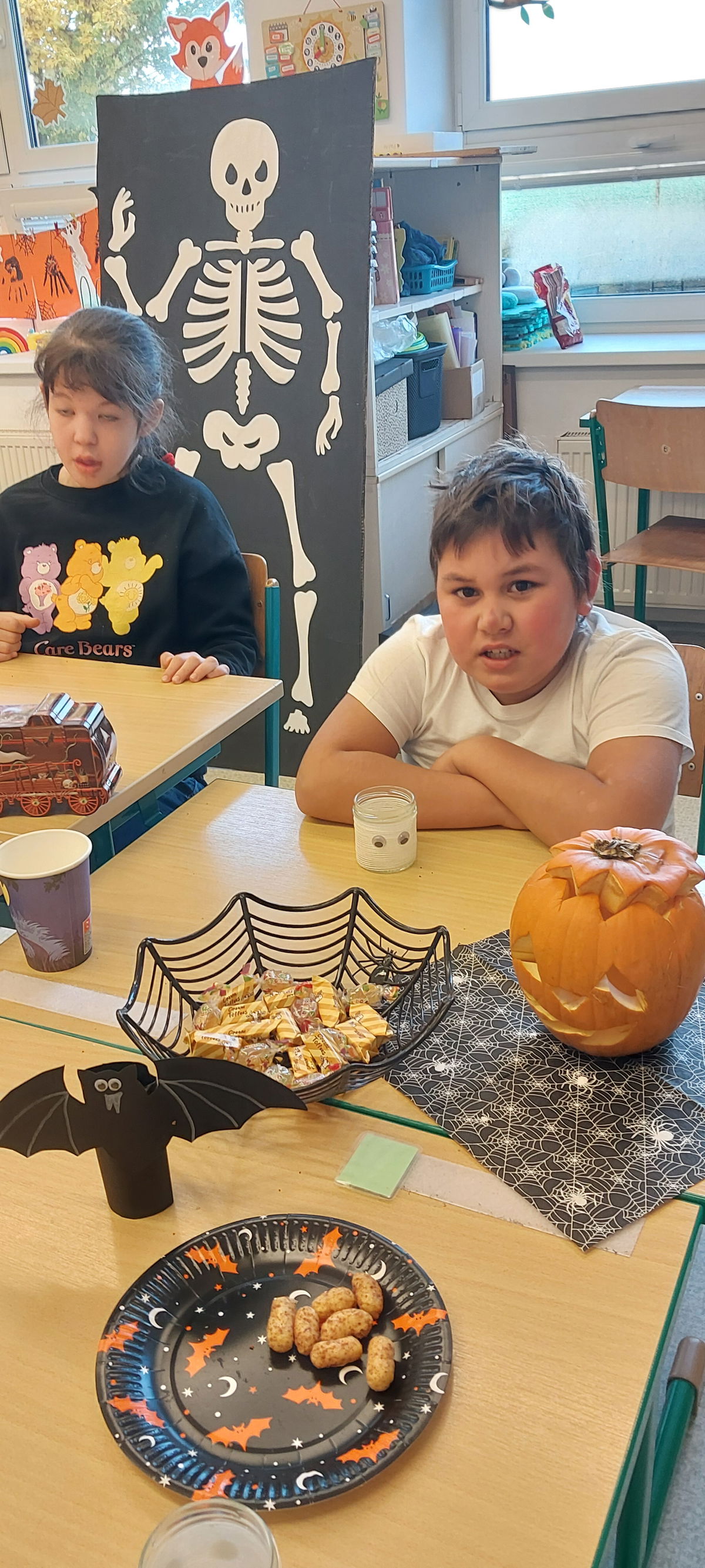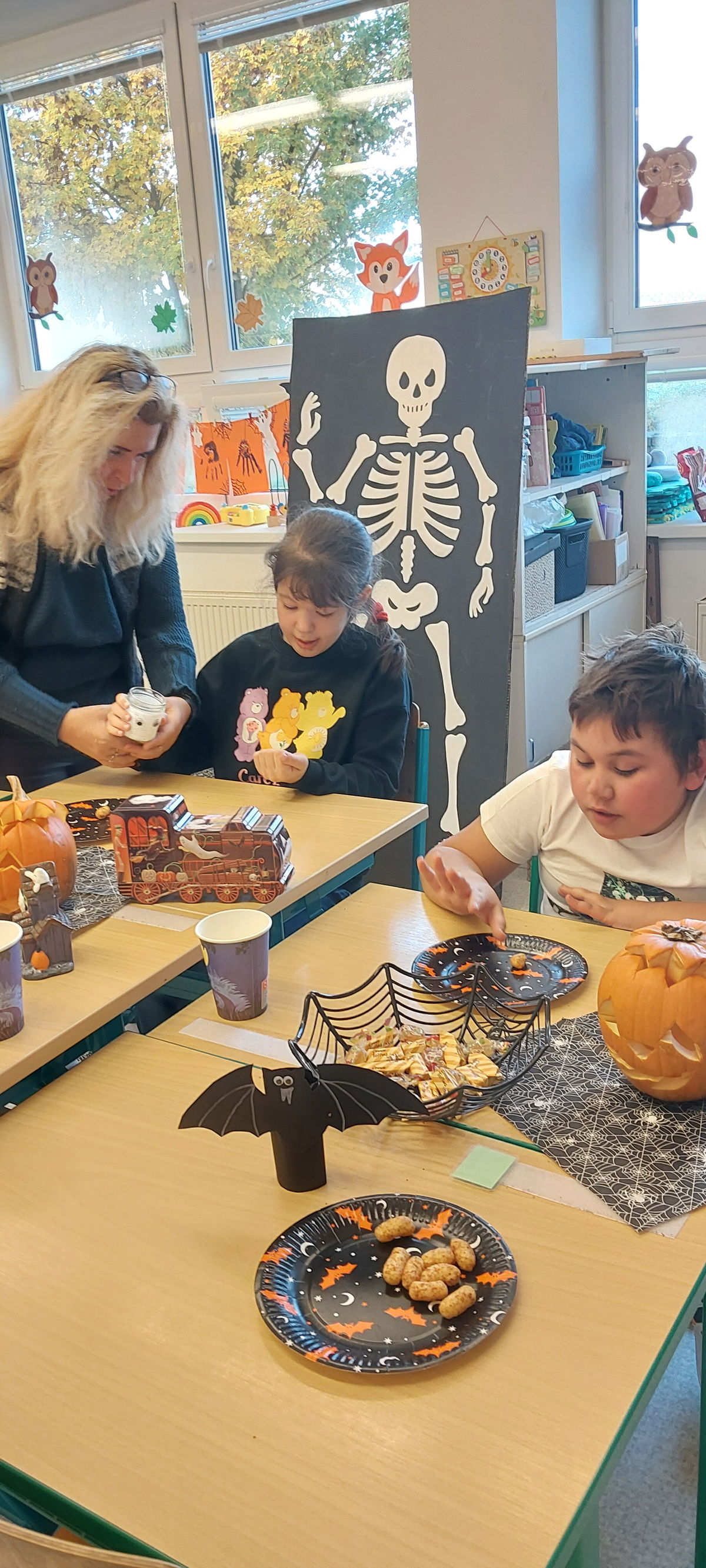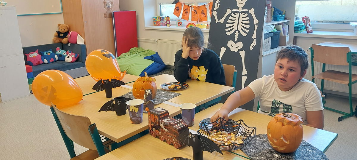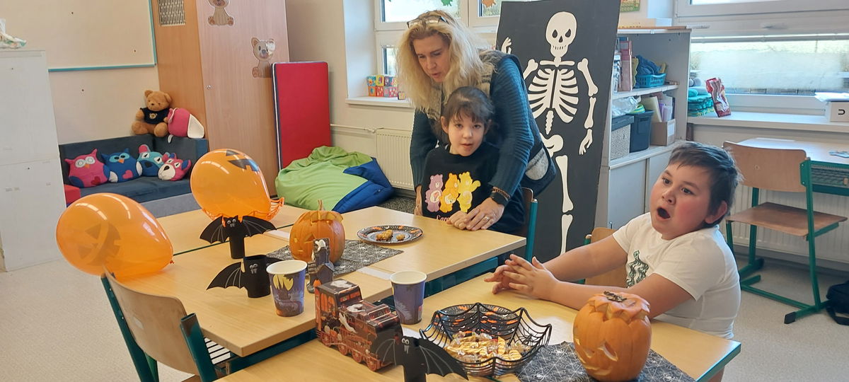 S dětmi jsme si vyzdobili třídu dýněmi a strašidly. Nachystali jsme dobroty a pěkně si to užili.