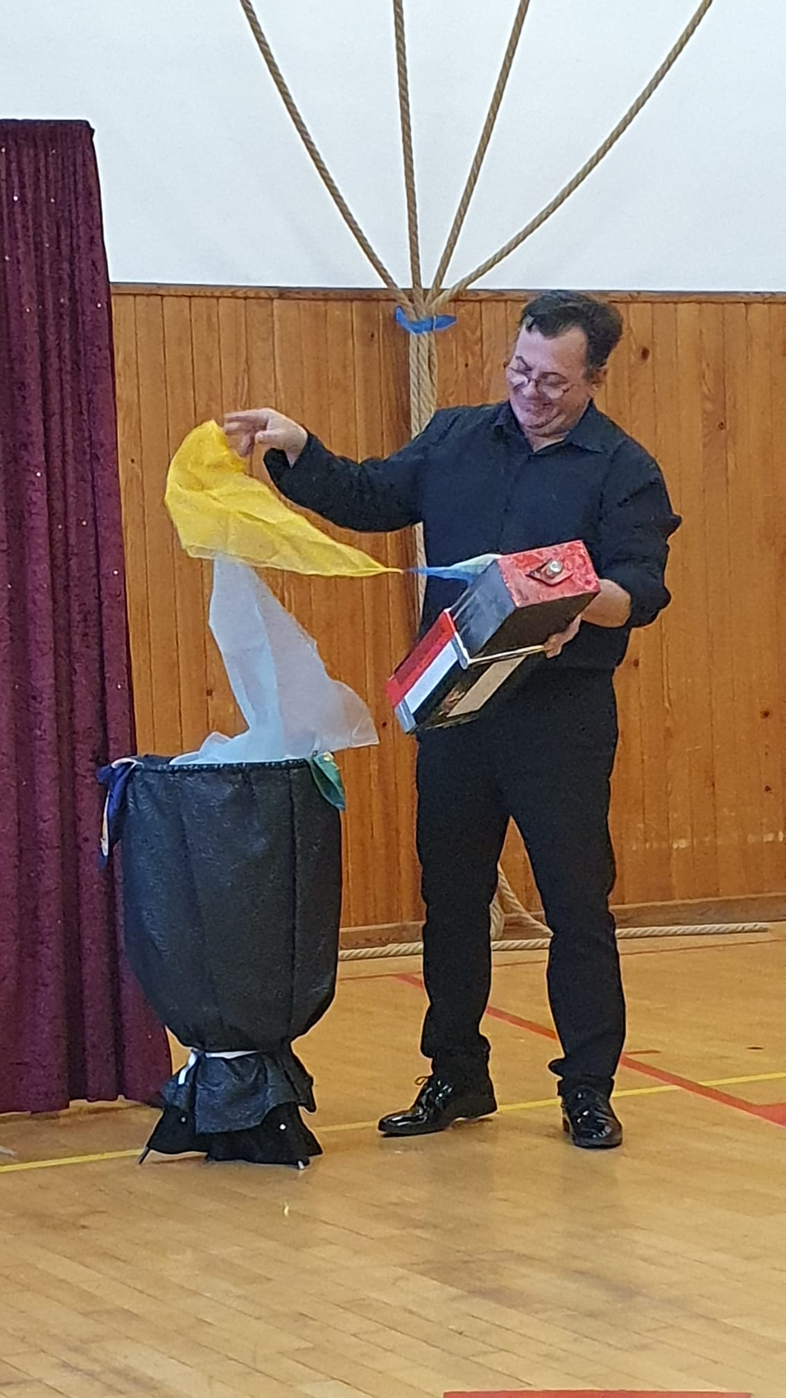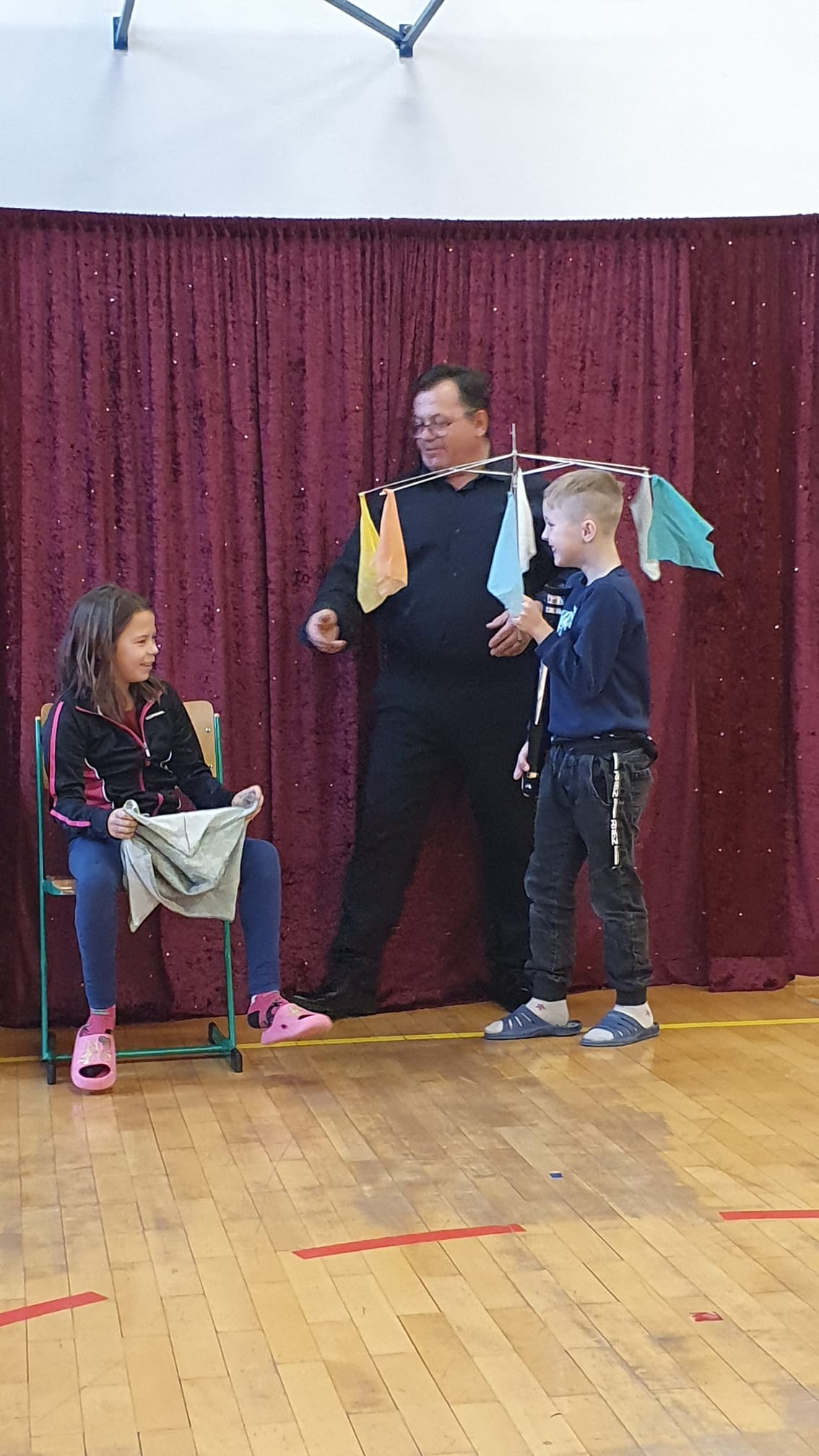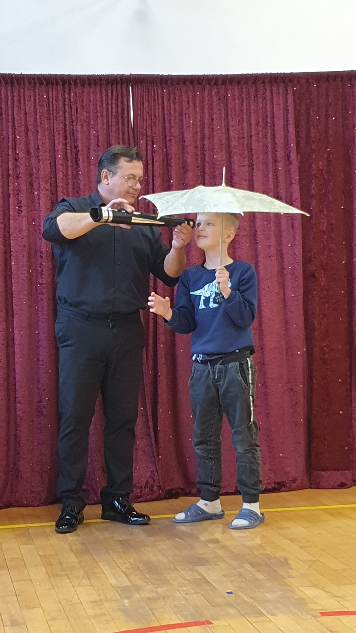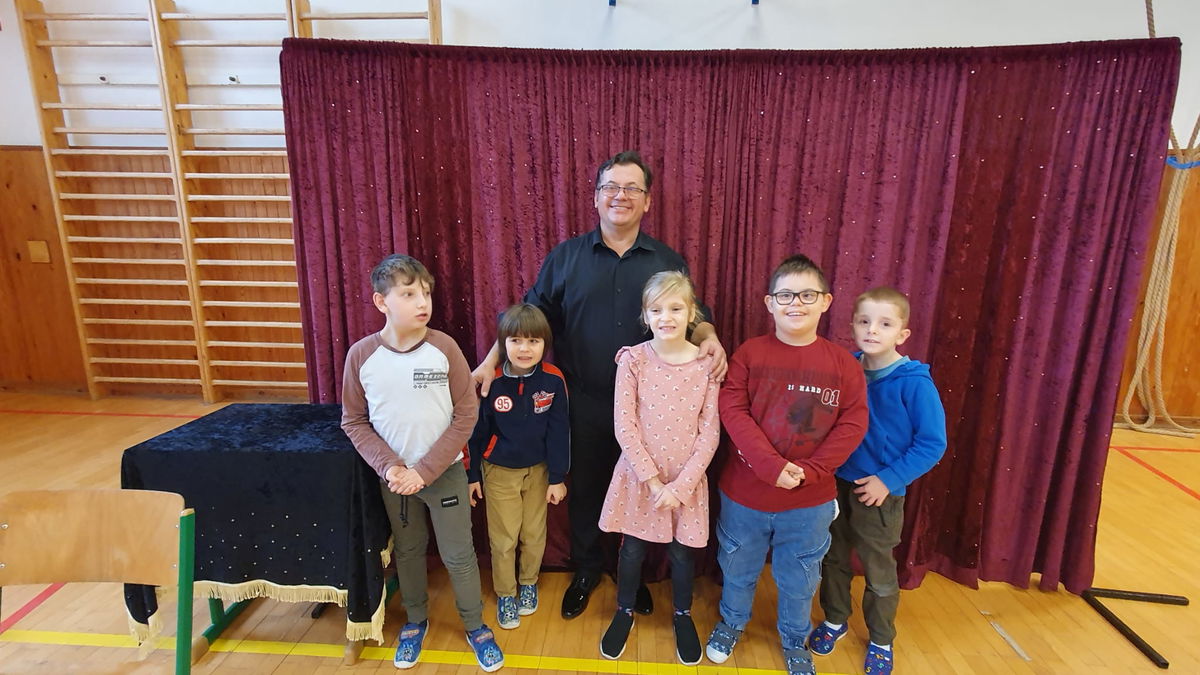 Celé vystoupení bylo plné smíchu, překvapení a napětí. Na chvíli jsme zapomněli na sešity a tužky a ocitli se v říši, kde je možné všechno. Naši malí kouzelníci odcházeli nadšení, s úsměvy od ucha k uchu a hlavou plnou kouzelných zážitků.