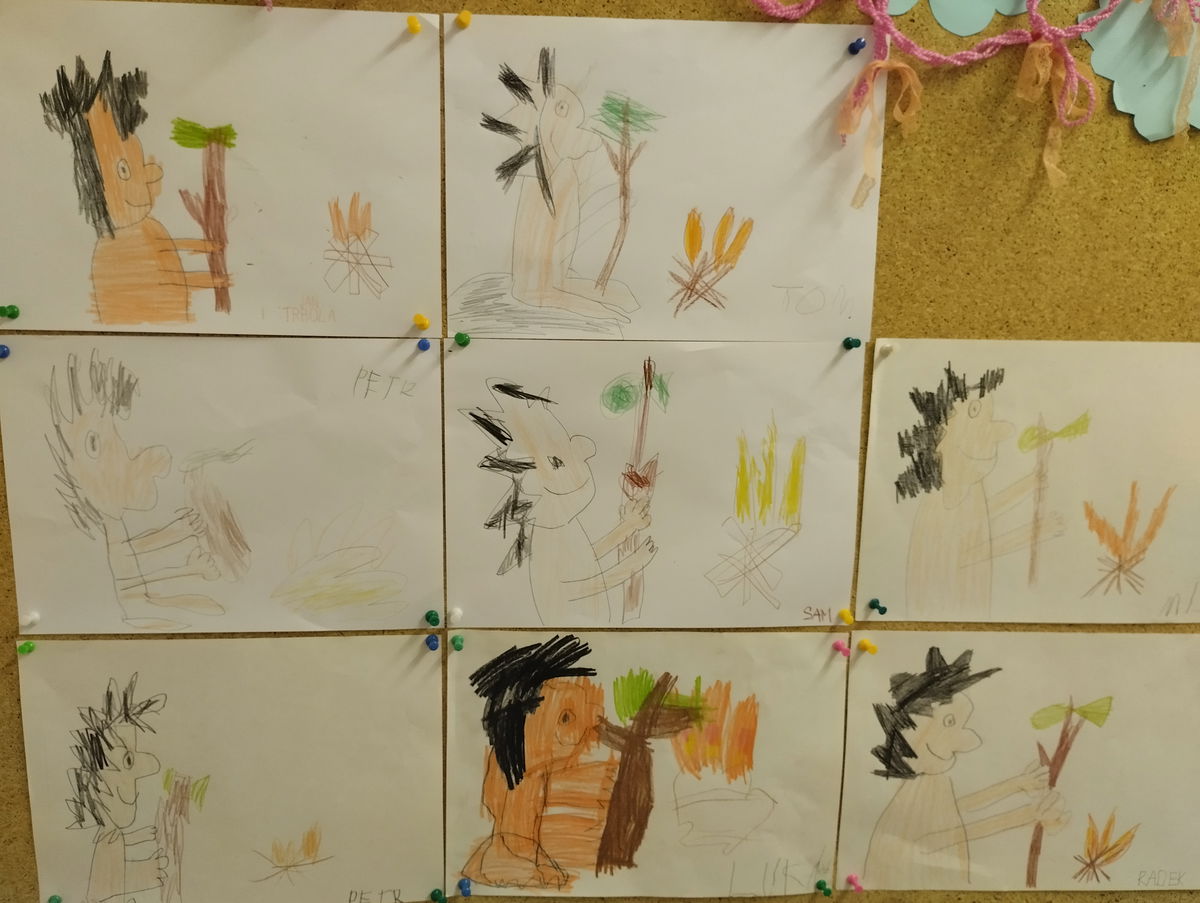 2. Čtení O človíčkovi- řízená kresba Jak si rozdělal oheň