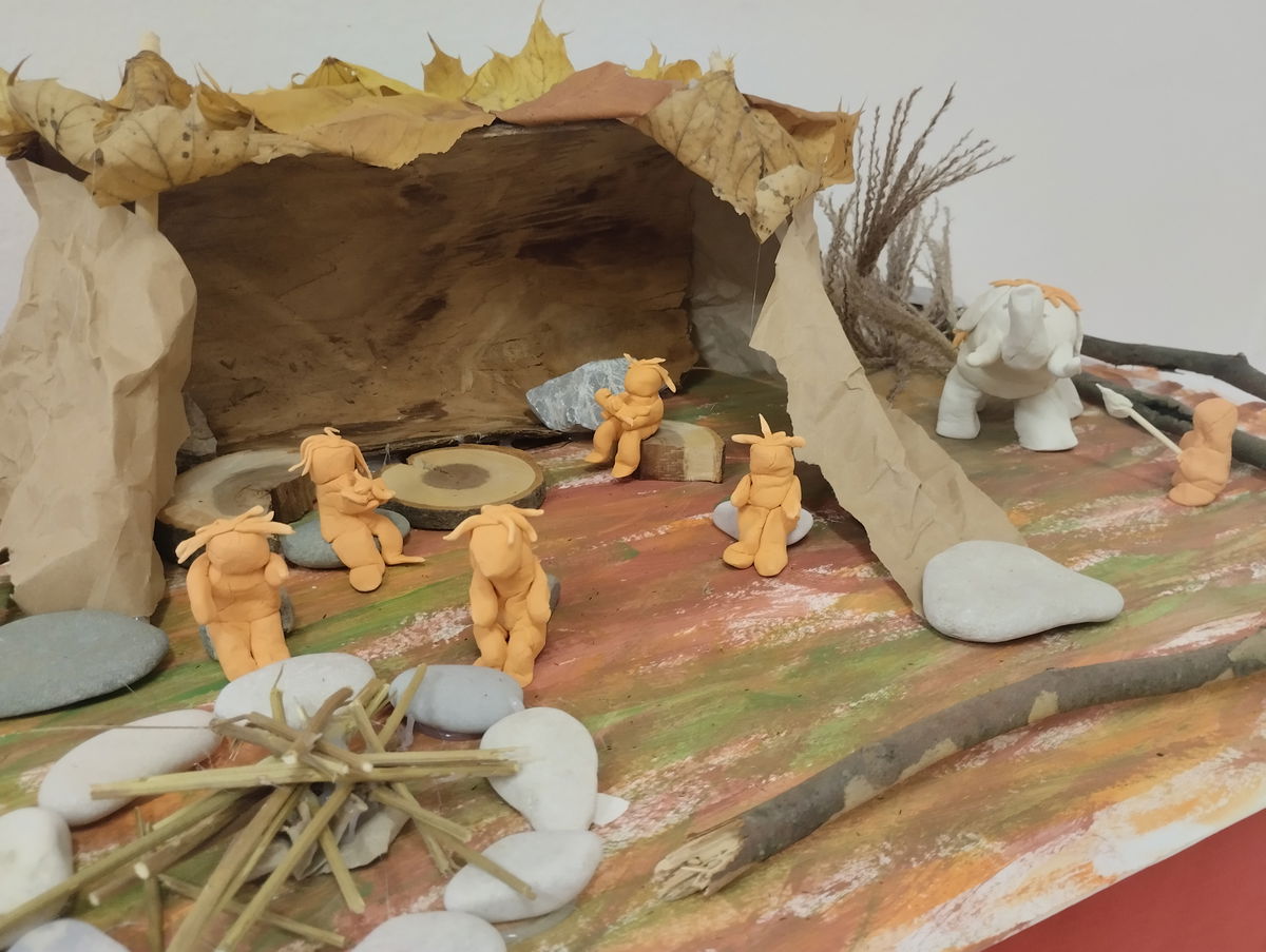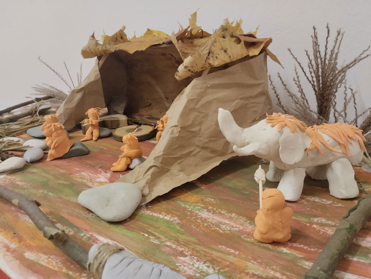 3. Výroba modelu jeskyně pravěkých lidí s mamutem