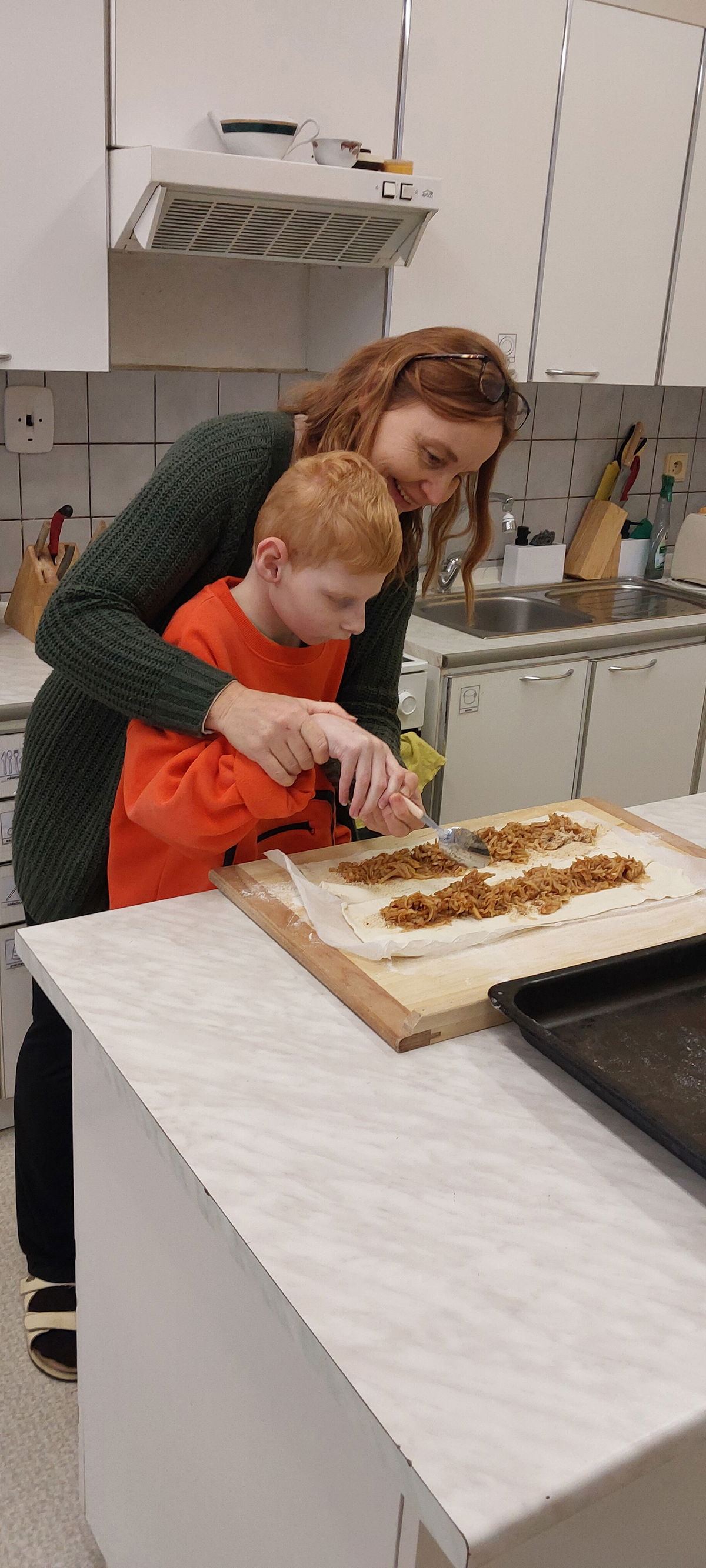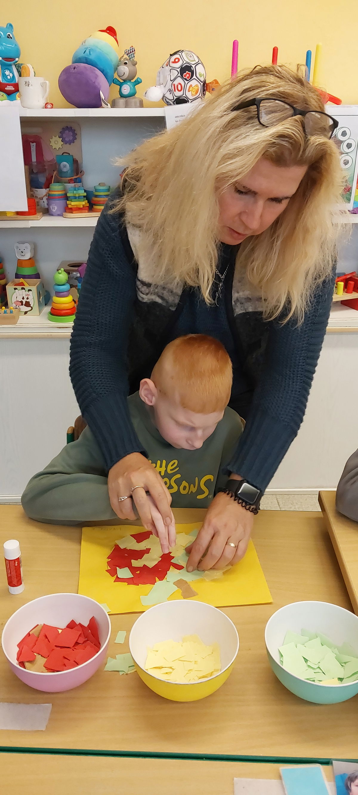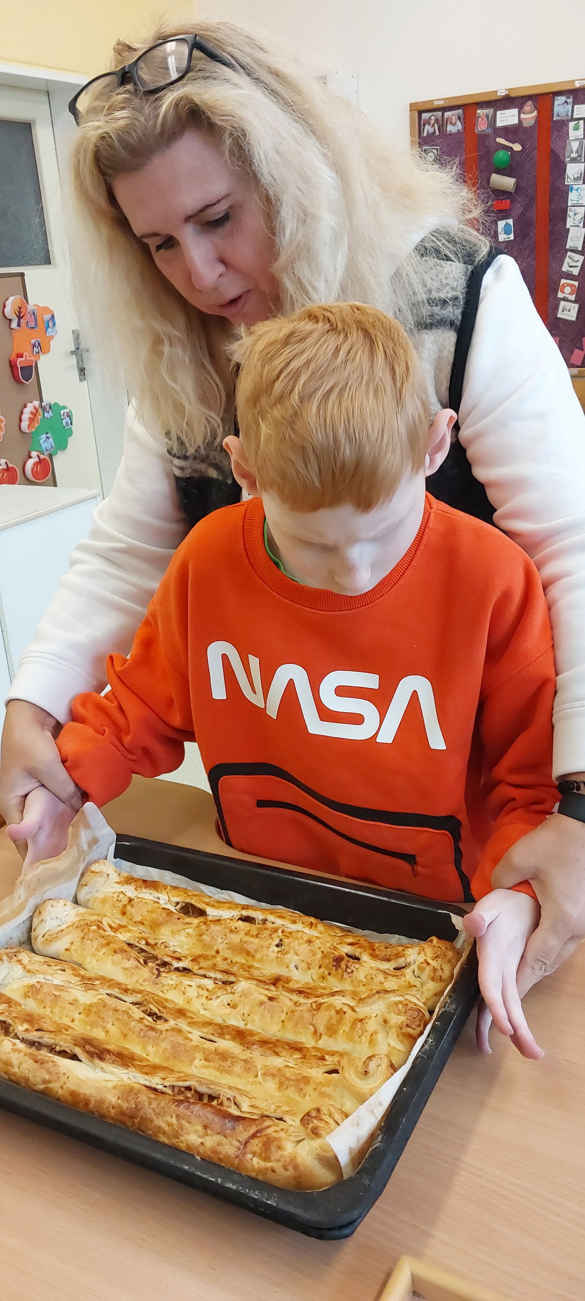 Na začátku října jsme si upekli jablkový štrůdl v naší školní kuchyňce. Také jsme ještě využili pěkného počasí venku. Ve třídě jsme pracovali s haptickými pomůckami na uvolnění zápěstí a v pracovních činnostech jsme vytvořili jablíčka pomocí papírových kousků a hrušku vykreslenou v šabloně.