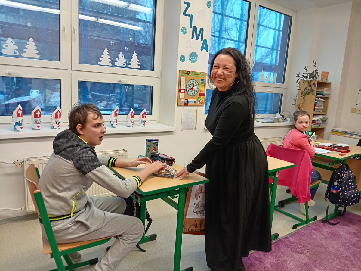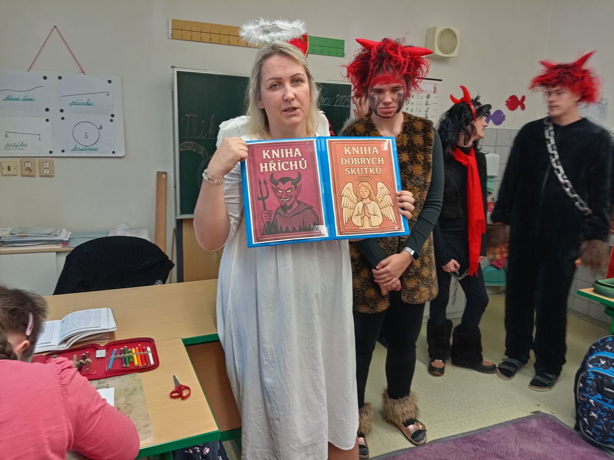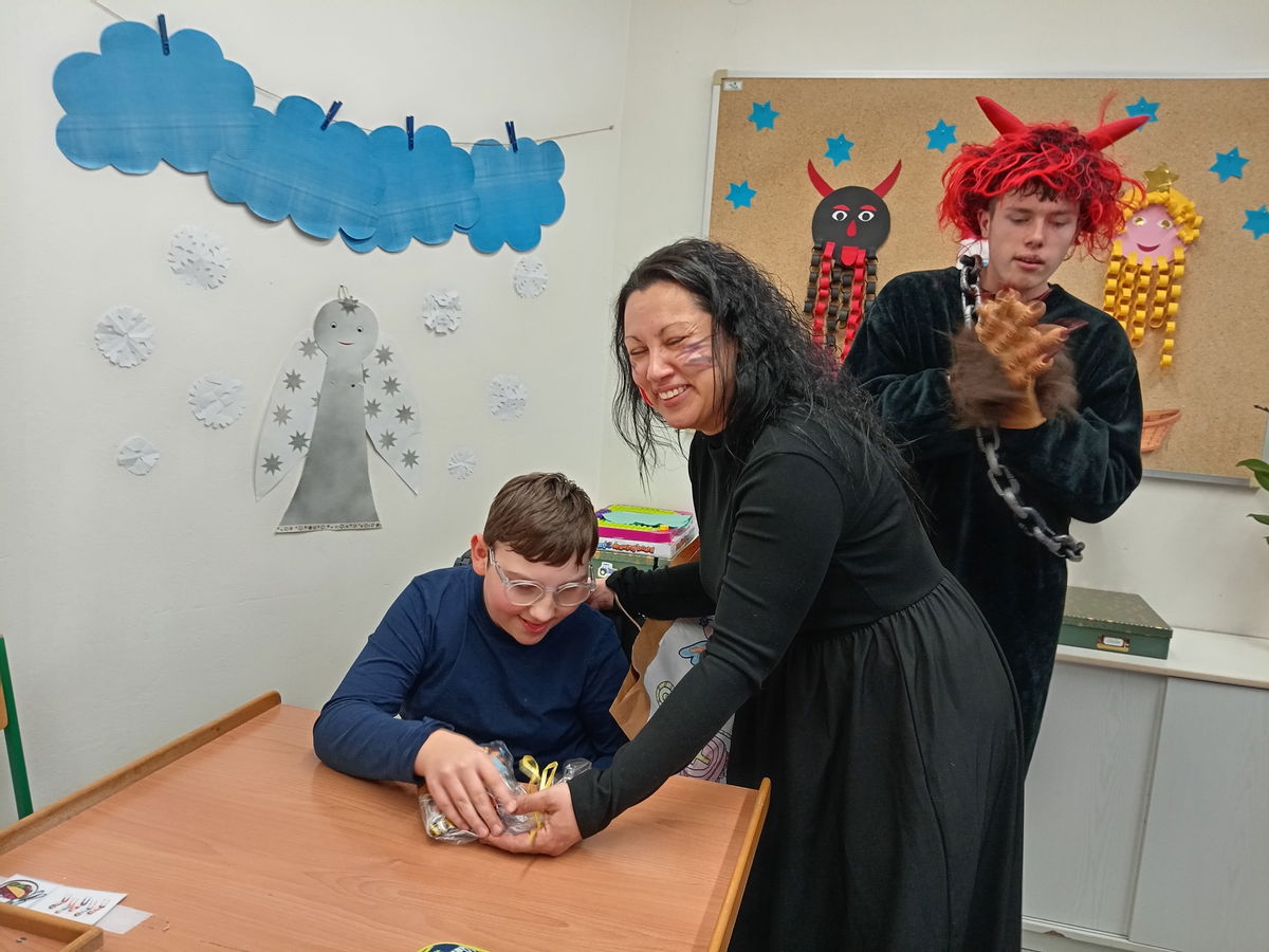 Připravovali jsme výzdobu třídy pro Mikuláše, anděla a čerta. Kreslili jsme obrázky, vyráběli řetězy, aby byla třída hezky vyzdobená. Všichni jsme se moc snažili a práce nás bavila. Naše snažení se vyplatilo, protože nás potom opravdu navštívil Mikuláš, anděl a čert. Přinesli nám sladkou nadílku. Bylo to nezapomenutelné setkání.