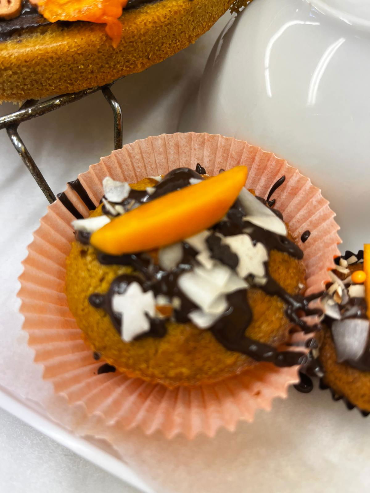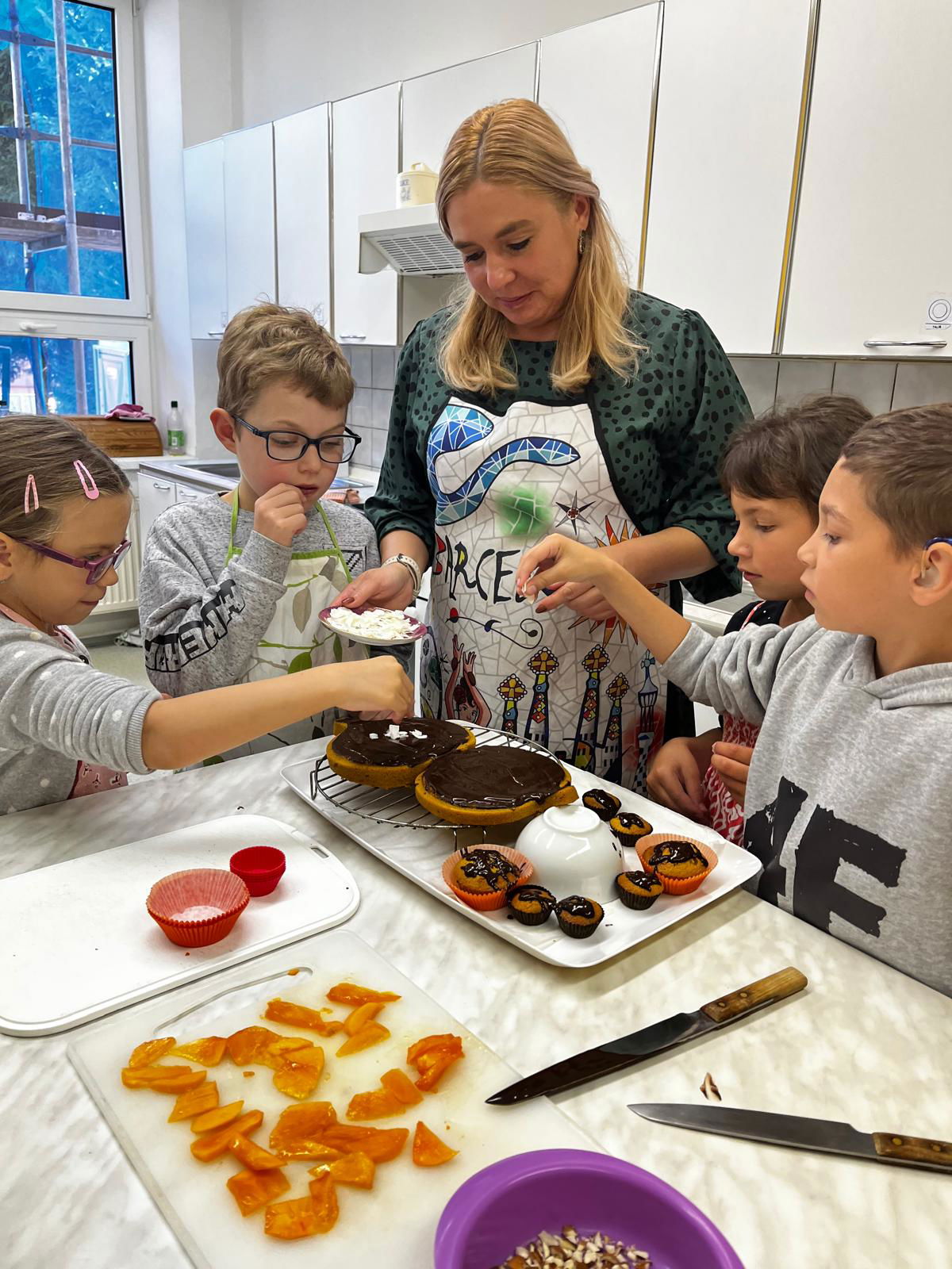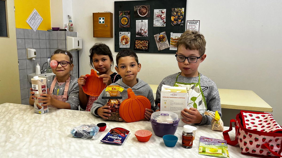 Žáci 1. a 2. ročníku s radostí pomáhali s přípravou dýňových muffinů a buchty.